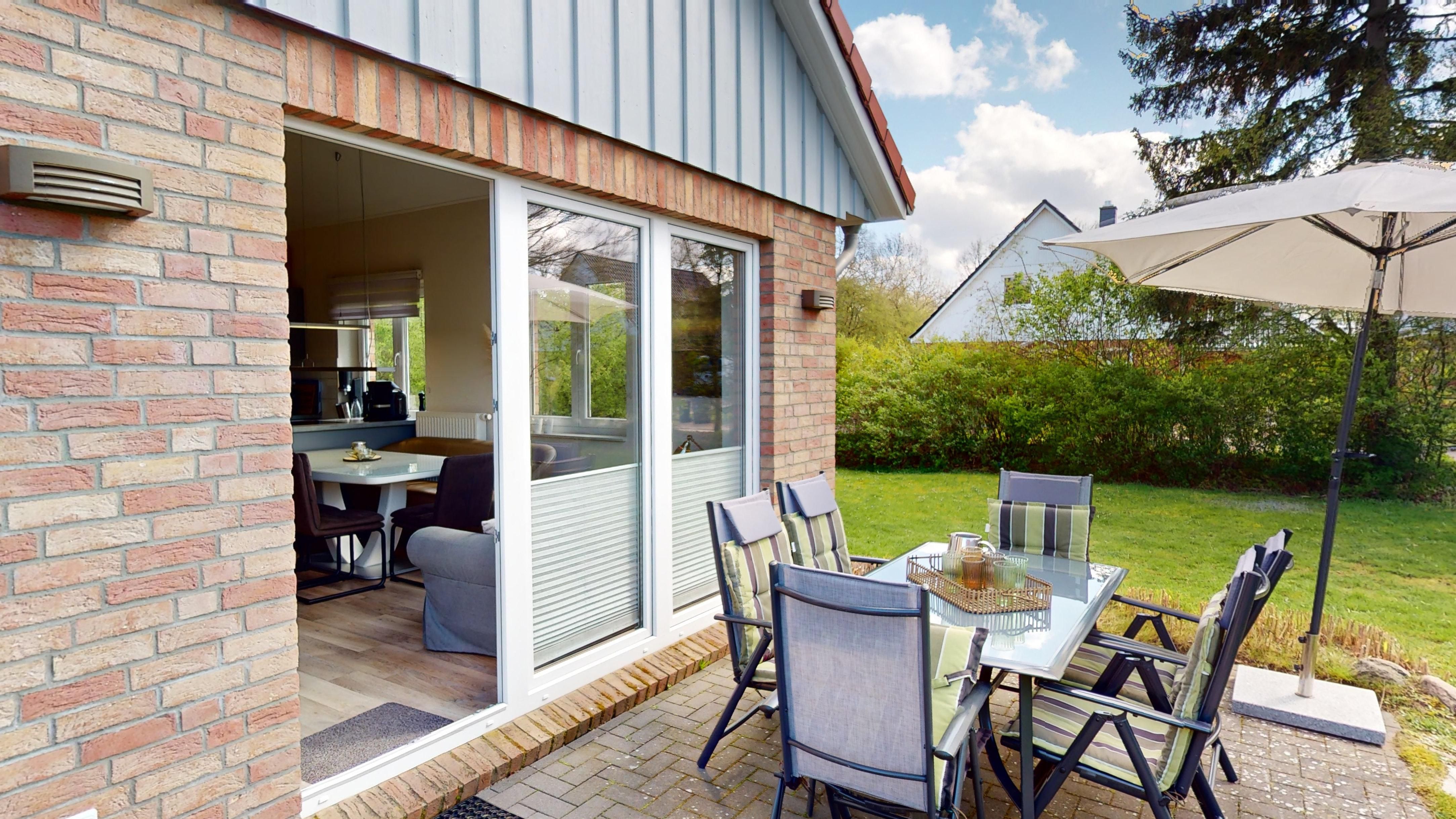 Das schöne Ferienhaus wird durch eine große, möblierte Terrasse mit Strandkorb und Grill ergänzt. Es gibt zudem eine zusätzliche Sitzmöglichkeit vor dem Haus. Ein Highlight des Hauses ist der tolle, private Saunabereich im Nebenhaus (direkt am Haus) inkl. Duschbereich.