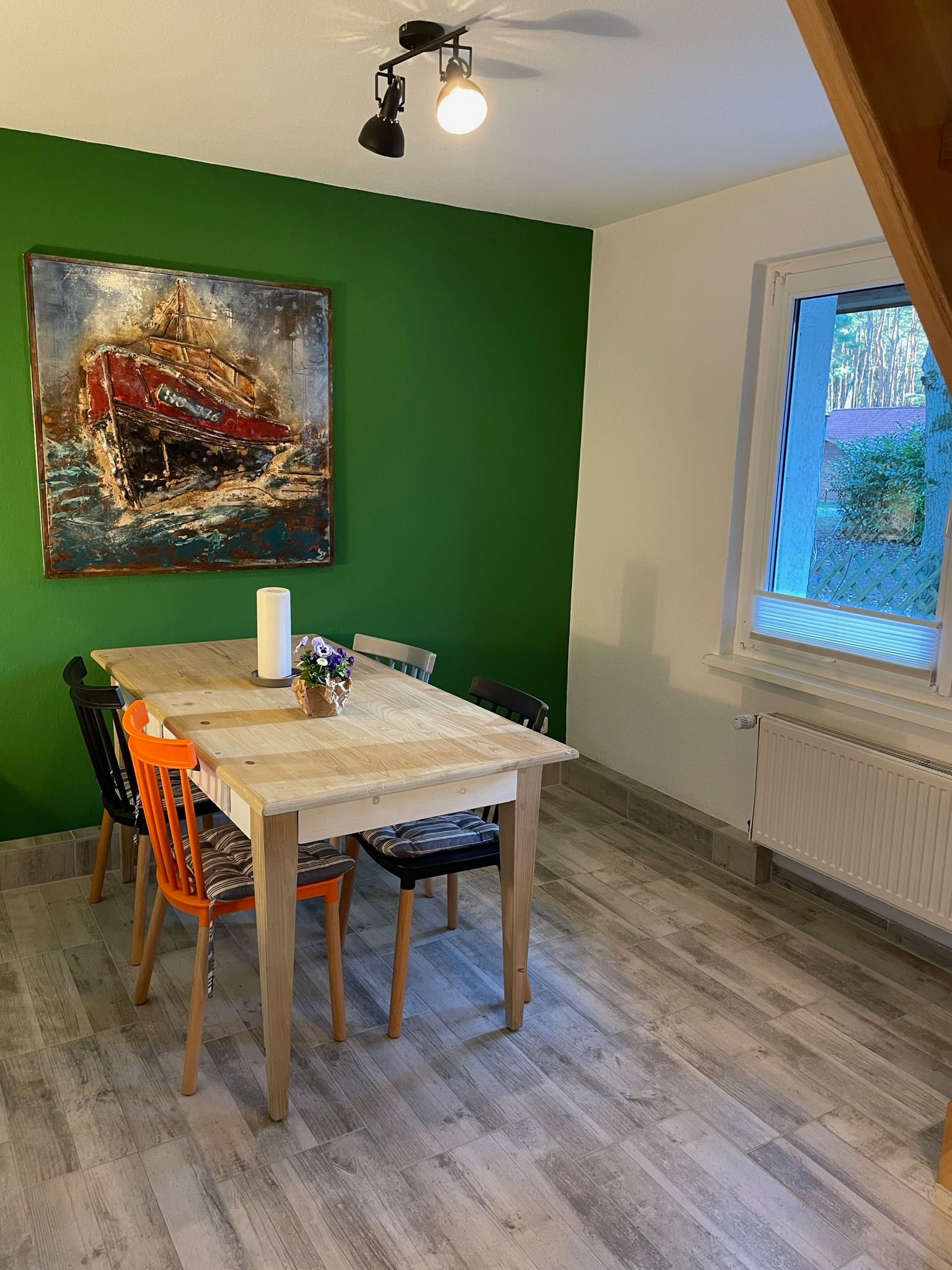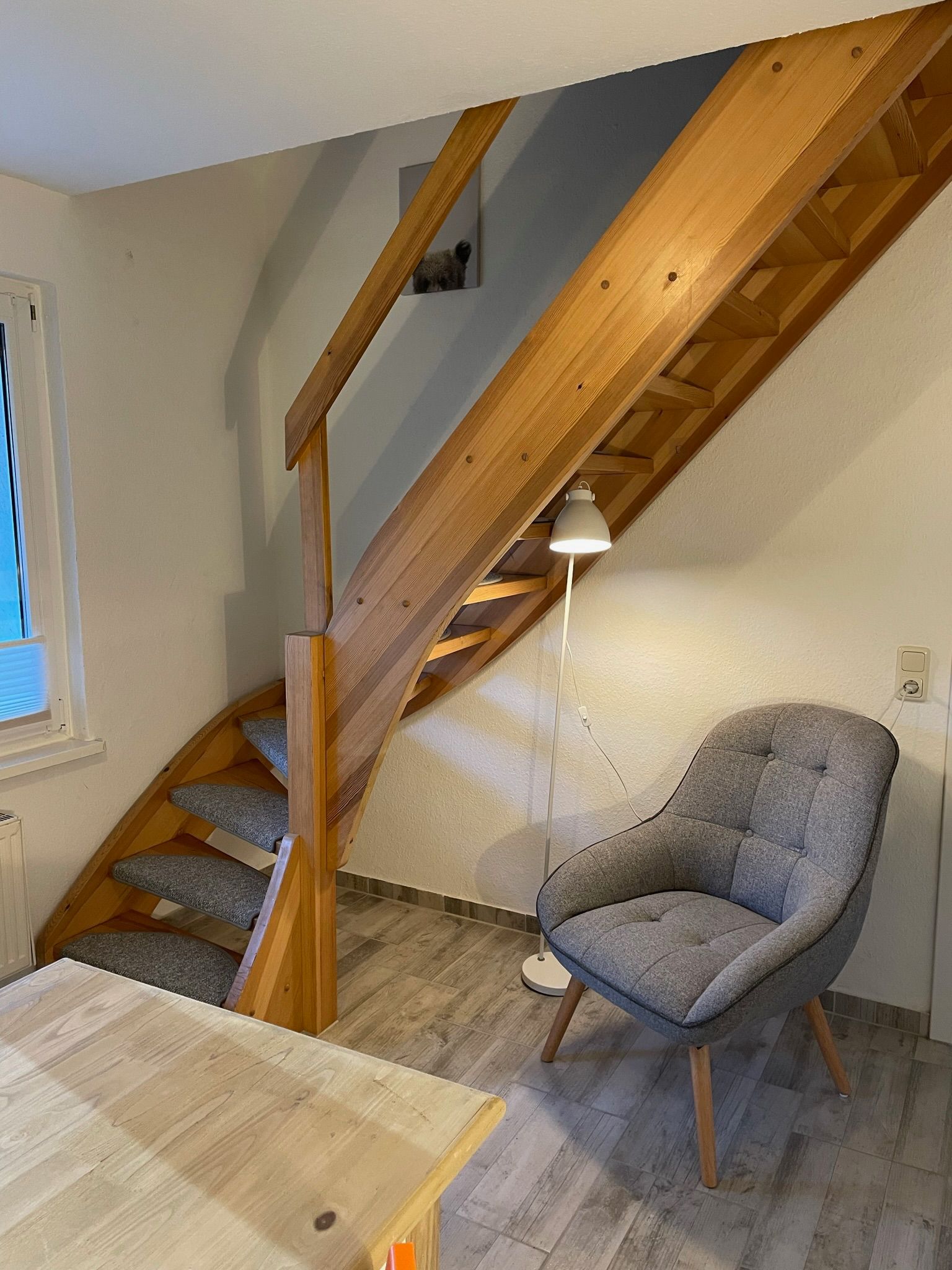 Im Erdgeschoss lädt der helle Wohnbereich mit gemütlicher Sitzecke und Essplatz zum Verweilen ein. Die Küche ist vollständig ausgestattet und eignet sich wunderbar für gemeinsame Kochabende. Durch die große Terrassentür gelangen Sie direkt auf die Terrasse, wo Frühstück in der Morgensonne oder ein entspanntes Glas Wein am Abend zum echten Urlaubsritual werden.