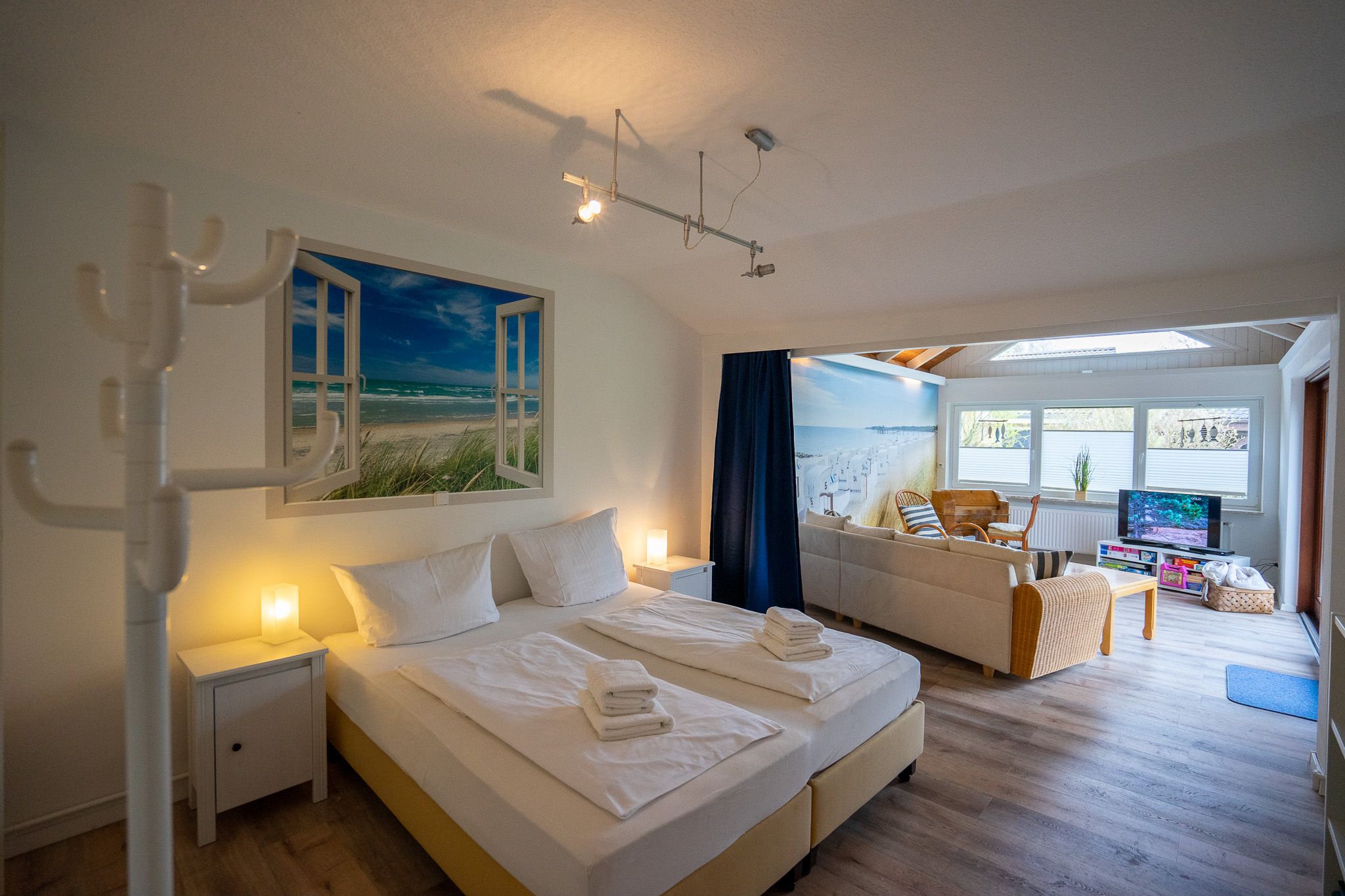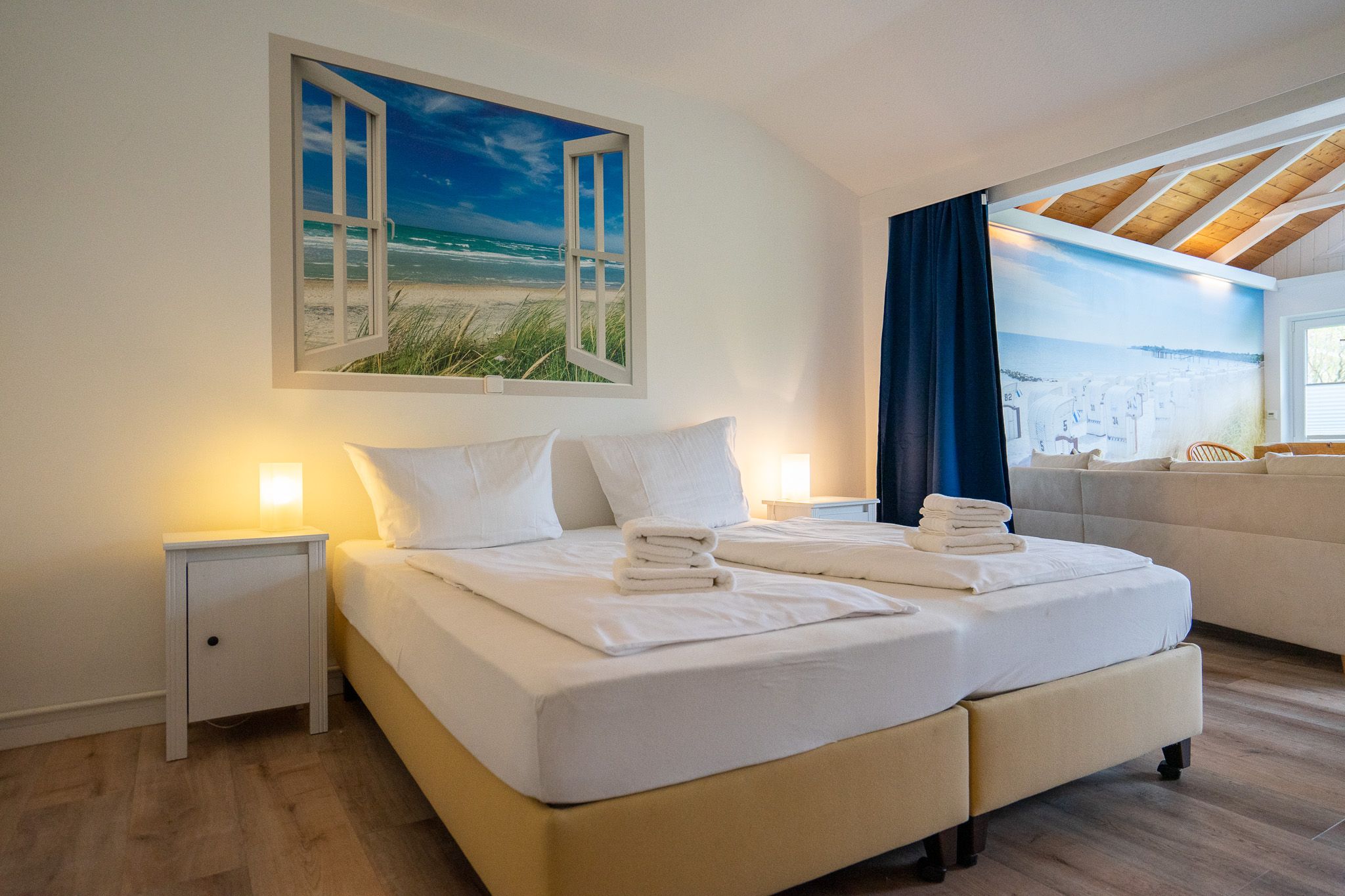 Mit 2 Schlafzimmern, 1 großer Wohn-Schlafbereich, 1 Küche und 2 x Dusche mit WC.