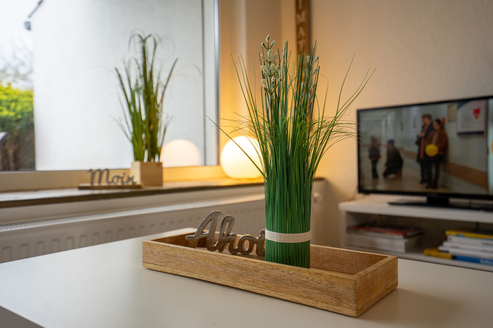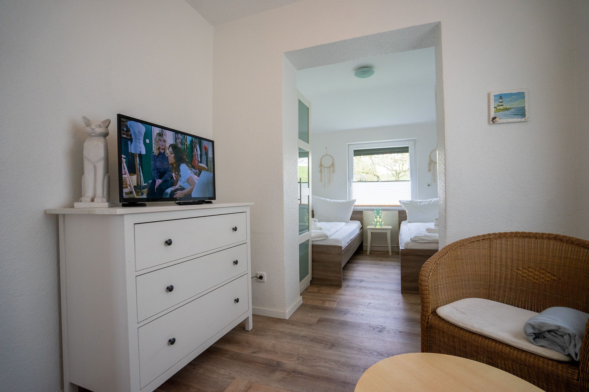 Hier haben Sie eine bestens ausgestattet Küche, W-Lan Anschluss und in jedem Zimmer einen Fernseher.