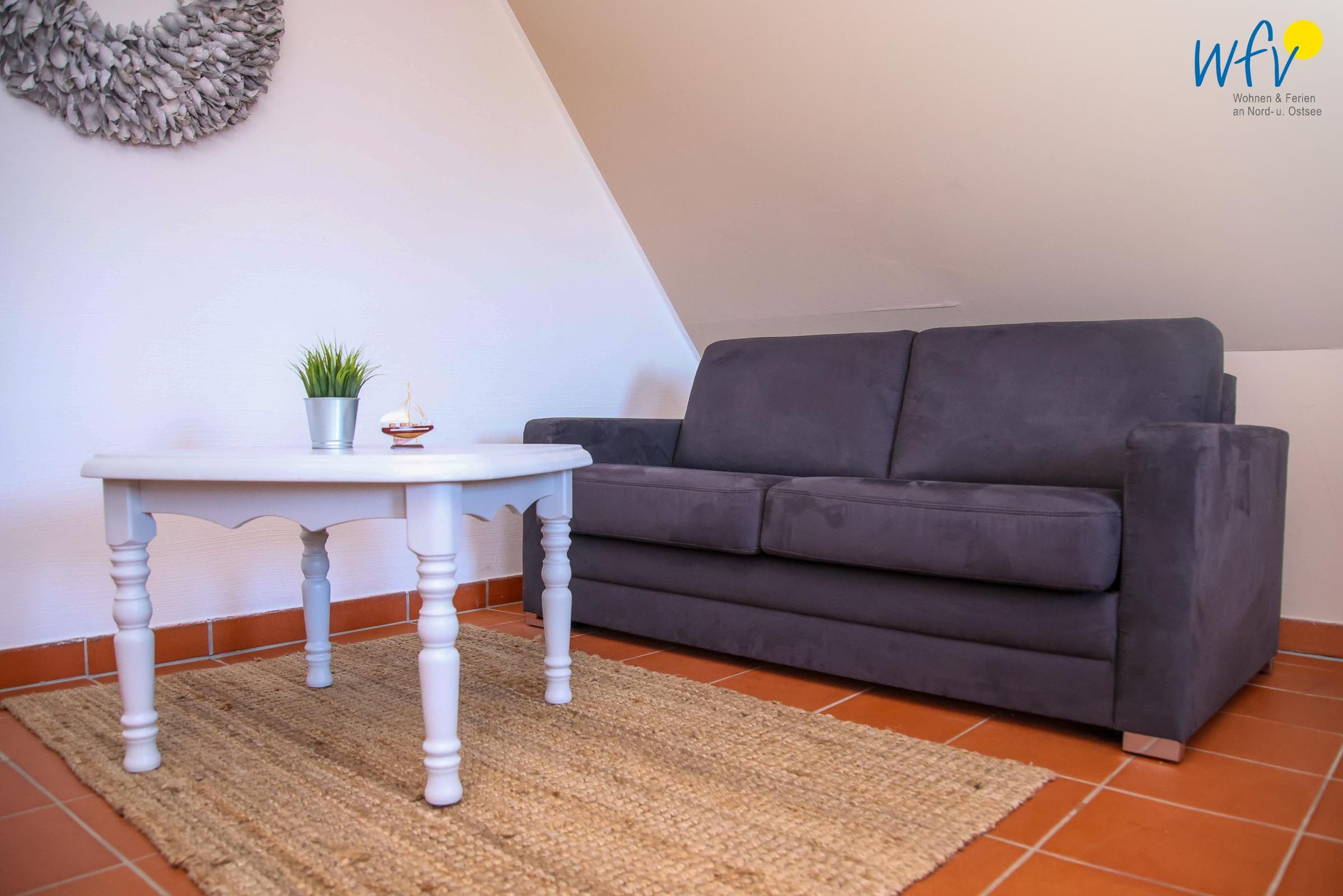 Die Ferienanlage umfasst 23 Ferienwohnungen. In unserem 50 m² großen Appartement "Sonnenrose" im 1. Obergeschoss erwartet Sie ein Wohnraum mit Schlafsofa (160 cm x 198 cm), TV, offener Küche und Essplatz sowie ein separates Schlafzimmer mit Doppelbett (180 cm x 200 cm) und ein Duschbad.
