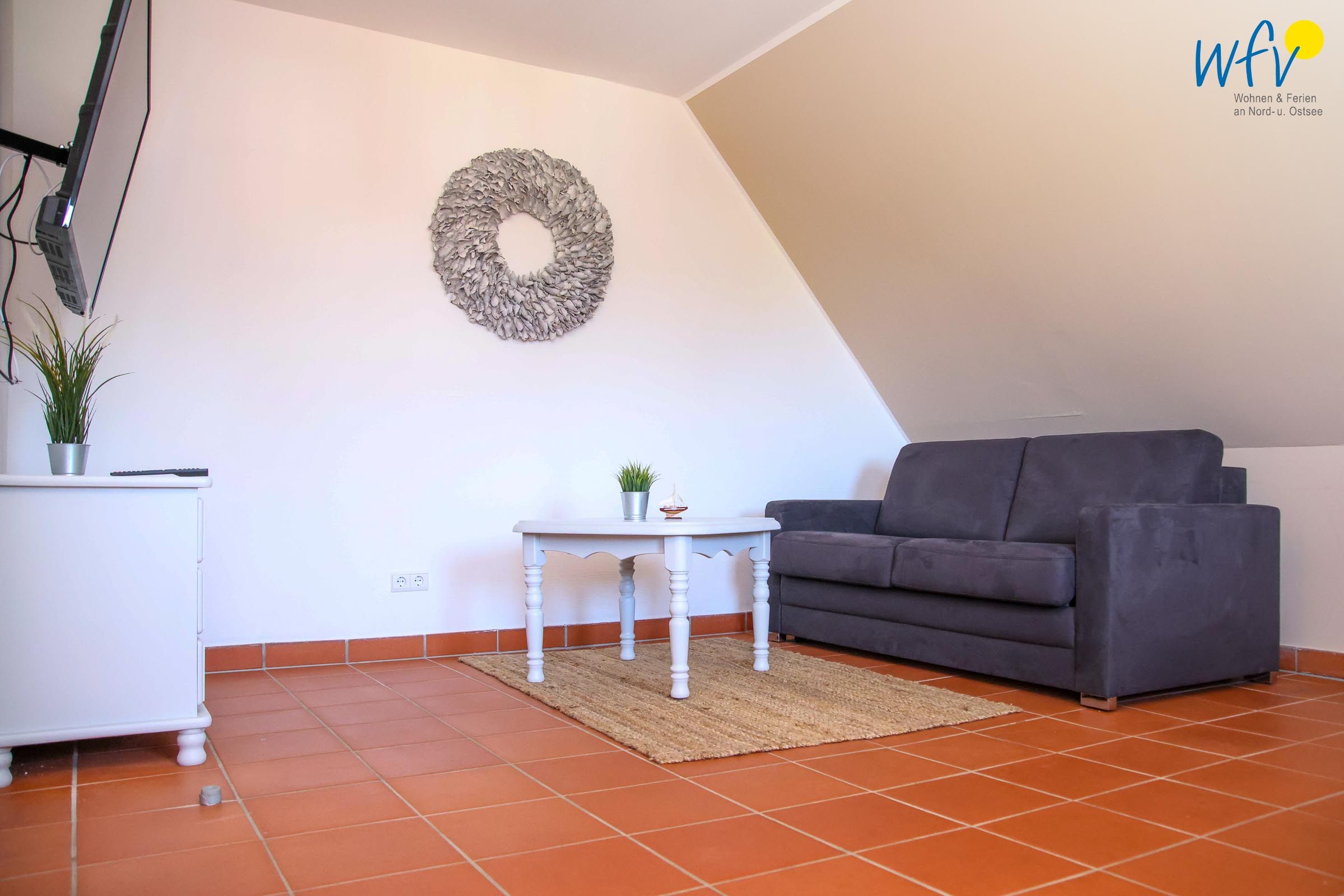 Ein Außenbereich mit Grillplatz und kleinem Kinderspielplatz steht allen Gästen zur Verfügung. Den Strand erreichen Sie nach ca. 20 Minuten Fußweg.