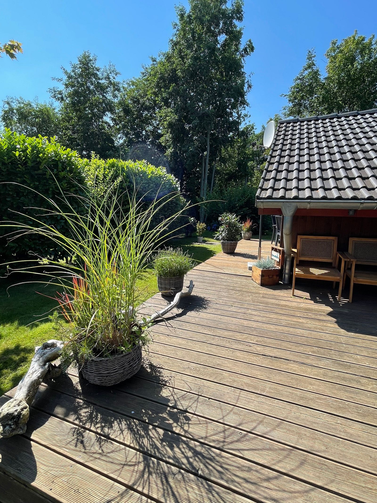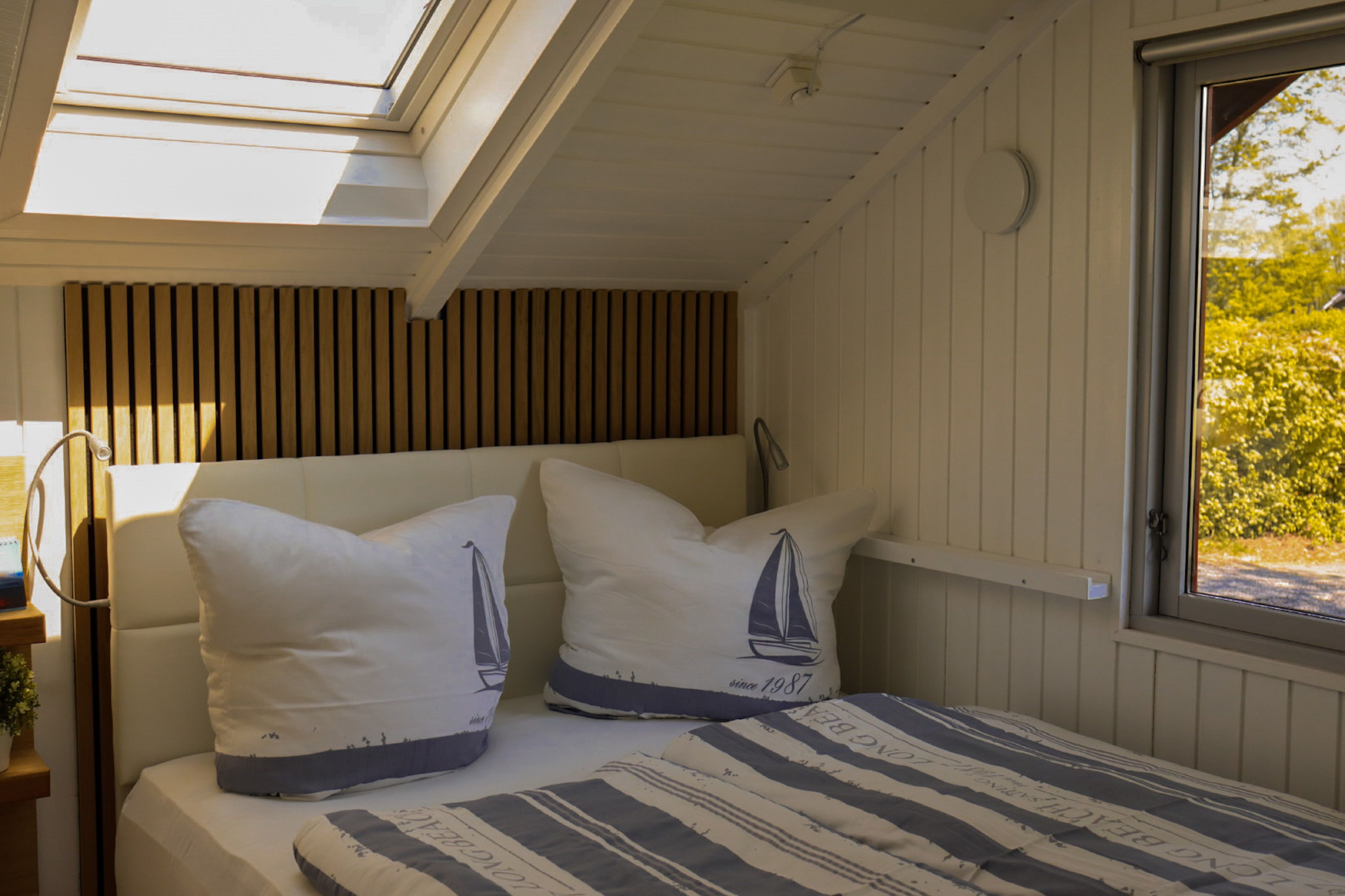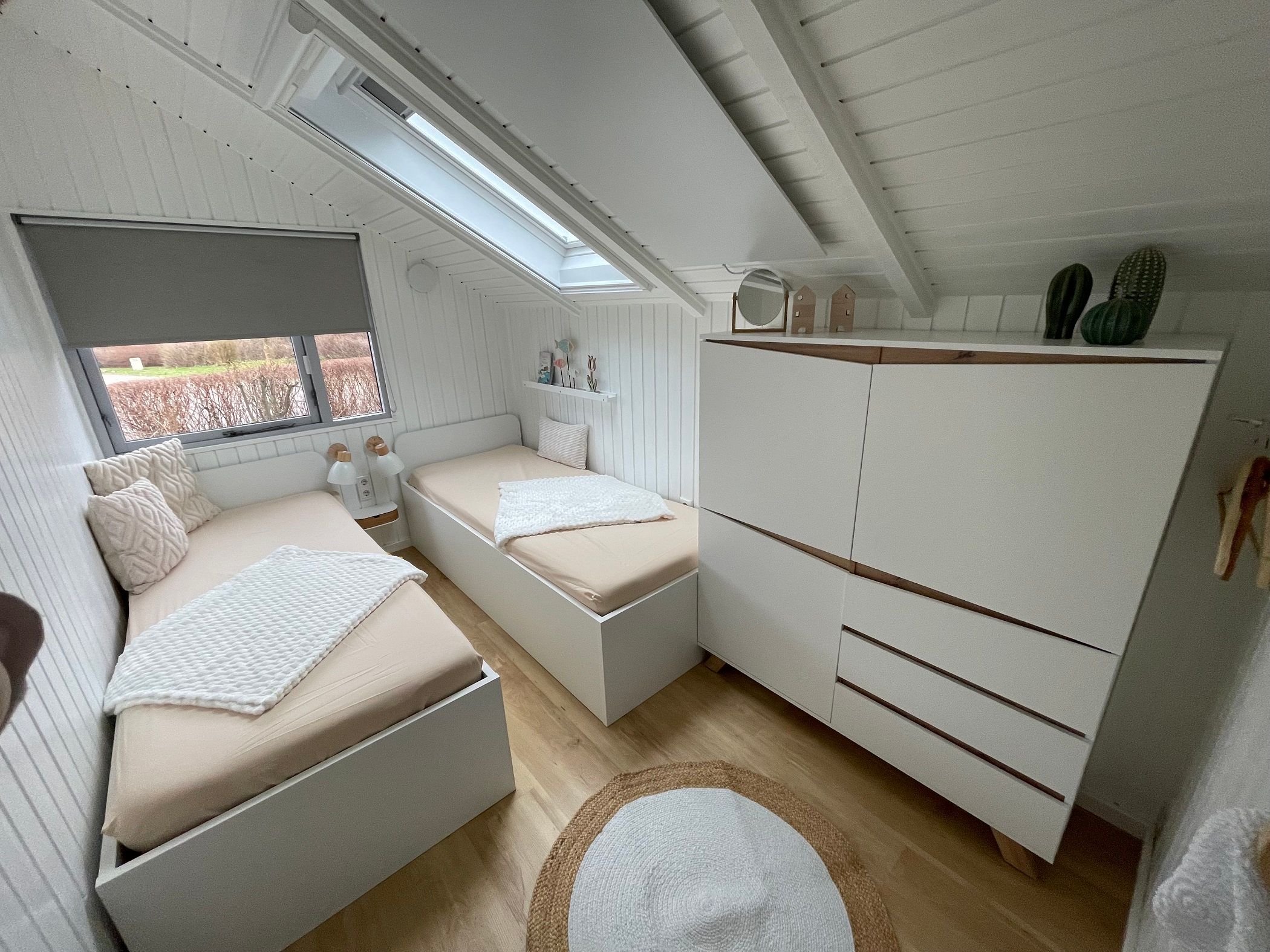 Das dänische Ferienhaus "Kiek in" bietet auf 63m² Traumurlaub pur! Im offenen Wohn- und Essbereich mit Küchenzeile kann auf dem Sofa herrlich entspannt und in der Küche nach Lust & Laune gekocht werden. Durch die bodentiefen Fenster und großen Dachfenster bietet das Ferienhaus jede Menge Licht und durch die gemütliche Einrichtung kommt direkt Urlaubsfeeling auf! Der Kamin sorgt an kälteren Tagen für eine wohlige und gemütliche Atmosphäre. An warmen Sommertagen schafft die Klimaanlage eine angenehme Temperatur. Das Ferienhaus bietet zwei Schlafzimmer: eines ist mit einem kleinen gemütlichen Doppelbett (140×200cm) ausgestattet, das andere Schlafzimmer bietet zwei komfortable Einzelbetten (je 80×200cm). Beide Zimmer sind mit Flachbild-TVs eingerichtet und für erholsame Urlaubsnächte gibt es Verdunkelungsmöglichkeiten. Ein weiteres kleines Zimmer bietet ein Hochbett (für Kinder bis 12 Jahre) mit einem Schreibtisch - ideal, falls im Urlaub die Arbeit doch nicht warten kann. Das Sofa im Wohnbereich lässt sich zu einem Schlafsofa ausziehen und bietet eine weitere Schlafmöglichkeit (140×200cm). Im Badezimmer finden Sie eine Dusche sowie Föhn und Handtuchtrockner vor. Der Hauswirtschaftsraum verfügt über eine Waschmaschine und einen Wäscheständer, sodass auch längeren Aufenthalten nichts im Wege steht! Die große Holzterrasse lädt zu gemütlichen Sonnenstunden mit der ganzen Familie. Der Sonnenschirm sorgt für ein schattiges Plätzchen und an lauen Sommerabenden kann am Holzkohlegrill gegrillt werden. Auf der Auffahrt zum Ferienhaus sind hintereinander zwei PKW-Stellplätze vorhanden. Der Strand befindet sich in ca. 150m Entfernung, sodass Sie den Strand zu jeder Zeit in nur wenigen Fußminuten erreichen können! Abends den Sonnenuntergang am Meer beobachten, Spaziergänge an der frischen Meerluft und an heißen Sommertagen im erfrischenden Meer baden gehen - was will man Mee(h)r?