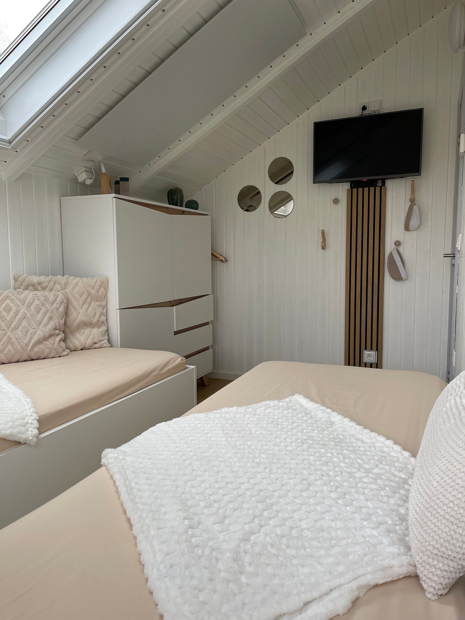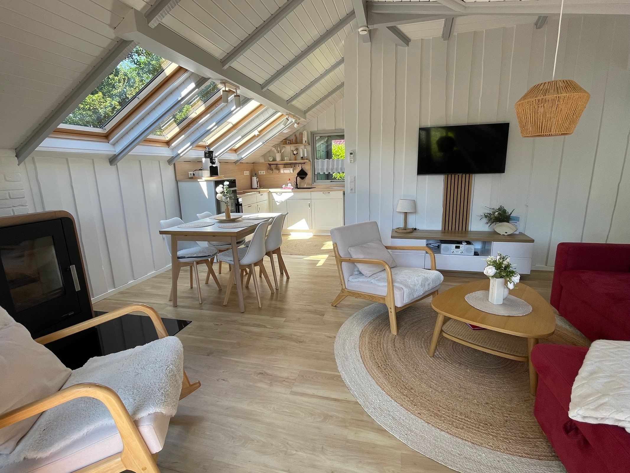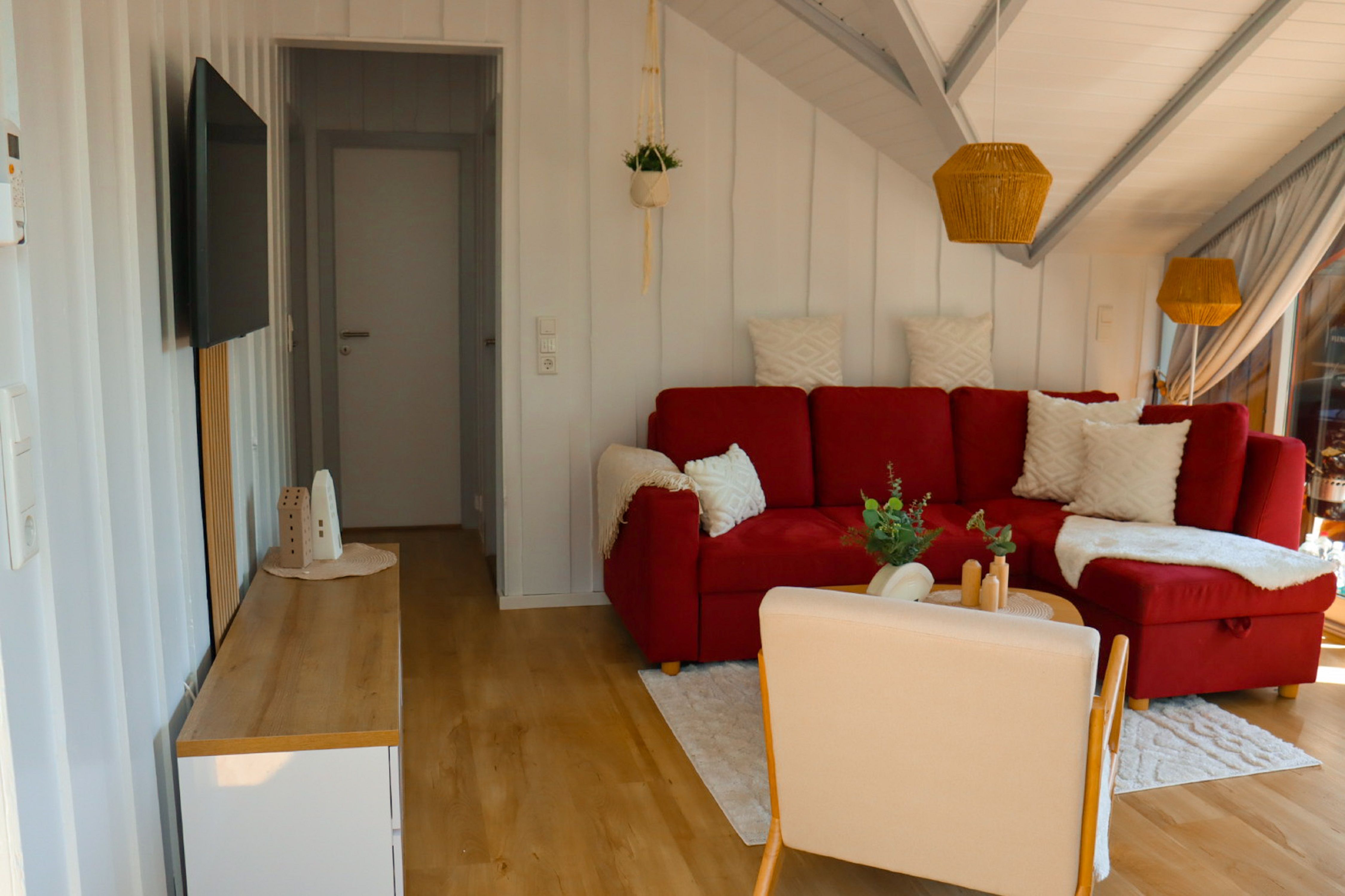 Das dänische Ferienhaus "Kiek in" bietet auf 63m² Traumurlaub pur! Im offenen Wohn- und Essbereich mit Küchenzeile kann auf dem Sofa herrlich entspannt und in der Küche nach Lust & Laune gekocht werden. Durch die bodentiefen Fenster und großen Dachfenster bietet das Ferienhaus jede Menge Licht und durch die gemütliche Einrichtung kommt direkt Urlaubsfeeling auf! Der Kamin sorgt an kälteren Tagen für eine wohlige und gemütliche Atmosphäre. An warmen Sommertagen schafft die Klimaanlage eine angenehme Temperatur. Das Ferienhaus bietet zwei Schlafzimmer: eines ist mit einem kleinen gemütlichen Doppelbett (140×200cm) ausgestattet, das andere Schlafzimmer bietet zwei komfortable Einzelbetten (je 80×200cm). Beide Zimmer sind mit Flachbild-TVs eingerichtet und für erholsame Urlaubsnächte gibt es Verdunkelungsmöglichkeiten. Ein weiteres kleines Zimmer bietet ein Hochbett (für Kinder bis 12 Jahre) mit einem Schreibtisch - ideal, falls im Urlaub die Arbeit doch nicht warten kann. Das Sofa im Wohnbereich lässt sich zu einem Schlafsofa ausziehen und bietet eine weitere Schlafmöglichkeit (140×200cm). Im Badezimmer finden Sie eine Dusche sowie Föhn und Handtuchtrockner vor. Der Hauswirtschaftsraum verfügt über eine Waschmaschine und einen Wäscheständer, sodass auch längeren Aufenthalten nichts im Wege steht! Die große Holzterrasse lädt zu gemütlichen Sonnenstunden mit der ganzen Familie. Der Sonnenschirm sorgt für ein schattiges Plätzchen und an lauen Sommerabenden kann am Holzkohlegrill gegrillt werden. Auf der Auffahrt zum Ferienhaus sind hintereinander zwei PKW-Stellplätze vorhanden. Der Strand befindet sich in ca. 150m Entfernung, sodass Sie den Strand zu jeder Zeit in nur wenigen Fußminuten erreichen können! Abends den Sonnenuntergang am Meer beobachten, Spaziergänge an der frischen Meerluft und an heißen Sommertagen im erfrischenden Meer baden gehen - was will man Mee(h)r?