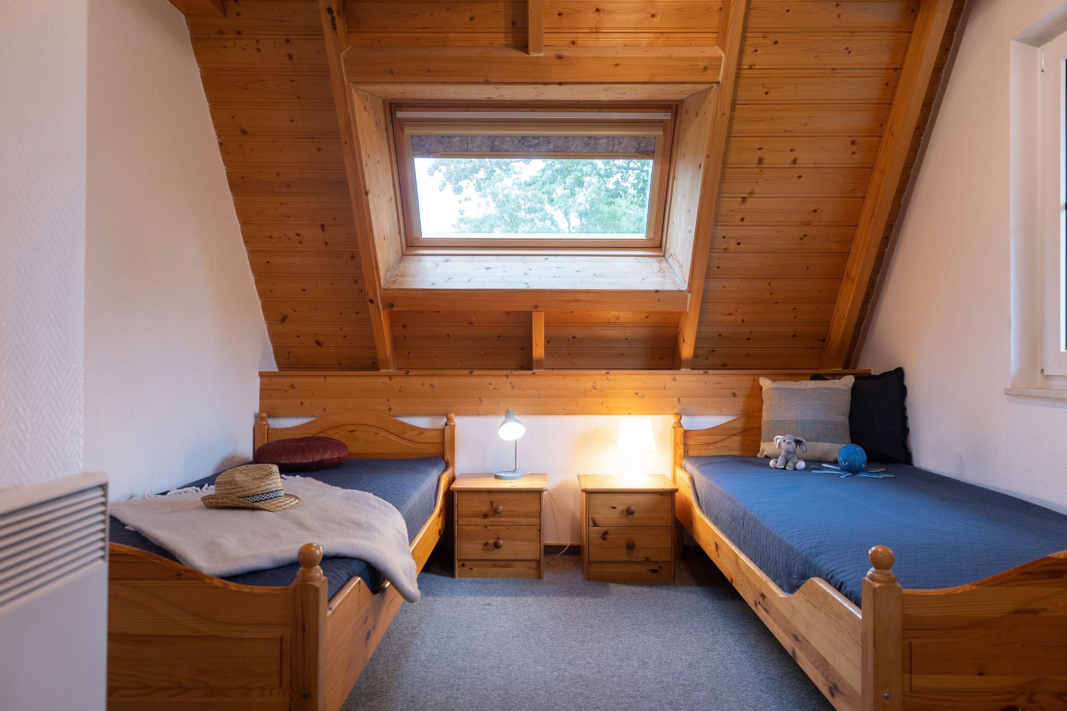 Kinderschlafzimmer mit zwei getrennt stehenden Betten sowie ein zweites WC. Die