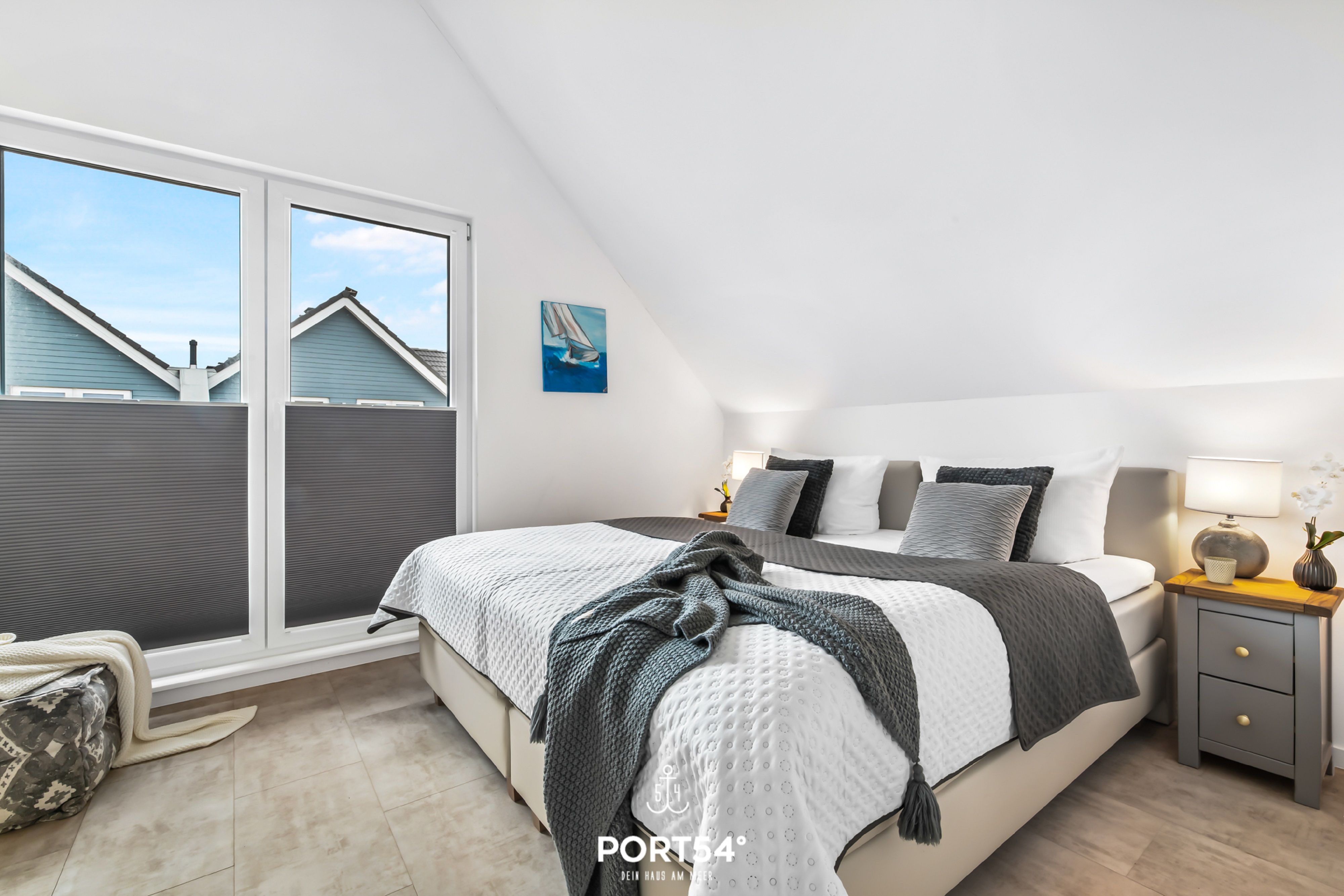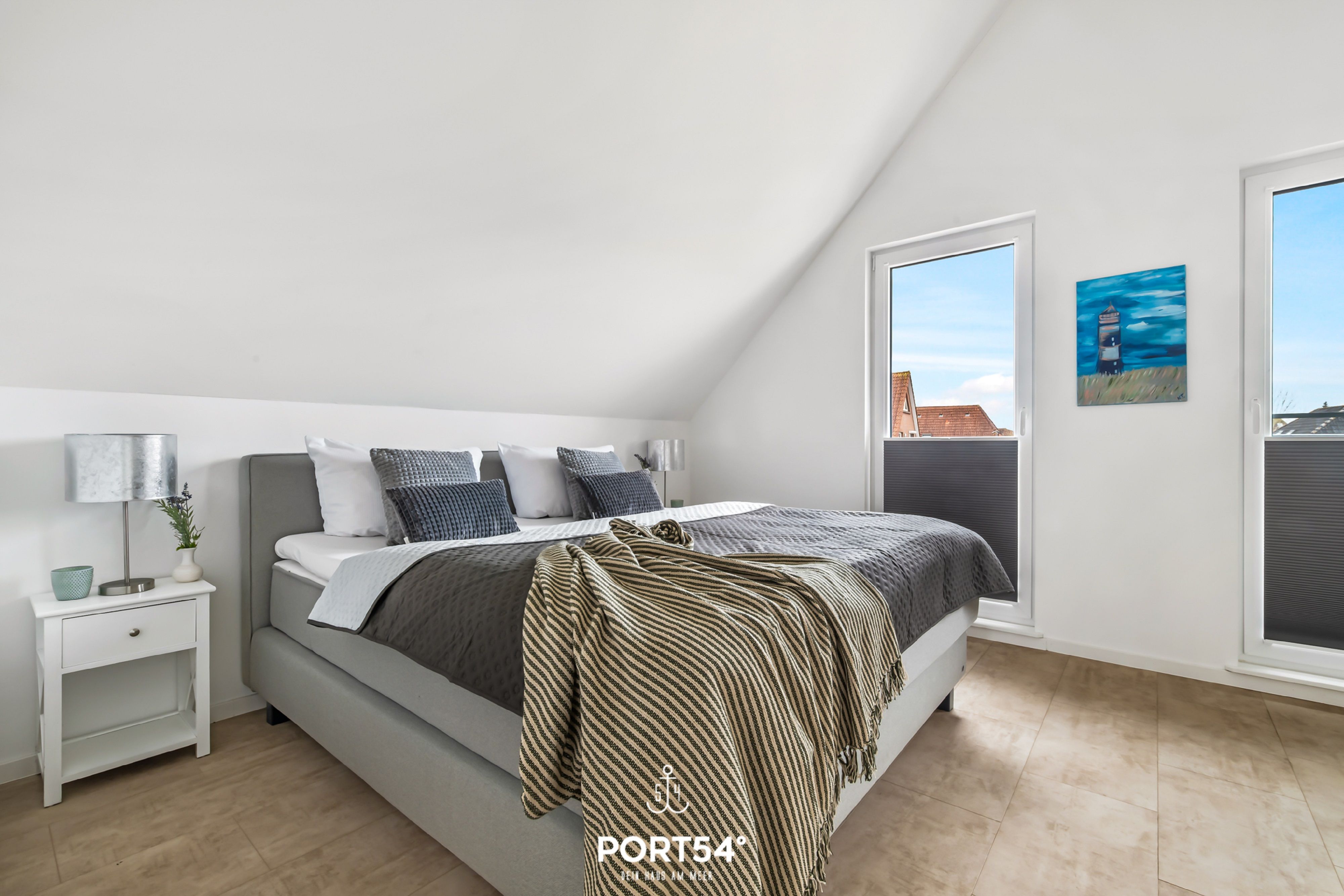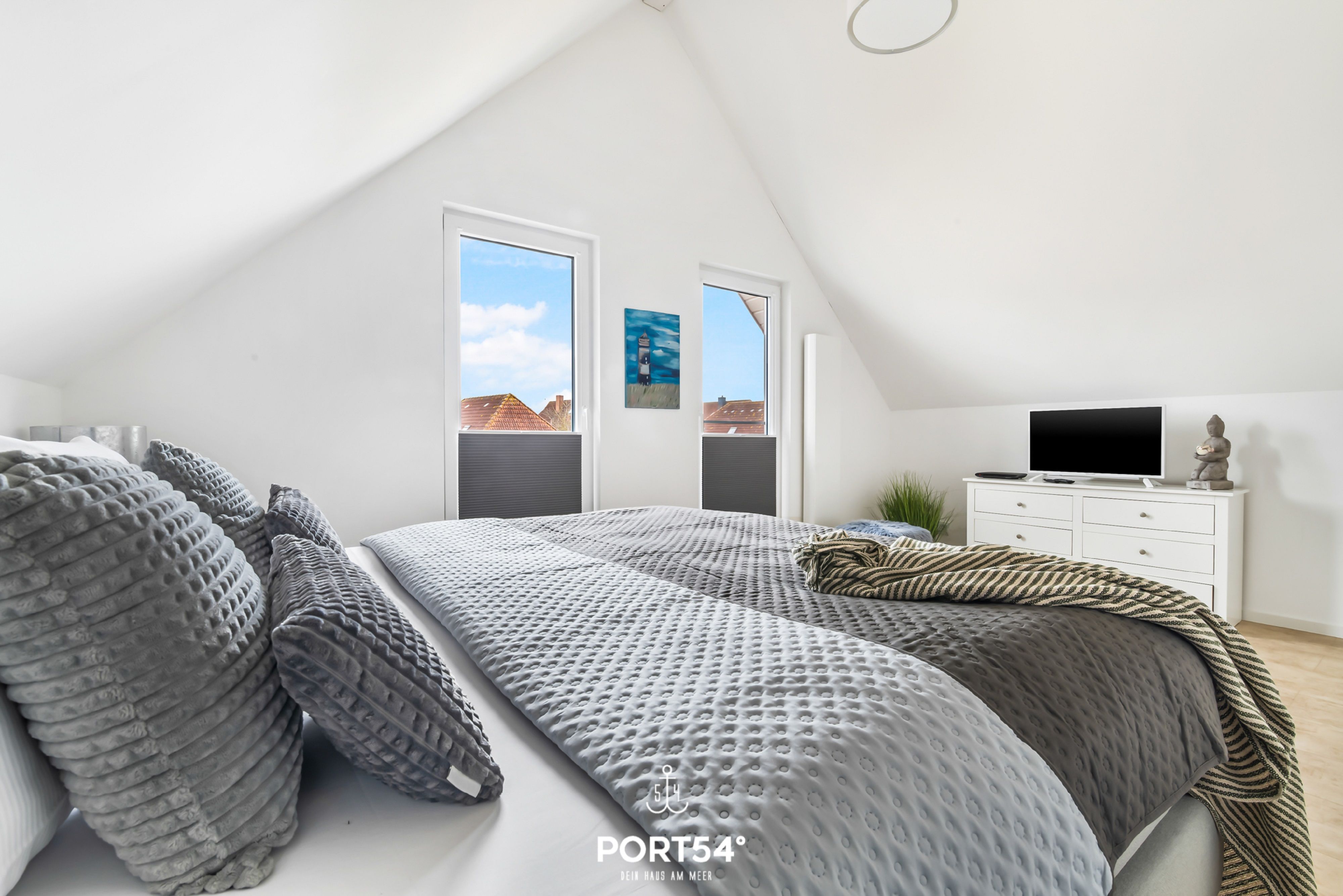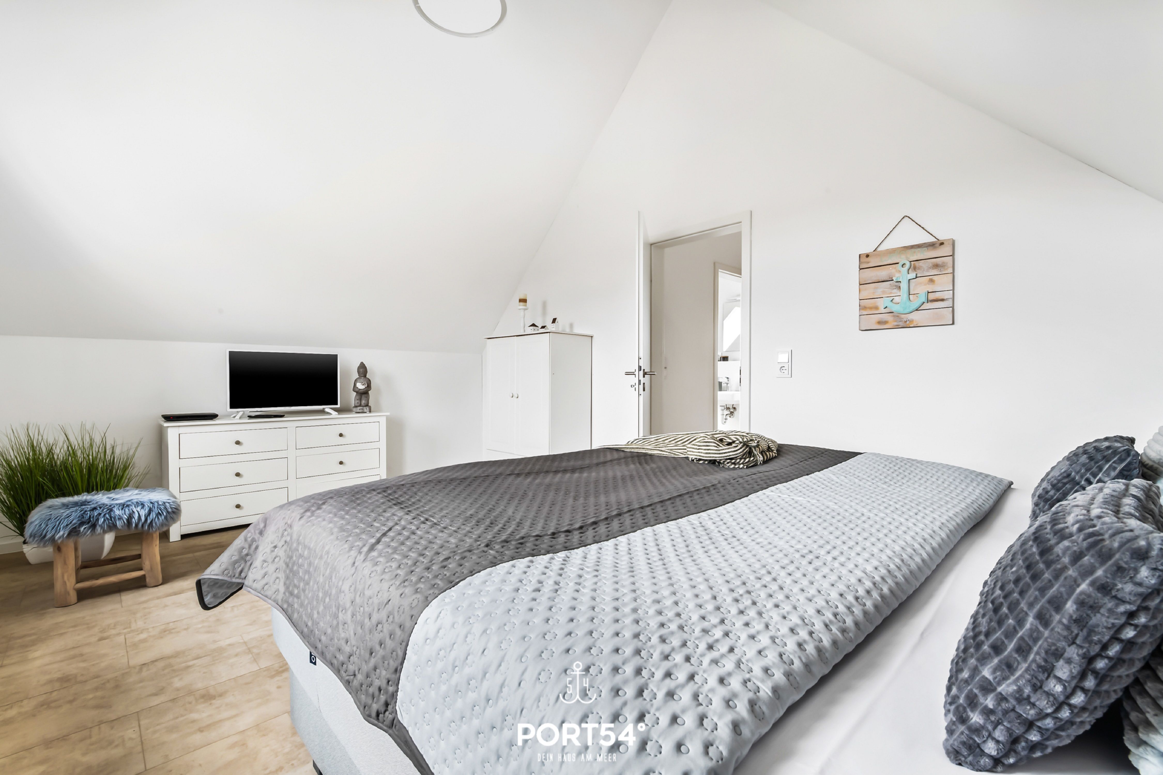 Badezimmer mit Badewanne. Für die entspannte Nachtruhe sorgen zwei Schlafzimmer, wovon eins mit einem Boxspring-Doppelbett (180x200cm) und das andere mit zwei Boxspring-Einzelbetten (je 100x200cm) ausgestattet ist. Die schöne Terrasse lädt zum gemütlichen Verweilen und Grillen ein. Genießen Sie hier die frische Nordseeluft. Sollten Sie Ihren Nordseeurlaub mit der ganzen Familie und Freunden verbringen wollen,
