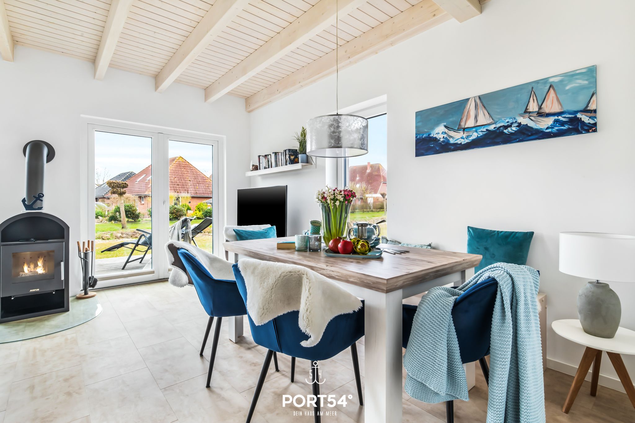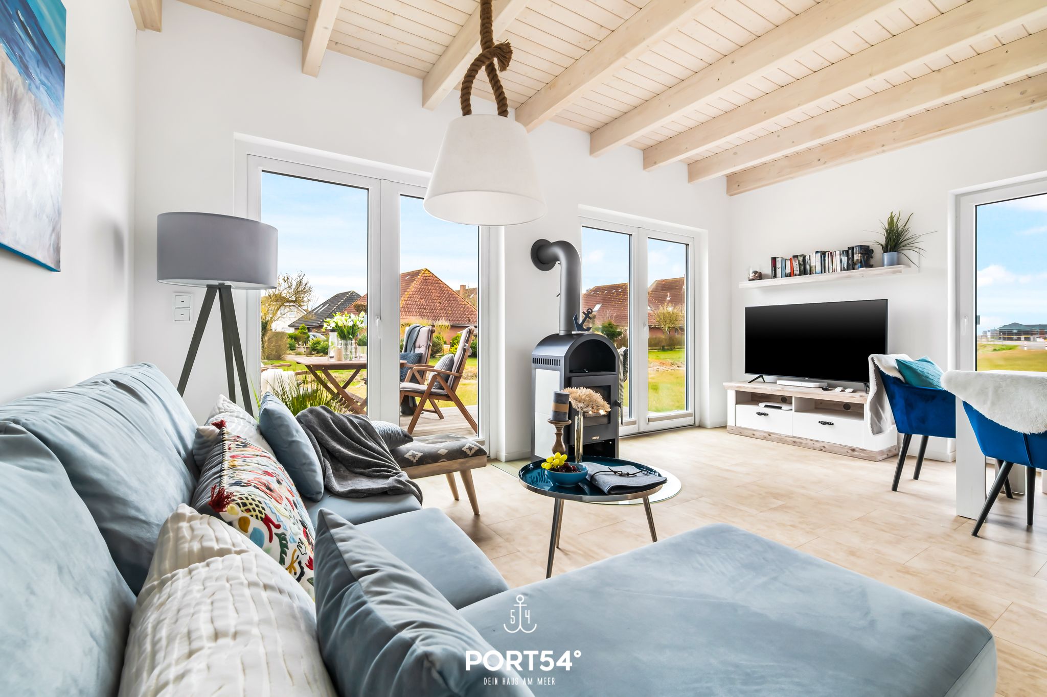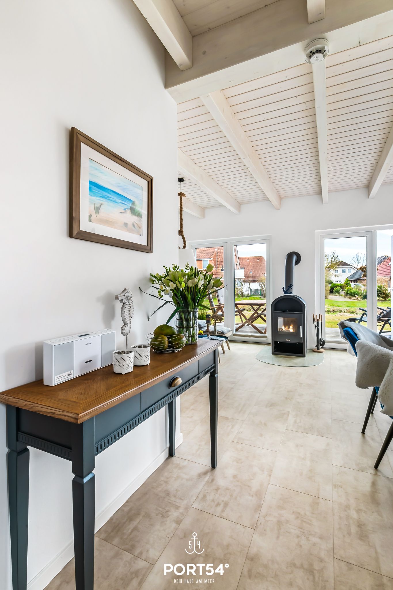 Das Ferienhaus "Perlenhus" befindet sich am Rand des Resorts und lädt zu einem erholsamen Nordseeurlaub ein. Das Ferienhaus verfügt über zwei Etagen mit ungefähr 88m² Wohnfläche. Die Wohnfläche teilt sich in ein geräumiges Wohnzimmer mit Essbereich, separater Küche, zwei Schlafzimmer und zwei Badezimmer auf. Der offene Wohn- und Essbereich mit großer Fensterfront und Zugang zur Terrasse hat einen schönen Essbereich, sowie ein gemütliches Sofa, von dem Sie entspannt ein Buch lesend den Kindern beim Spielen zuschauen oder einen Film auf dem großen Flachbild-Fernseher schauen können. Der Kamin im Wohnbereich bietet mollige Wärme an kalten Tagen, oder nach einem ausgiebigen Spaziergang an der Nordsee. Nach langen Wattwanderungen oder bei stürmischen Nordsee Tagen können Sie sich in der Infrarot-Sauna wieder aufwärmen und die Seele baumeln lassen. In der umfangreich ausgestatteten Küche finden Sie alles, was Sie für den nächsten Kochabend brauchen. Im ersten Obergeschoss erwarten Sie zwei Schlafzimmer, sowie ein