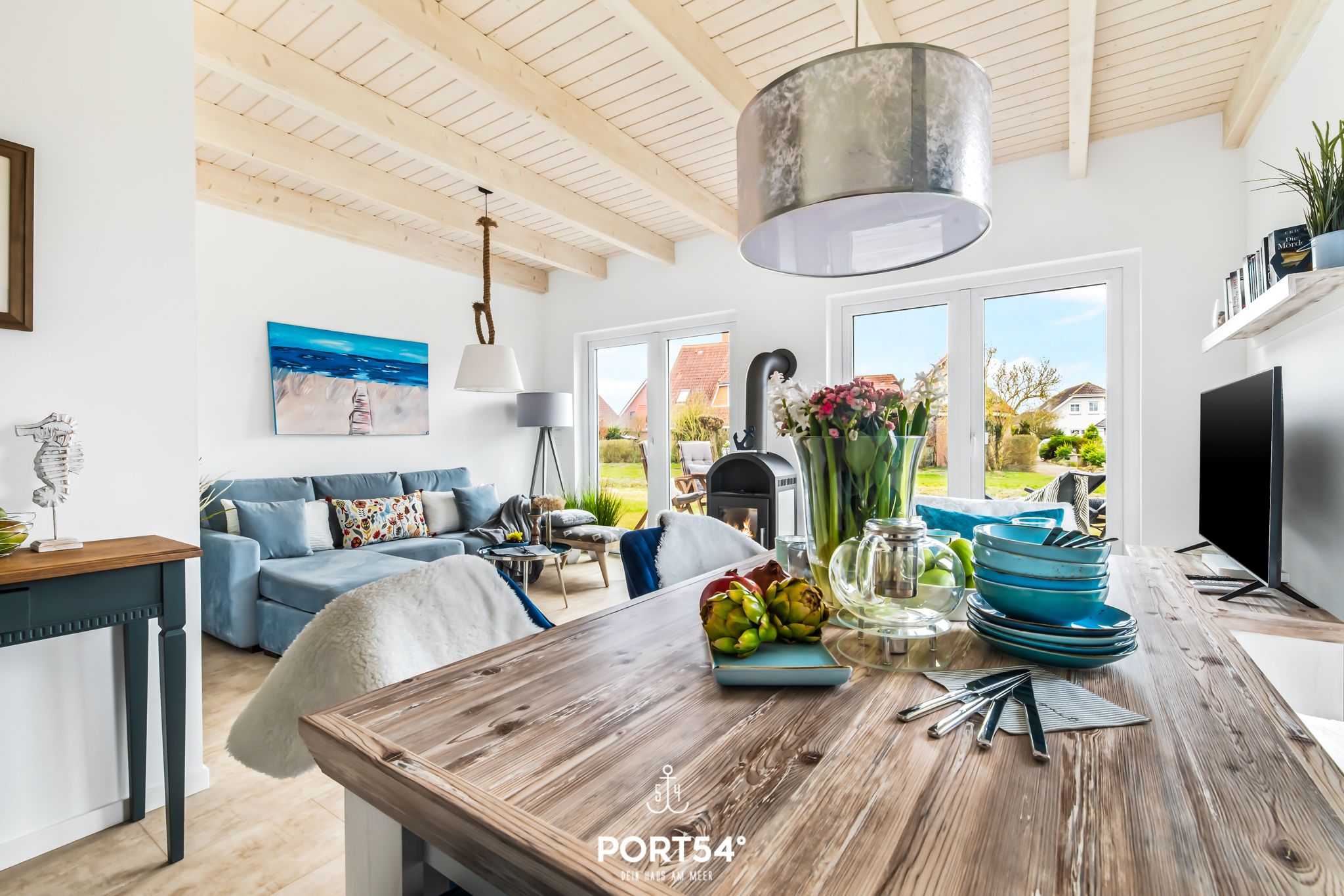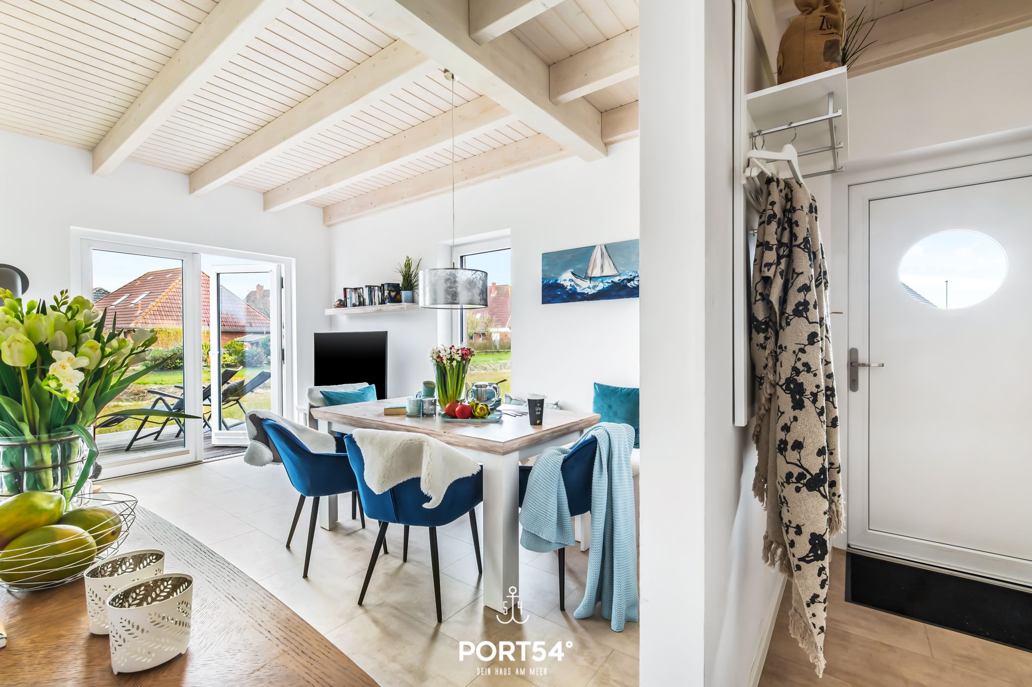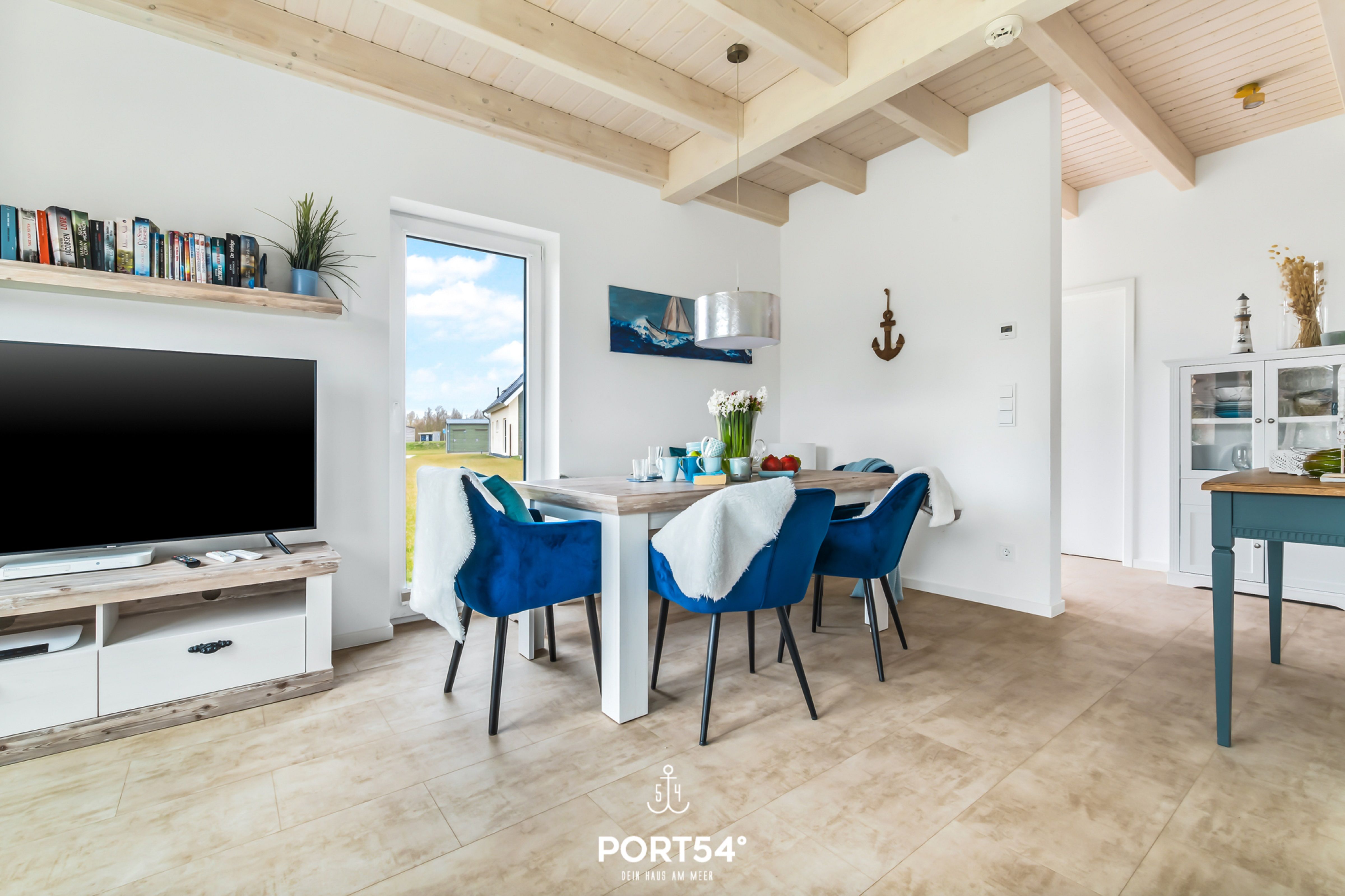 Das Ferienhaus "Perlenhus" befindet sich am Rand des Resorts und lädt zu einem erholsamen Nordseeurlaub ein. Das Ferienhaus verfügt über zwei Etagen mit ungefähr 88m² Wohnfläche. Die Wohnfläche teilt sich in ein geräumiges Wohnzimmer mit Essbereich, separater Küche, zwei Schlafzimmer und zwei Badezimmer auf. Der offene Wohn- und Essbereich mit großer Fensterfront und Zugang zur Terrasse hat einen schönen Essbereich, sowie ein gemütliches Sofa, von dem Sie entspannt ein Buch lesend den Kindern beim Spielen zuschauen oder einen Film auf dem großen Flachbild-Fernseher schauen können. Der Kamin im Wohnbereich bietet mollige Wärme an kalten Tagen, oder nach einem ausgiebigen Spaziergang an der Nordsee. Nach langen Wattwanderungen oder bei stürmischen Nordsee Tagen können Sie sich in der Infrarot-Sauna wieder aufwärmen und die Seele baumeln lassen. In der umfangreich ausgestatteten Küche finden Sie alles, was Sie für den nächsten Kochabend brauchen. Im ersten Obergeschoss erwarten Sie zwei Schlafzimmer, sowie ein