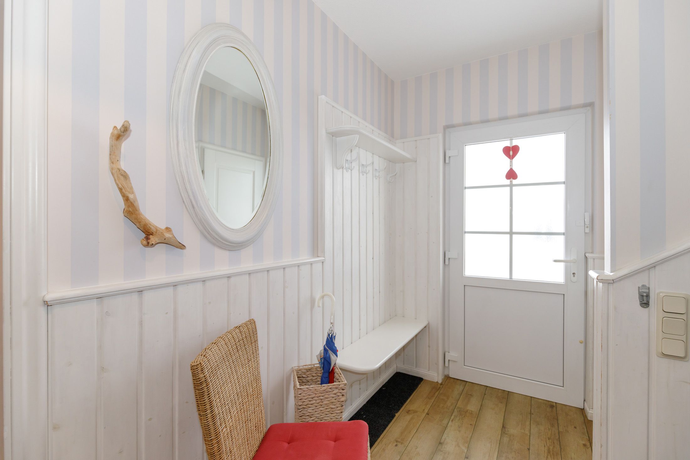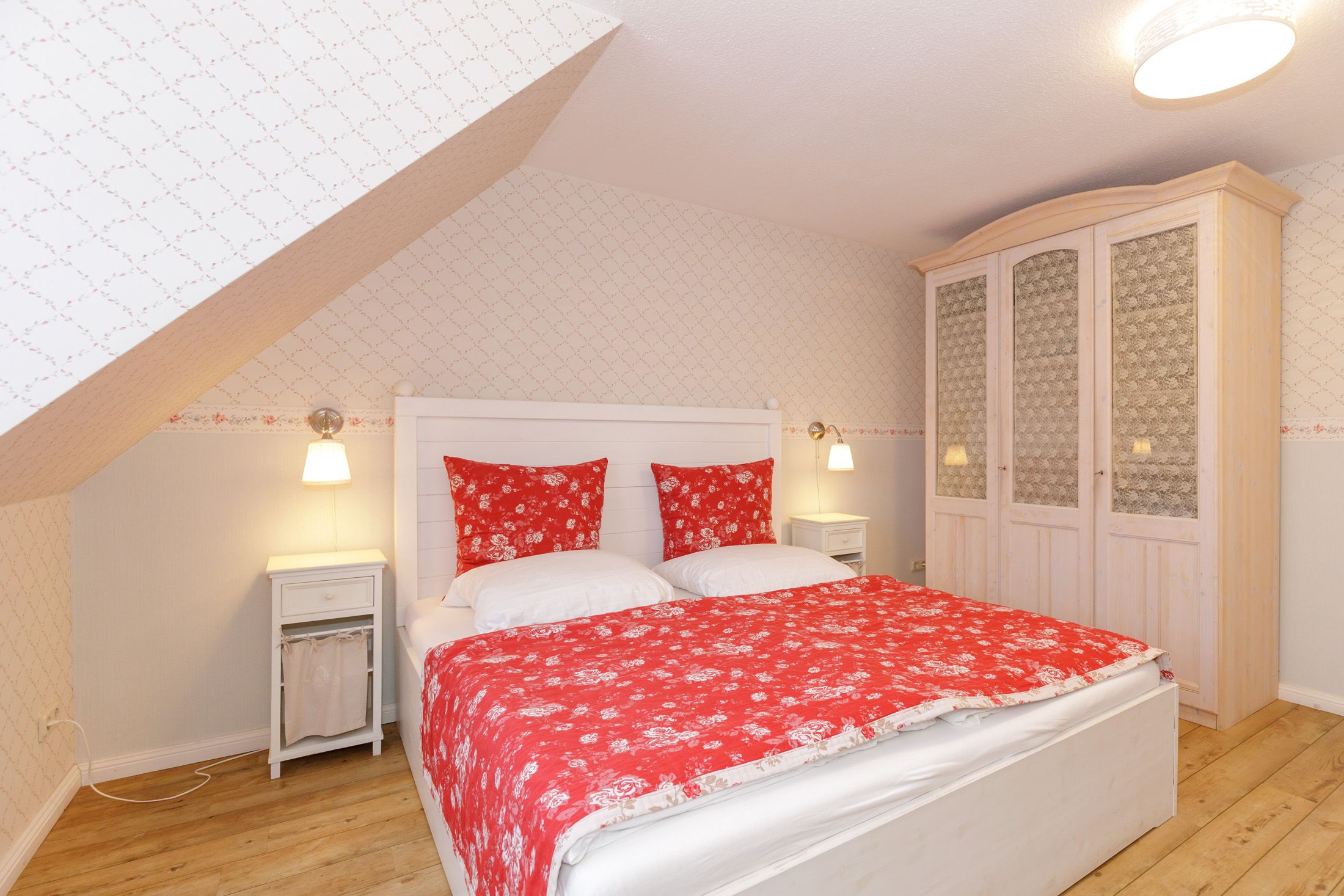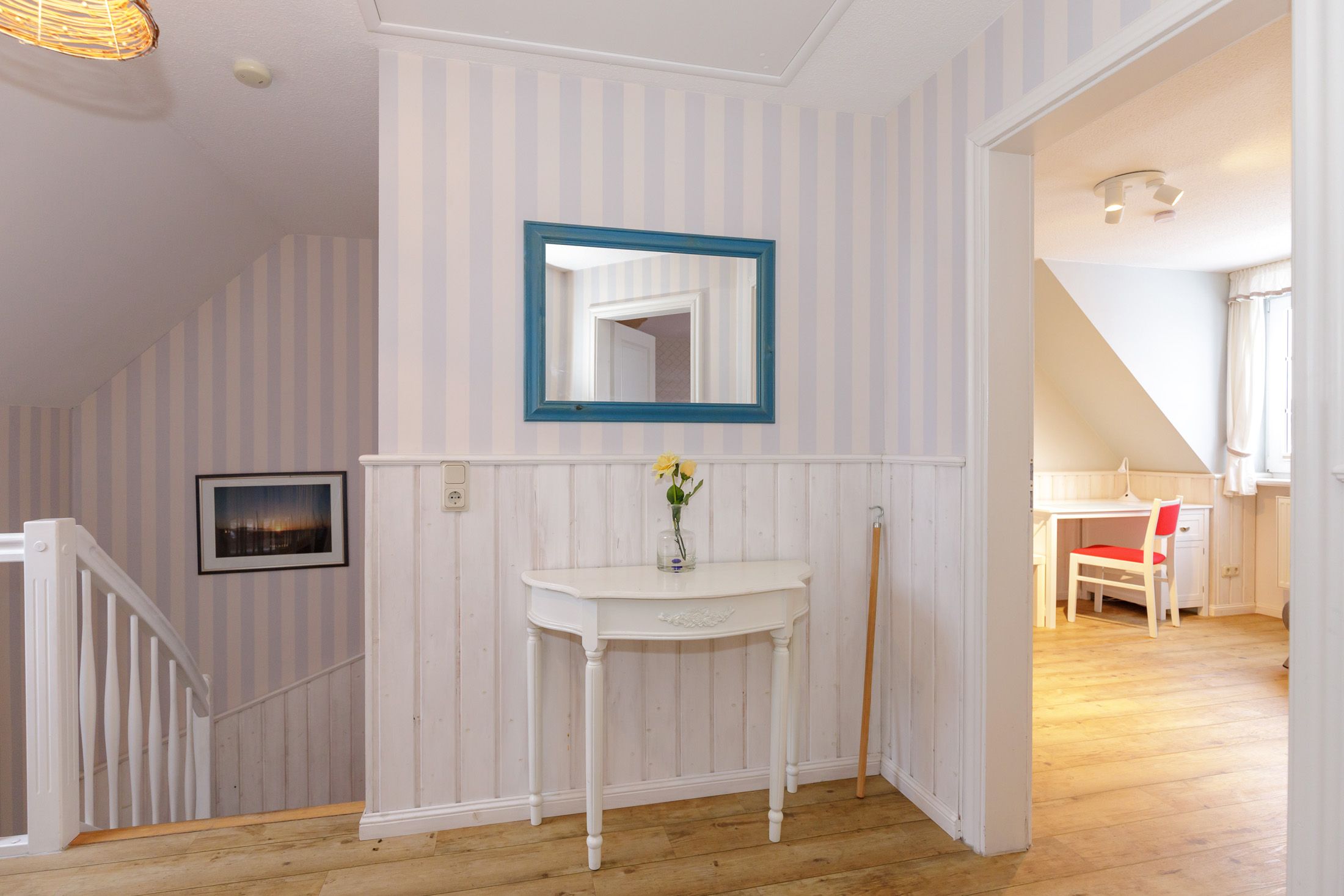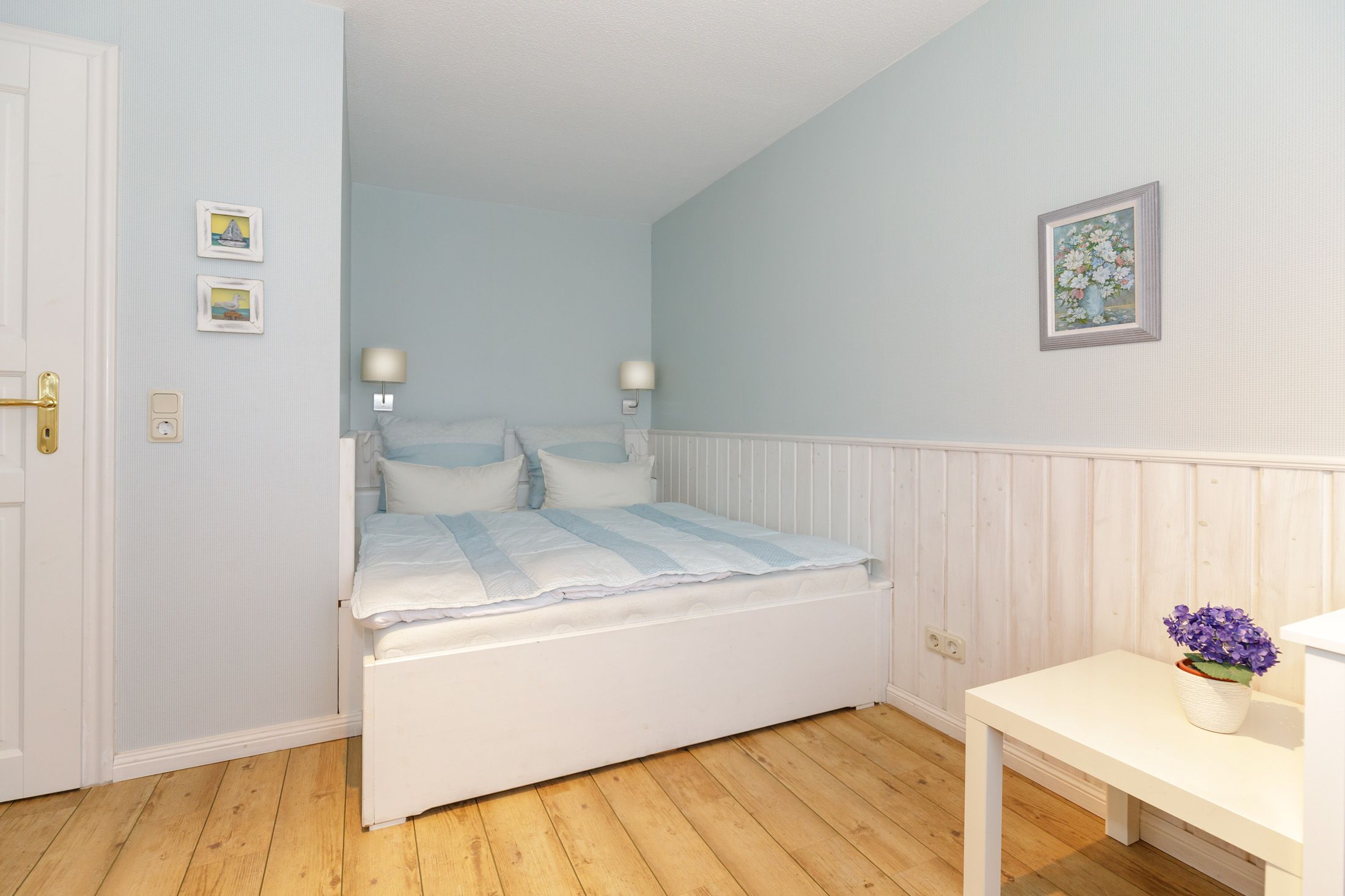 Die zweite Etage bietet ein weiteres gemütliches Doppelzimmer mit Sat-TV, ein 3-Bettzimmer mit französischem Bett und Schlafsessel sowie ein geschmackvolles Bad mit Dusche, WC und kleiner Whirlwanne. Fußbodenheizung, WLAN, zwei Kinderhochstühle und ein Babybett sorgen für zusätzlichen Komfort.