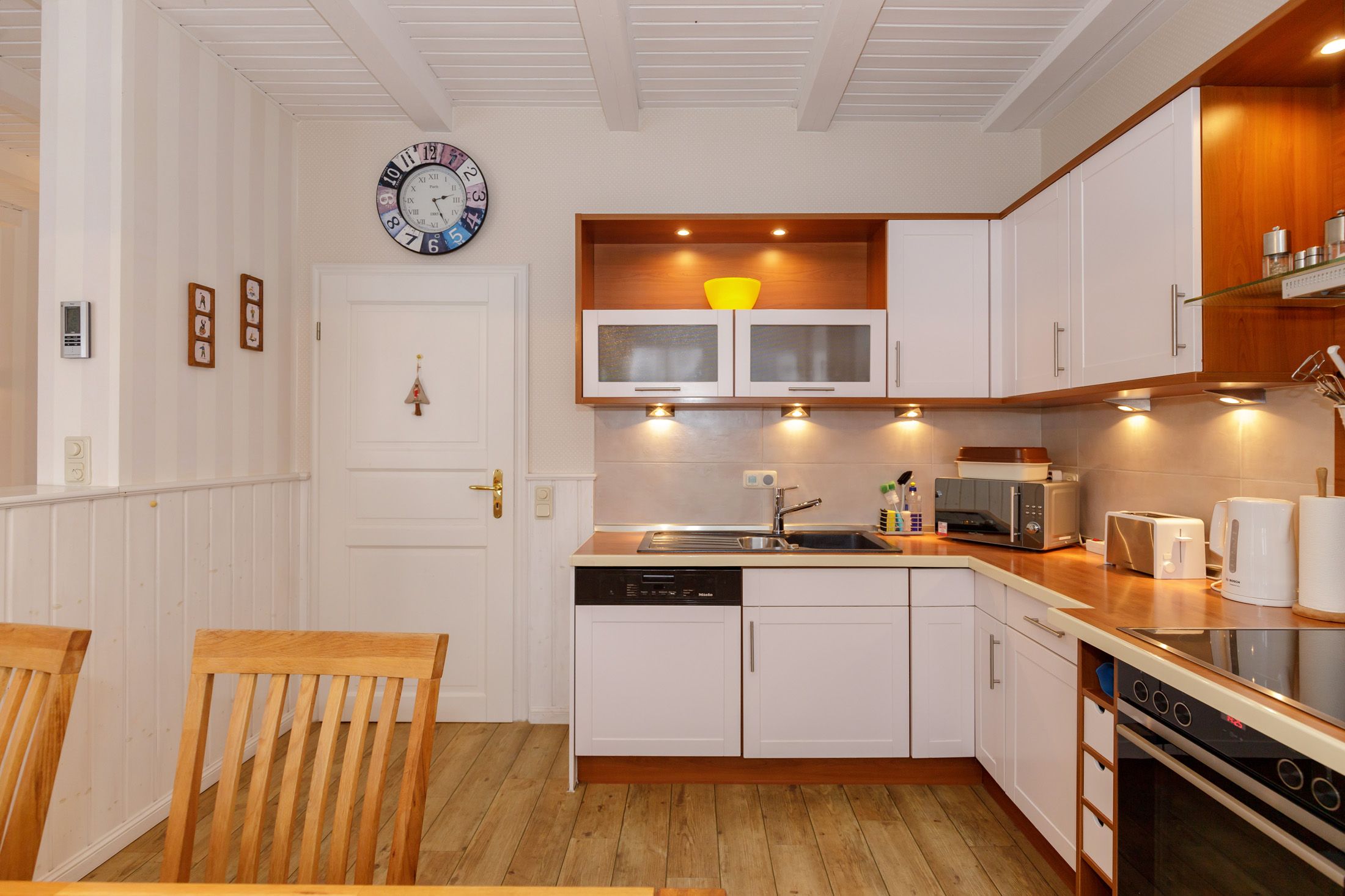 Auf rund 150 m² Wohnfläche über drei Etagen genießen Sie höchsten Komfort für bis zu 7 Personen. Im Erdgeschoss erwartet Sie ein luxuriöser Wellnessbereich mit Sauna, großem Whirlpool und direktem Zugang zur Terrasse. Ein modernes Duschbad mit WC und eine Waschmaschine ergänzen diesen Bereich.