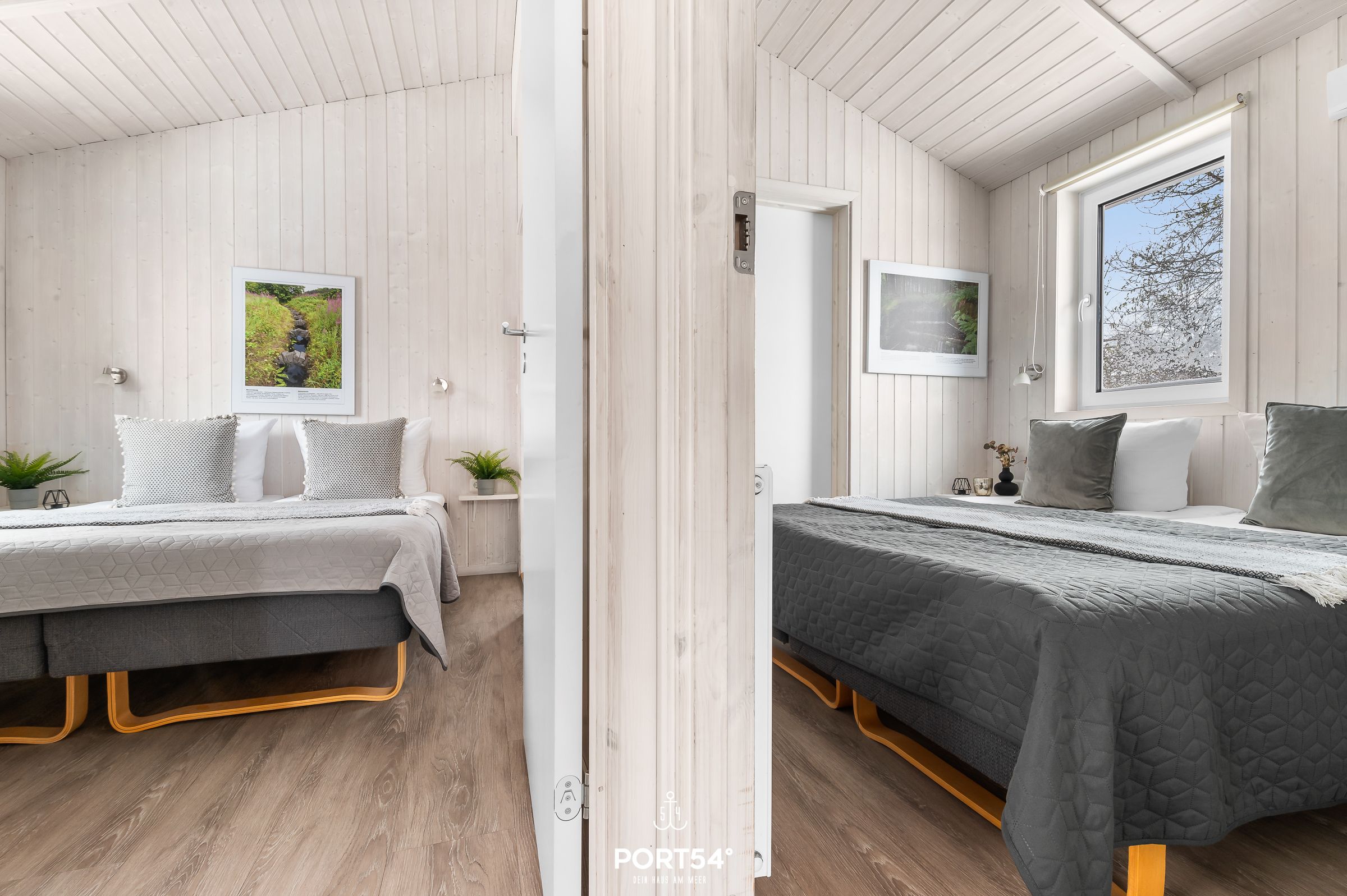 Das Ferienhaus verfügt über zwei Schlafzimmer, die jeweils mit zwei zusammengeschobene Einzelbetten (zusammen 160x200cm) ausgestattet sind. Die ruhige und naturnahe Farbgestaltung schafft eine angenehme, entspannte Atmosphäre für erholsame Nächte. Im Wohnzimmer finden Sie eine ausziehbare Schlafcouch (140 x 190 cm), die Platz für zwei weitere Personen bietet – ideal für Kinder oder Freunde. *** Bettwäsche und Handtücher können optional hinzu gebucht werden***