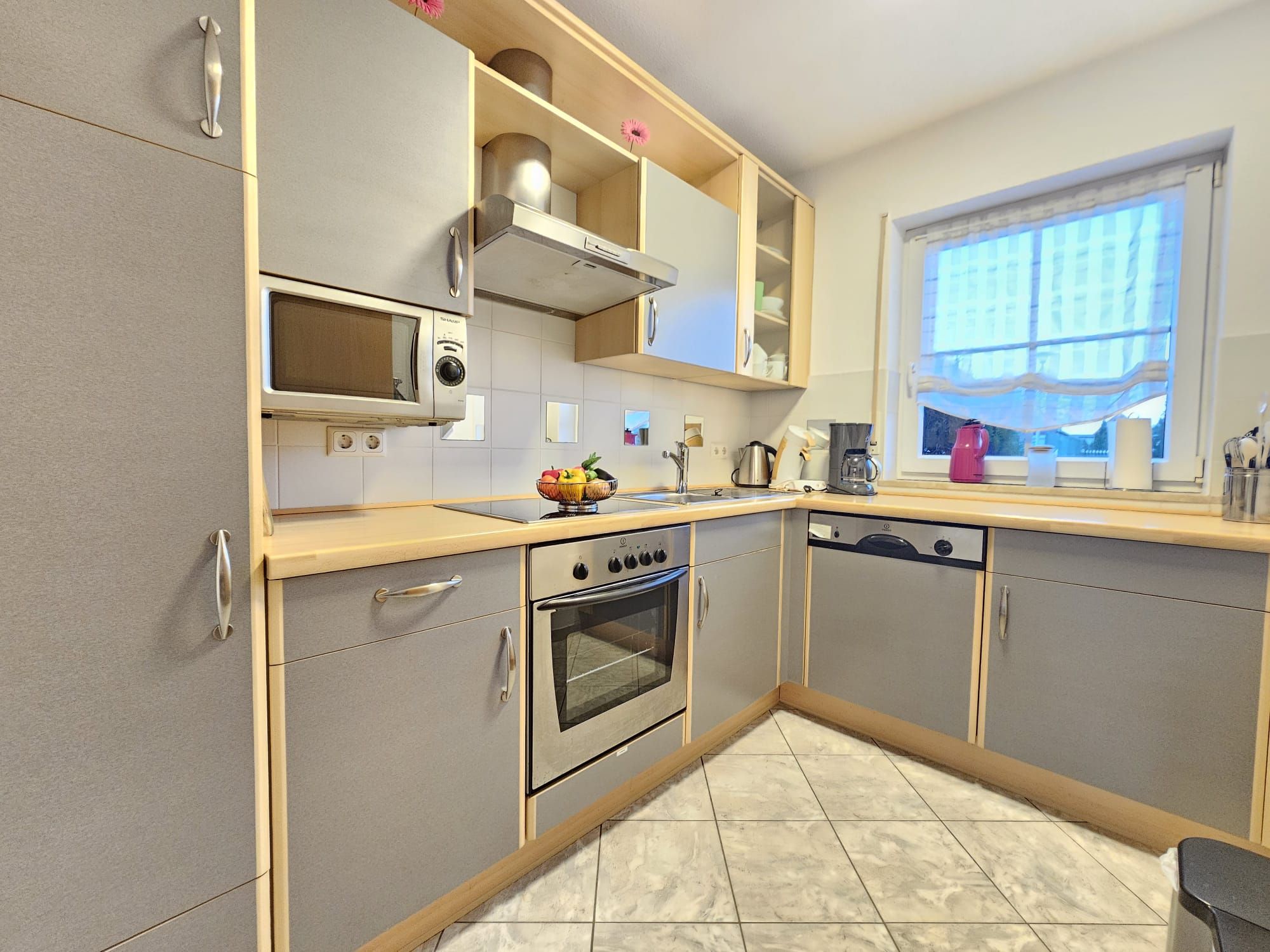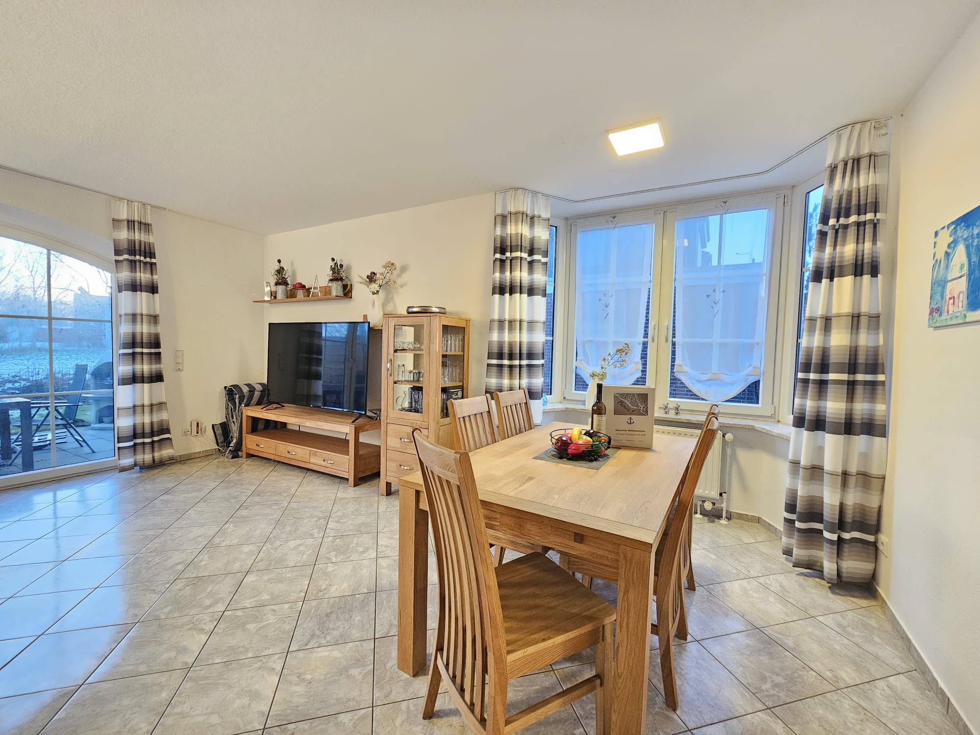 Der offen gestaltete Essbereich mit angrenzender Küche lädt zu gemeinsamen Mahlzeiten ein. Die Küche ist funktional und vollständig ausgestattet, sodass Sie sich bequem selbst versorgen können. Zur Ausstattung gehören: