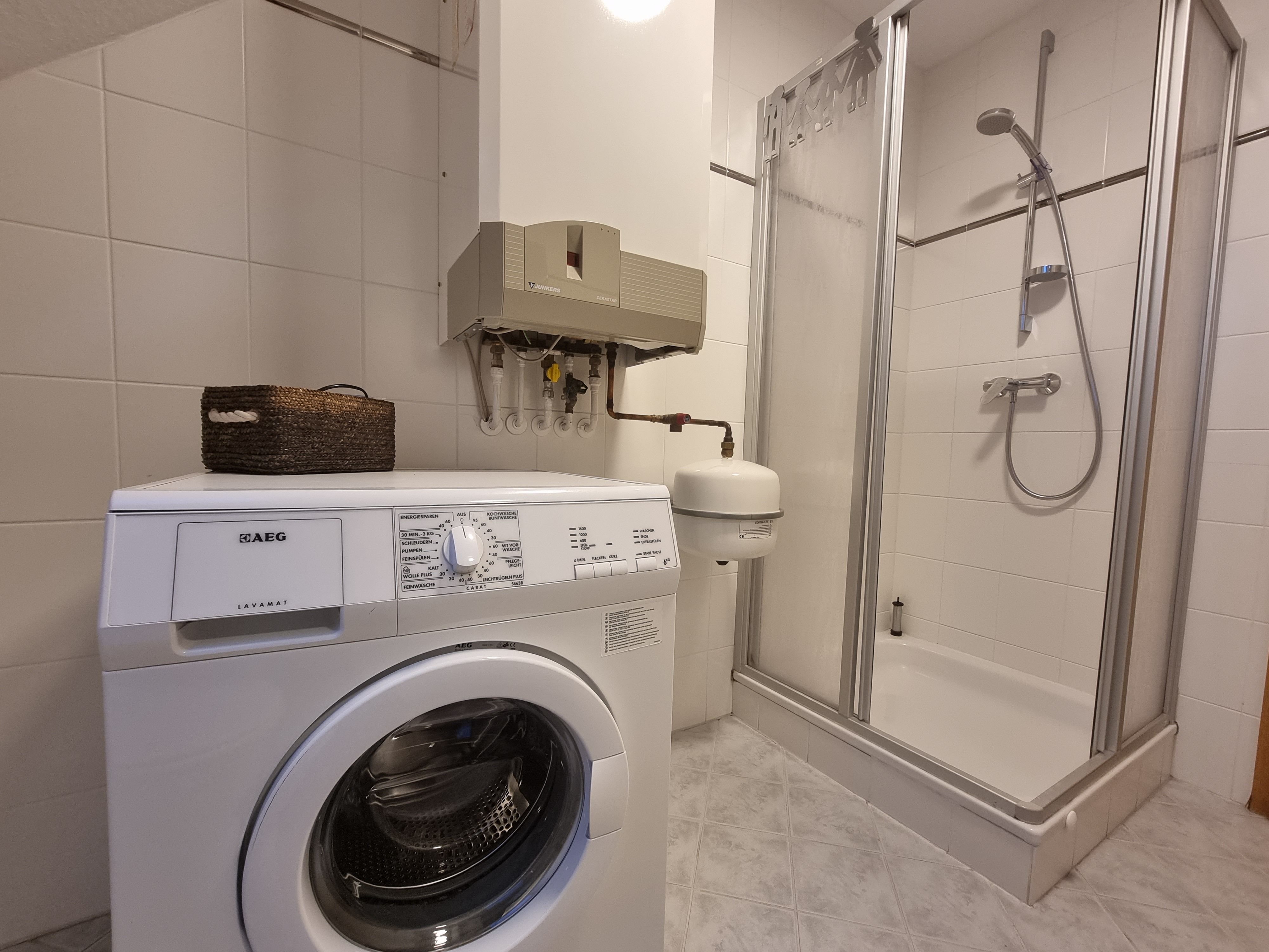 Das moderne Badezimmer ist mit Dusche, Waschbecken und WC ausgestattet. Zusätzlich steht Ihnen ein separates Gäste-WC zur Verfügung – ideal für Familien und Gruppen.
