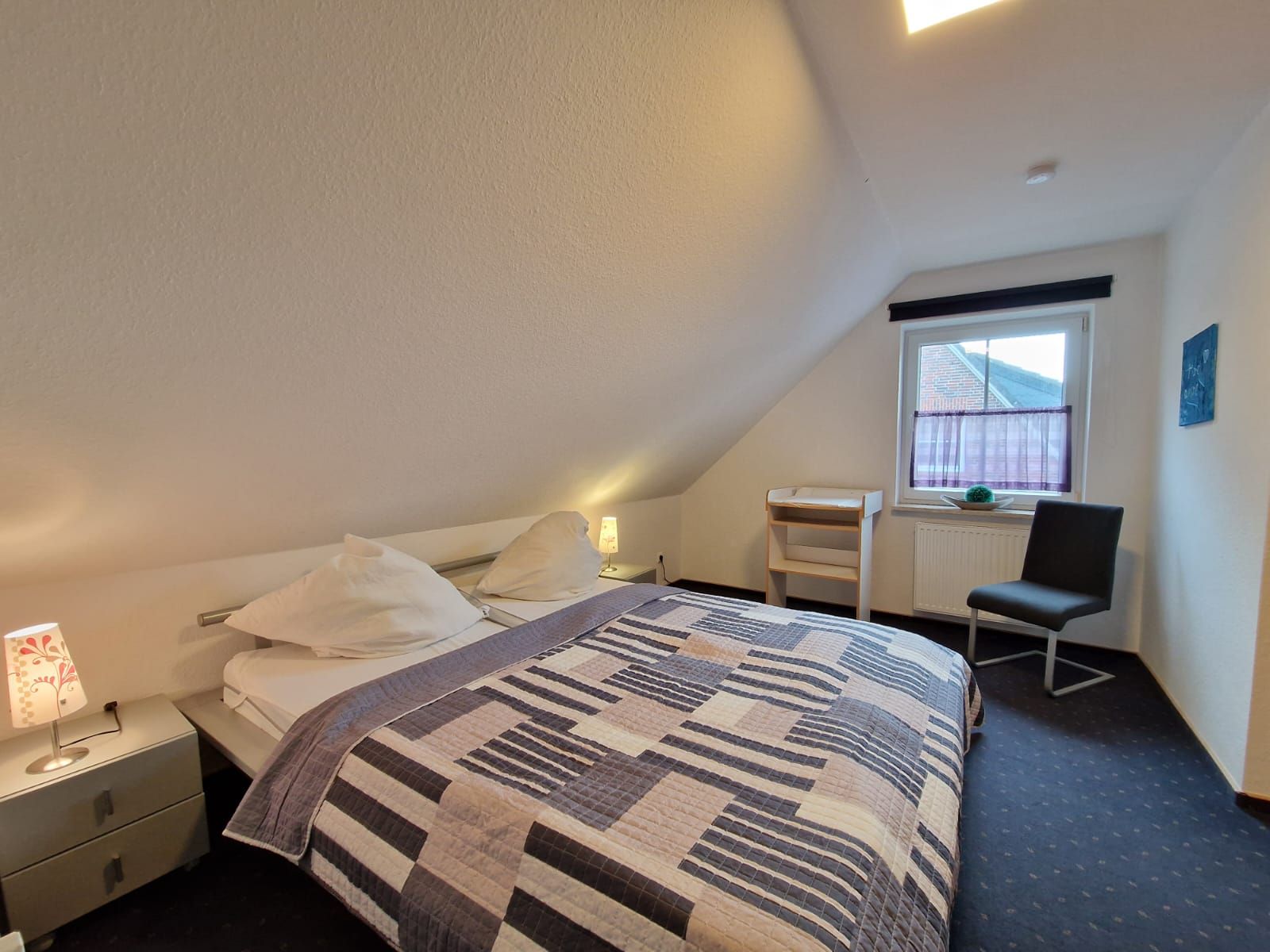 Das Ferienhaus verfügt über drei separate Schlafzimmer, die liebevoll eingerichtet sind und Platz für bis zu sechs Personen bieten. Jedes Zimmer sorgt mit komfortablen Betten und ausreichend Stauraum für erholsamen Schlaf und Entspannung nach einem Tag an der Nordsee.