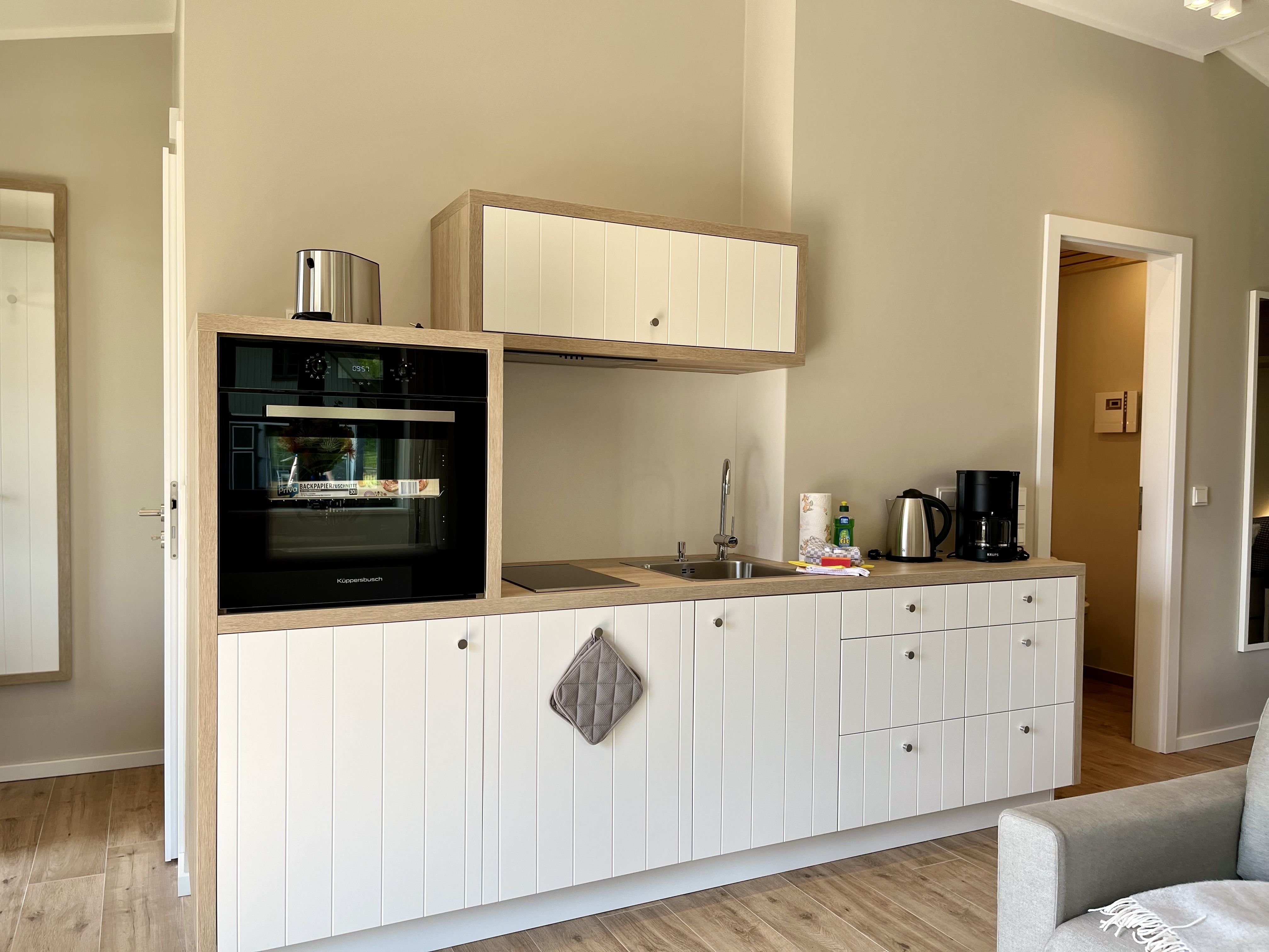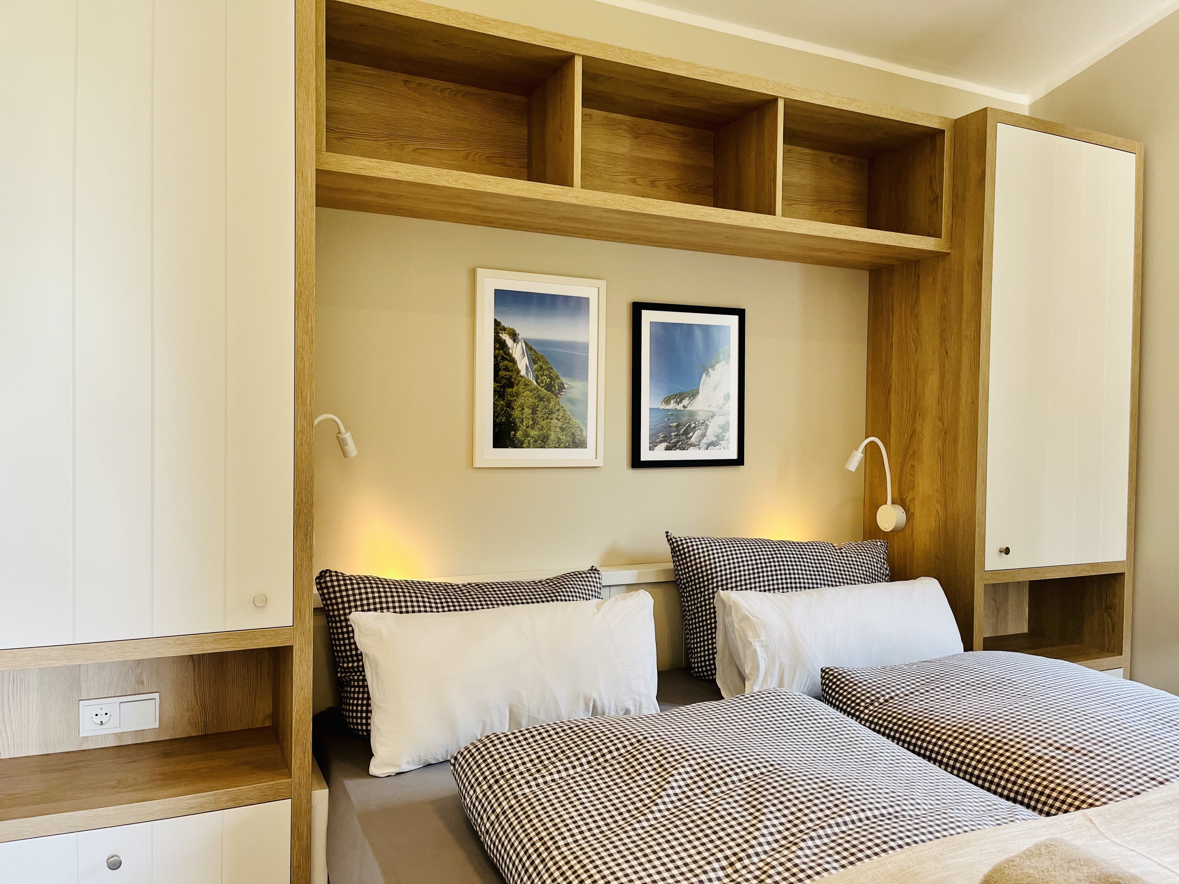 Zubereiten können Sie sie in der offenen und modernen Küche. Alle Geräte sind hochwertig. Ein komplettes Geschirr-Service befindet sich in den Schränken. Abwaschen muss hier zum Glück niemand. Es gibt einen Geschirrspüler. Weiter geht’s mit einem komfortablen Schlafzimmer. Ein bequemes Boxspringdoppelbett (180 x 200) verspricht erholsame Träume. Das Zimmer verfügt über einen Kleiderschrank und einen Flat-TV. Ein Bad mit Dusche und WC sorgt für genügend Raum zum Frischmachen. Das Bad ist zudem mit einer Finnischen Sauna ausgestattet. Bei Anreise liegen Handtücher für Sie bereit und die Betten sind bezogen.