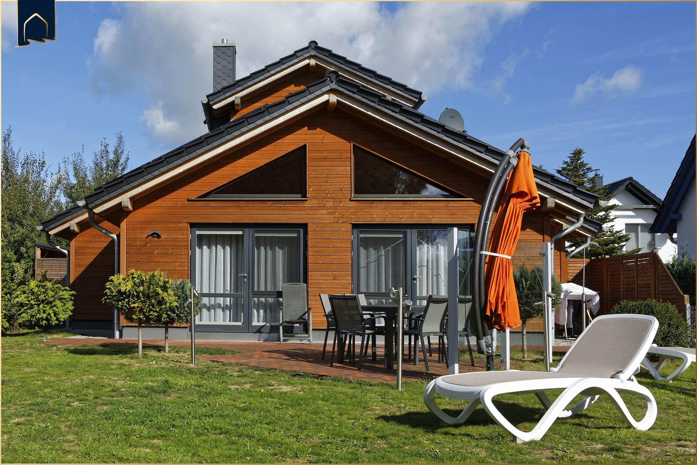 Das 553 m² große, vollständig eingezäunte Grundstück bietet Privatsphäre und Sicherheit. Für Kinder gibt es einen kleinen Spielplatz mit Rutsche, Schaukel und Sandkasten, außerdem stehen ein Bollerwagen und ein Fahrradabstellraum zur Verfügung. Eltern genießen währenddessen entspannte Stunden auf der Terrasse mit Grill, Sonnenliegen und Markise.