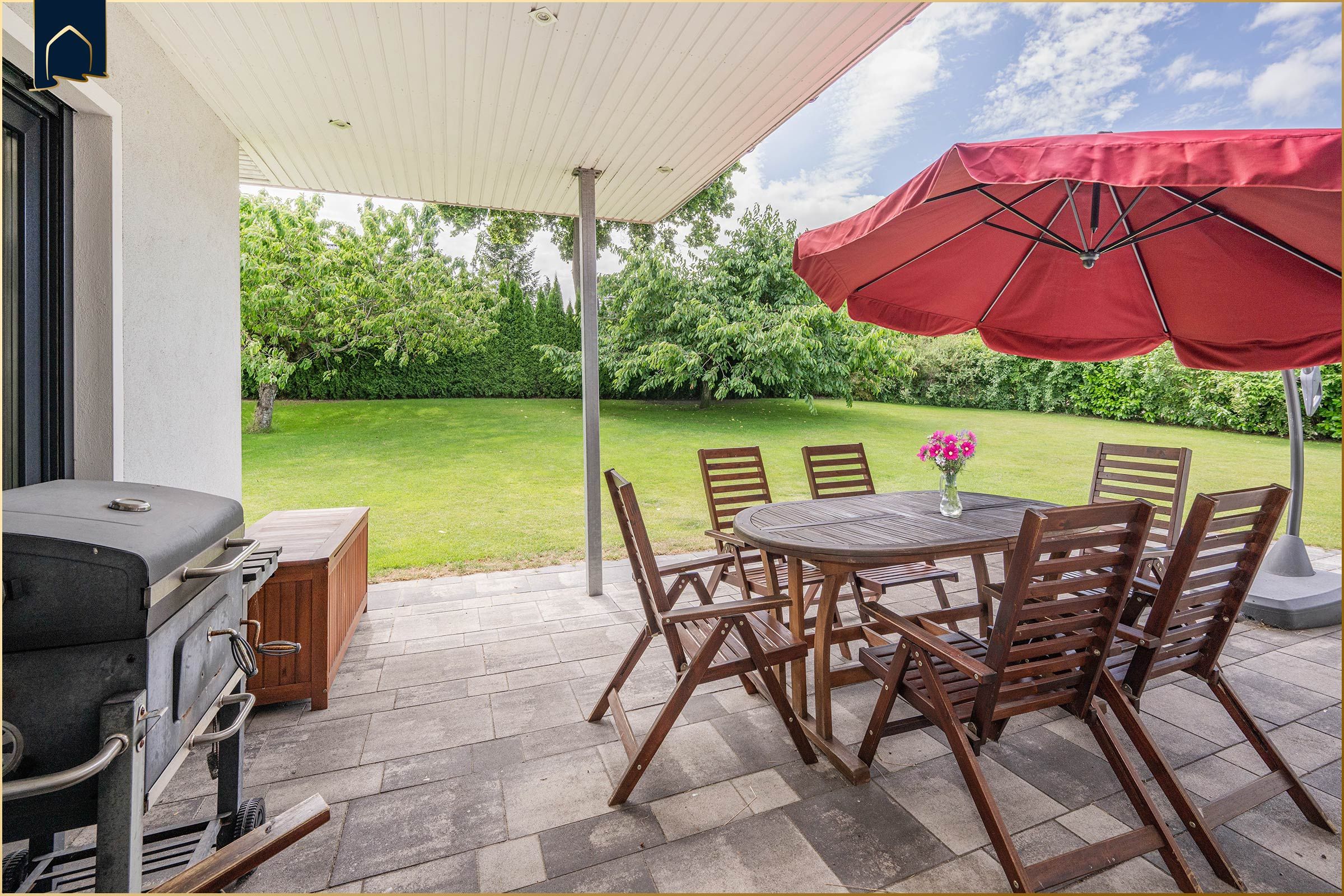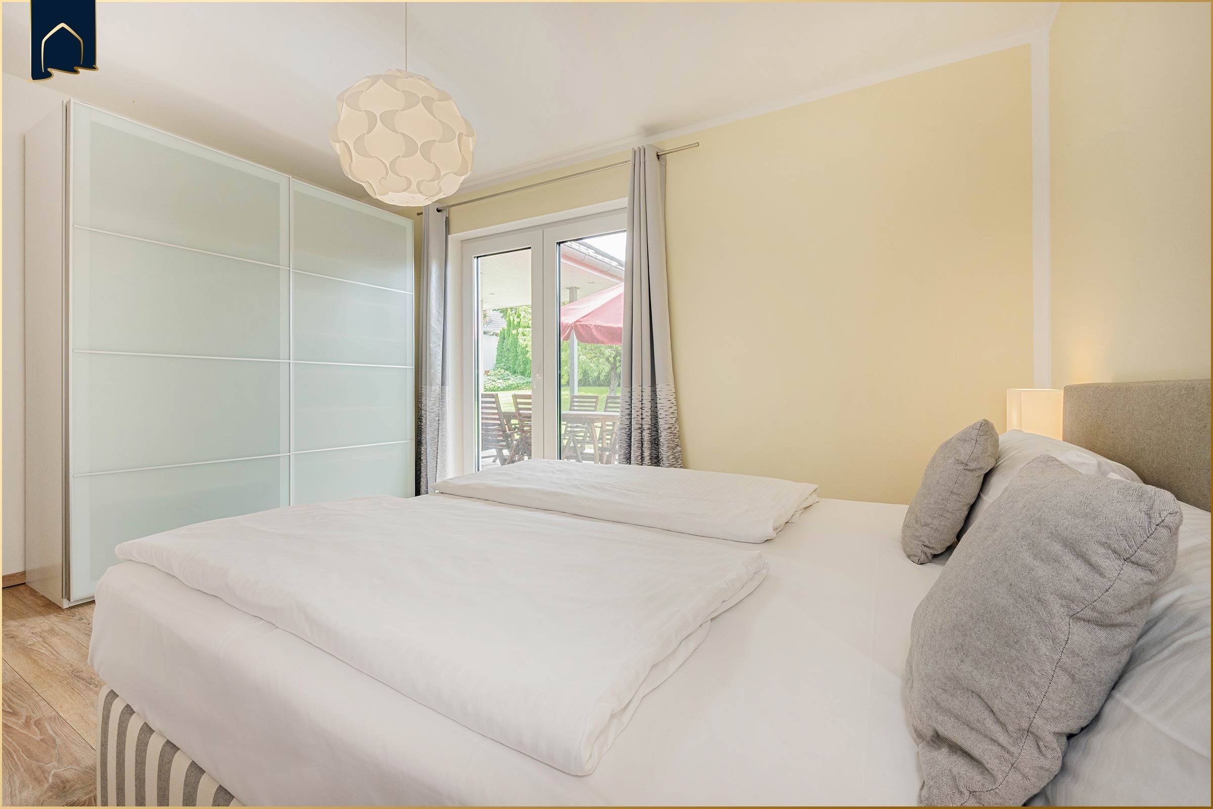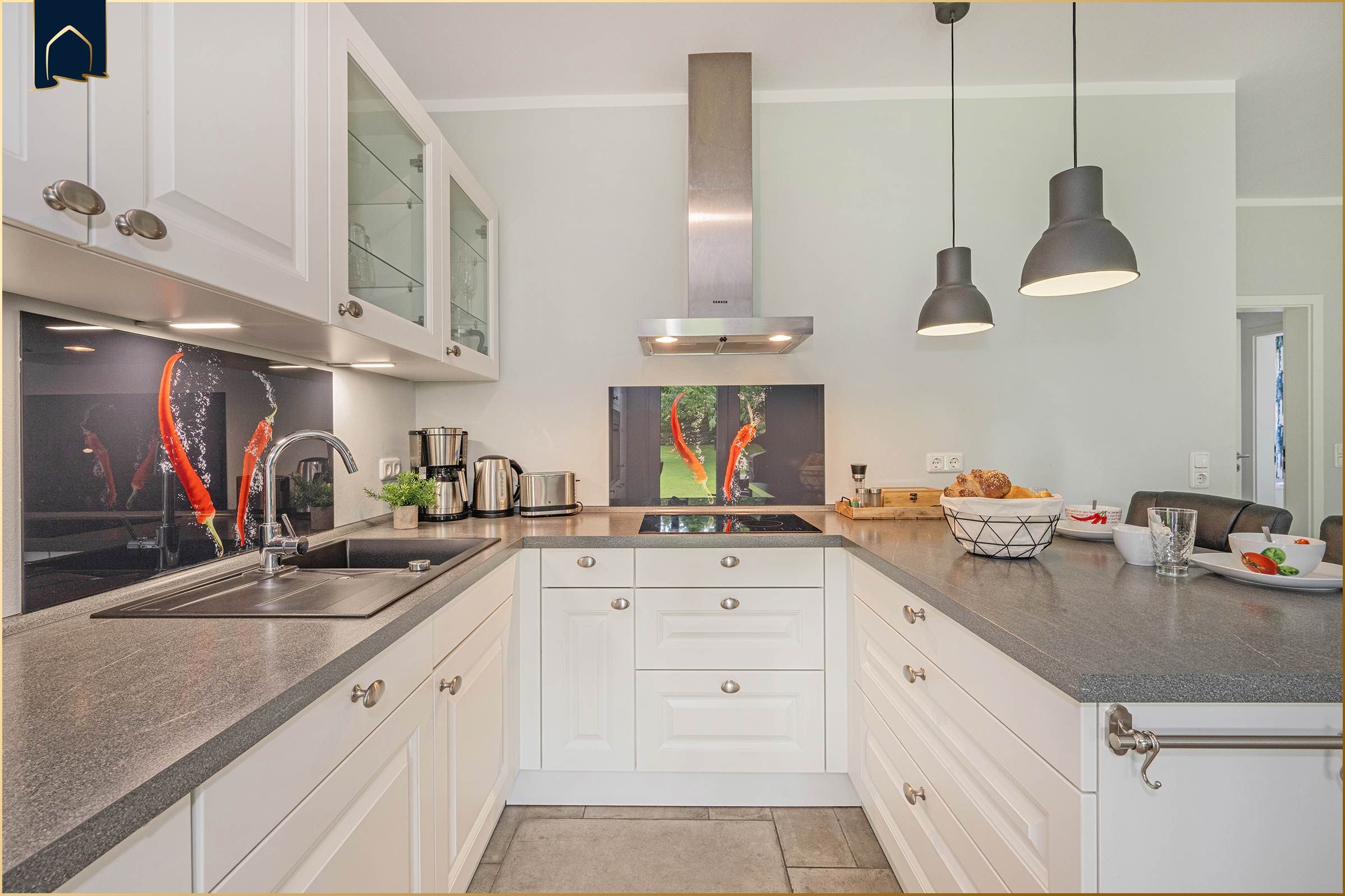Dieses liebevoll eingerichtete Ferienhaus ist die perfekte Wahl für alle, die Erholung in ruhiger, naturnaher Umgebung suchen. Das freistehende Haus bietet auf 126 m² viel Platz für bis zu acht Gäste und verfügt über drei Schlafzimmer sowie zwei moderne Bäder mit Dusche. Der großzügige Wohnbereich mit Kamin und gemütlicher Sofaecke lädt zum Entspannen ein, während die voll ausgestattete Küche keine Wünsche offenlässt. Für Familien mit Kindern und Hundebesitzer besonders praktisch: Das rund 1.000 m² große Grundstück ist komplett eingezäunt. Auf der überdachten Terrasse mit Grillmöbeln lässt sich der Tag wunderbar ausklingen. Auch WLAN, TV, Waschmaschine und Fußbodenheizung sind vorhanden. Einkaufsmöglichkeiten, Restaurants, ein See sowie die Ostsee sind in wenigen Minuten mit dem Auto erreichbar. Das Haus liegt ruhig am Waldrand in einem kleinen Dorf – ideal für Naturliebhaber, Wanderfreunde und Ruhesuchende.