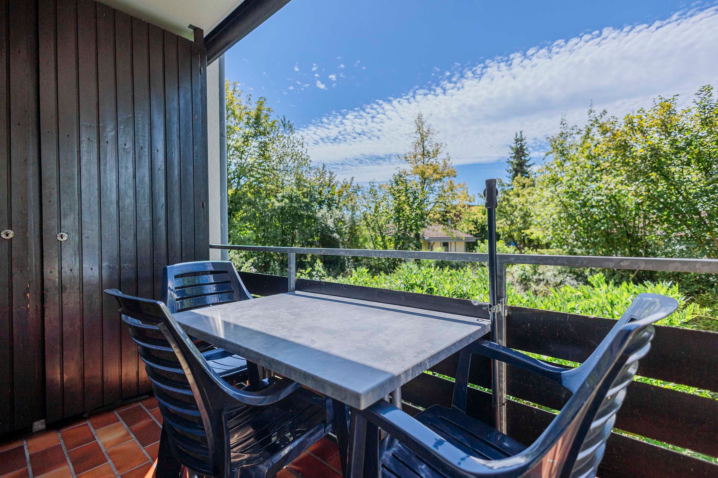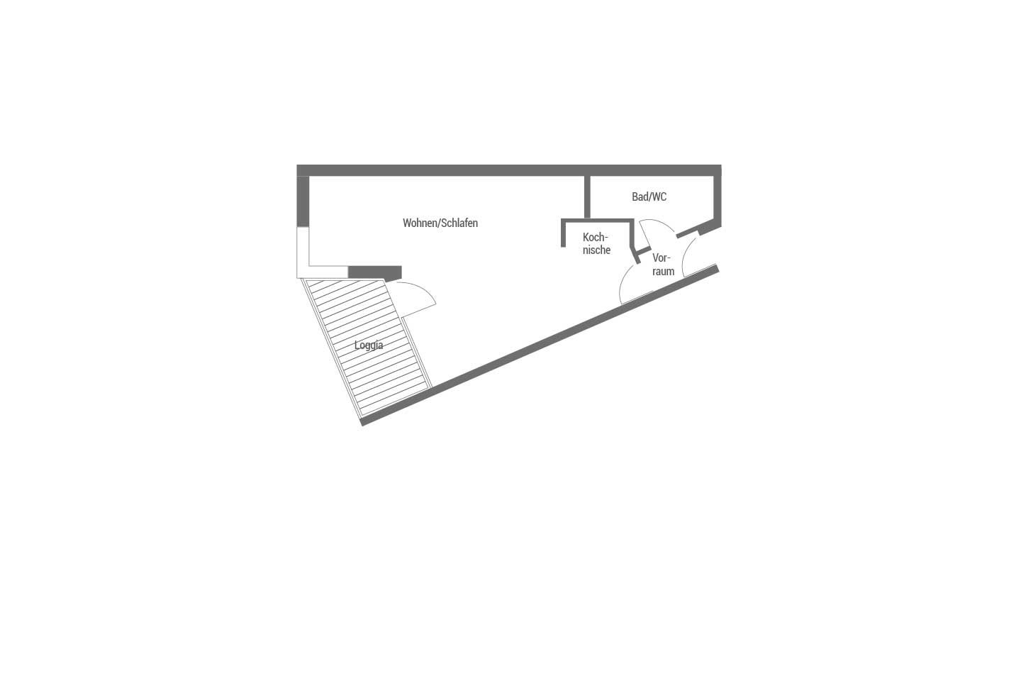 Die Wohnung (ca. 40 m²) verfügt über einen Wohn-Schlafraum, Küchenzeile, Dusche/WC, Balkon sowie einen eigenen PKW-Stellplatz.