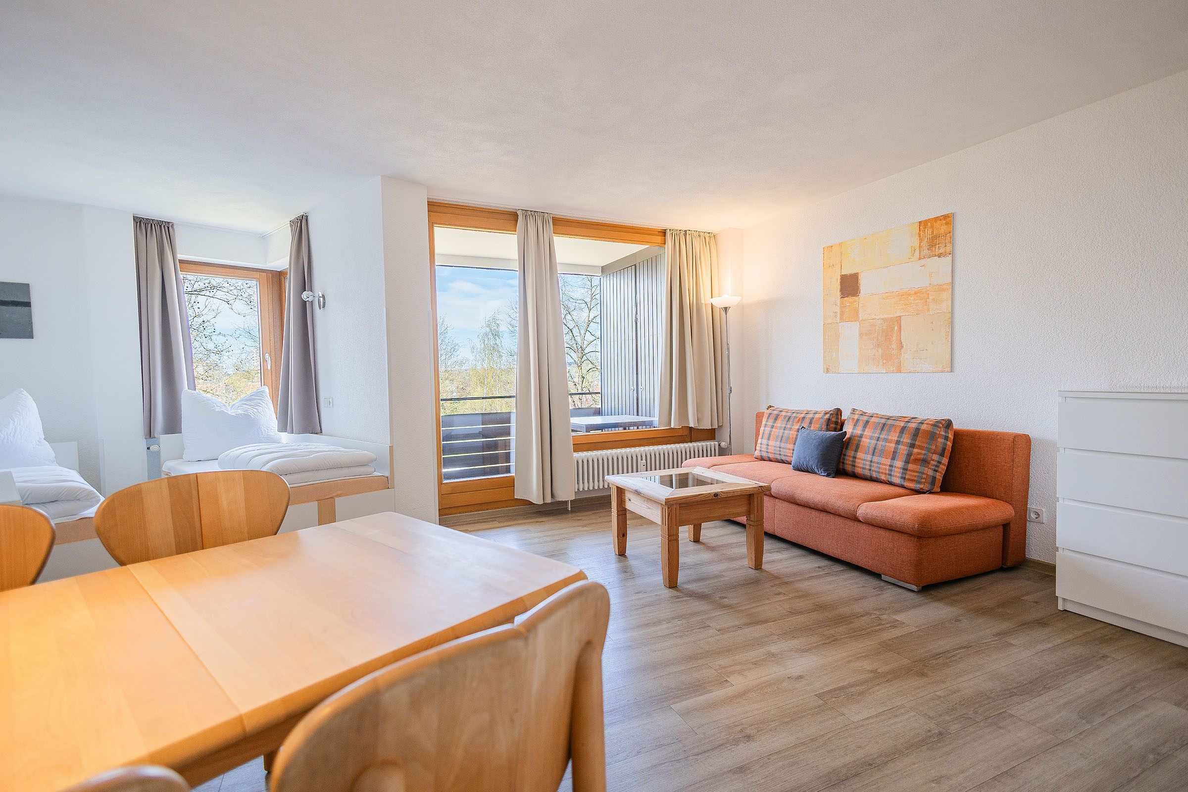 Sie ist Teil des Ferienwohnparks Immenstaad am Herzen des Bodensees. In wenigen Minuten erreichen Sie zu Fuß, mit dem Fahrrad oder Auto die Ortsmitte. Zusätzlich steht Ihnen hierfür eine kostenfreie Busverbindung zur Verfügung. Sie erreichen die einzelnen Wohnungen komfortabel über einen Aufzug. (nicht direkt von der Tiefgarage)
