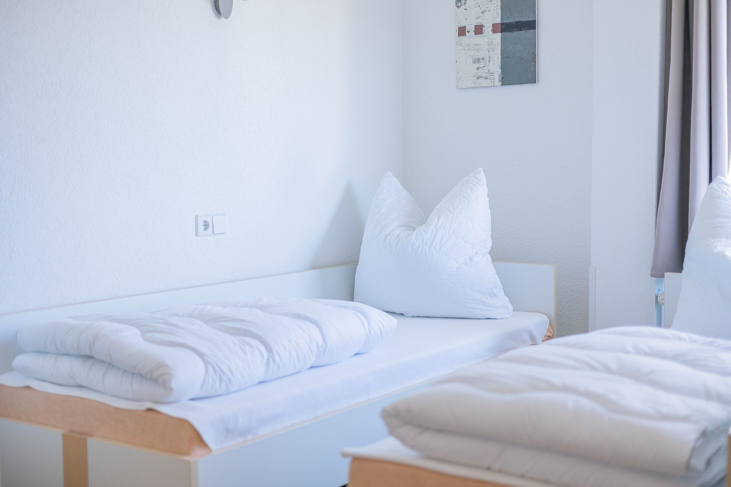 Bett-, Toiletten- und Küchenwäsche können Sie entweder selbst mitbringen oder bei uns gegen eine Gebühr ausleihen. Bettdecken und Kopfkissen sind vorhanden.