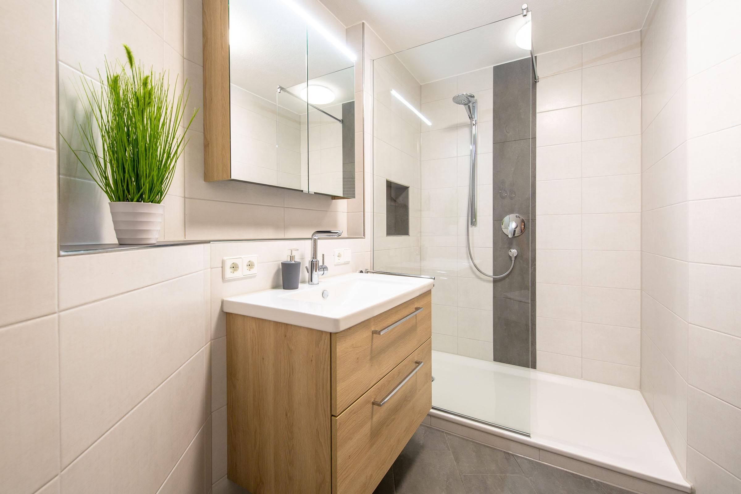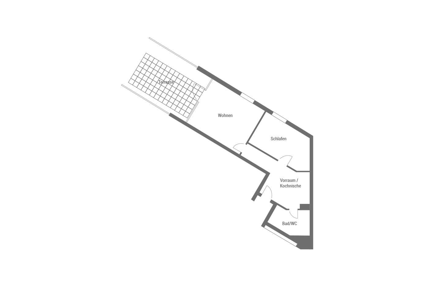 Die Wohnung (ca. 50 m²) verfügt über ein Schlafzimmer, einen Wohn-Schlafraum, Küche mit Backofen und Spülmaschine, Bad/WC, Terrasse sowie einen eigenen PKW-Stellplatz in der Tiefgarage.