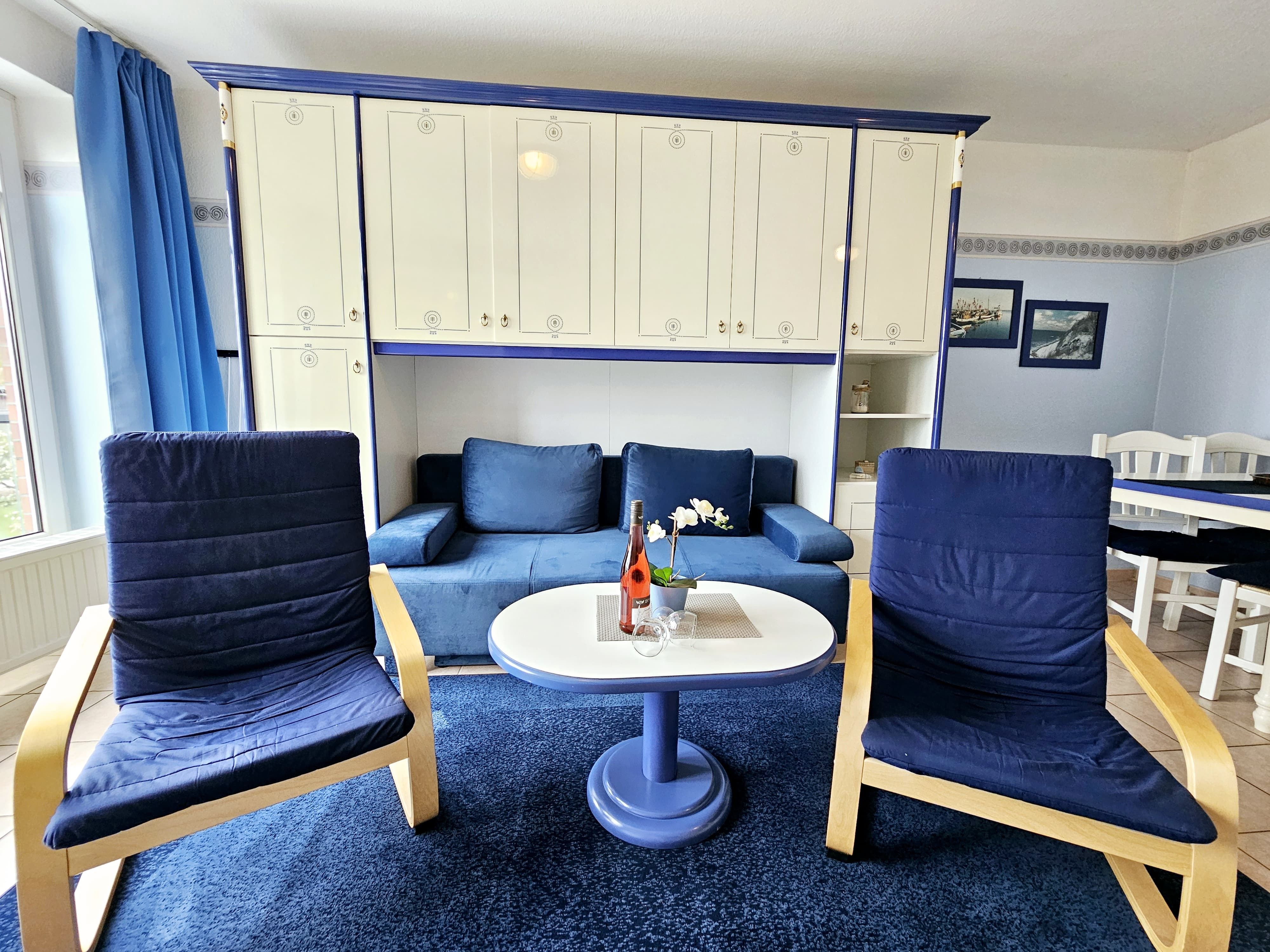 Diese liebevoll eingerichtete 2-Zimmer-Ferienwohnung begeistert mit einer geschmackvollen Einrichtung im maritimen Stil und einem durchdachten Wohnkonzept. Der helle Wohnbereich öffnet sich zum Balkon, von dem aus Sie einen herrlichen Blick auf das Salzhaff genießen können – ein idealer Ort, um den Morgenkaffee mit Sonnenlicht und Meeresluft zu verbinden oder den Abend beim Sonnenuntergang ausklingen zu lassen.