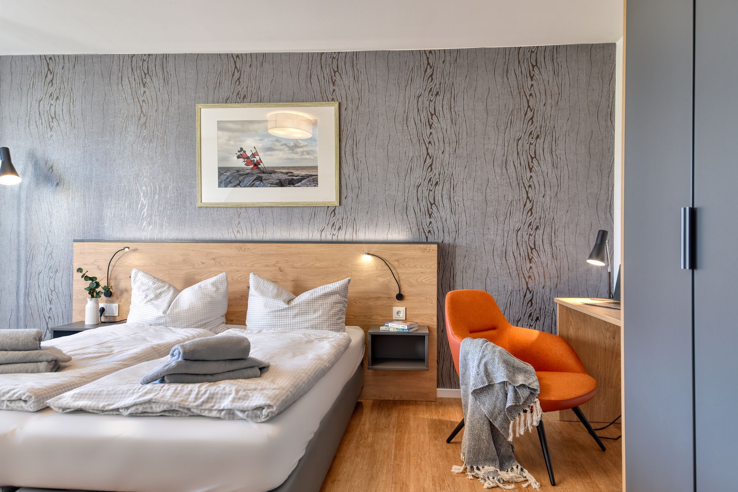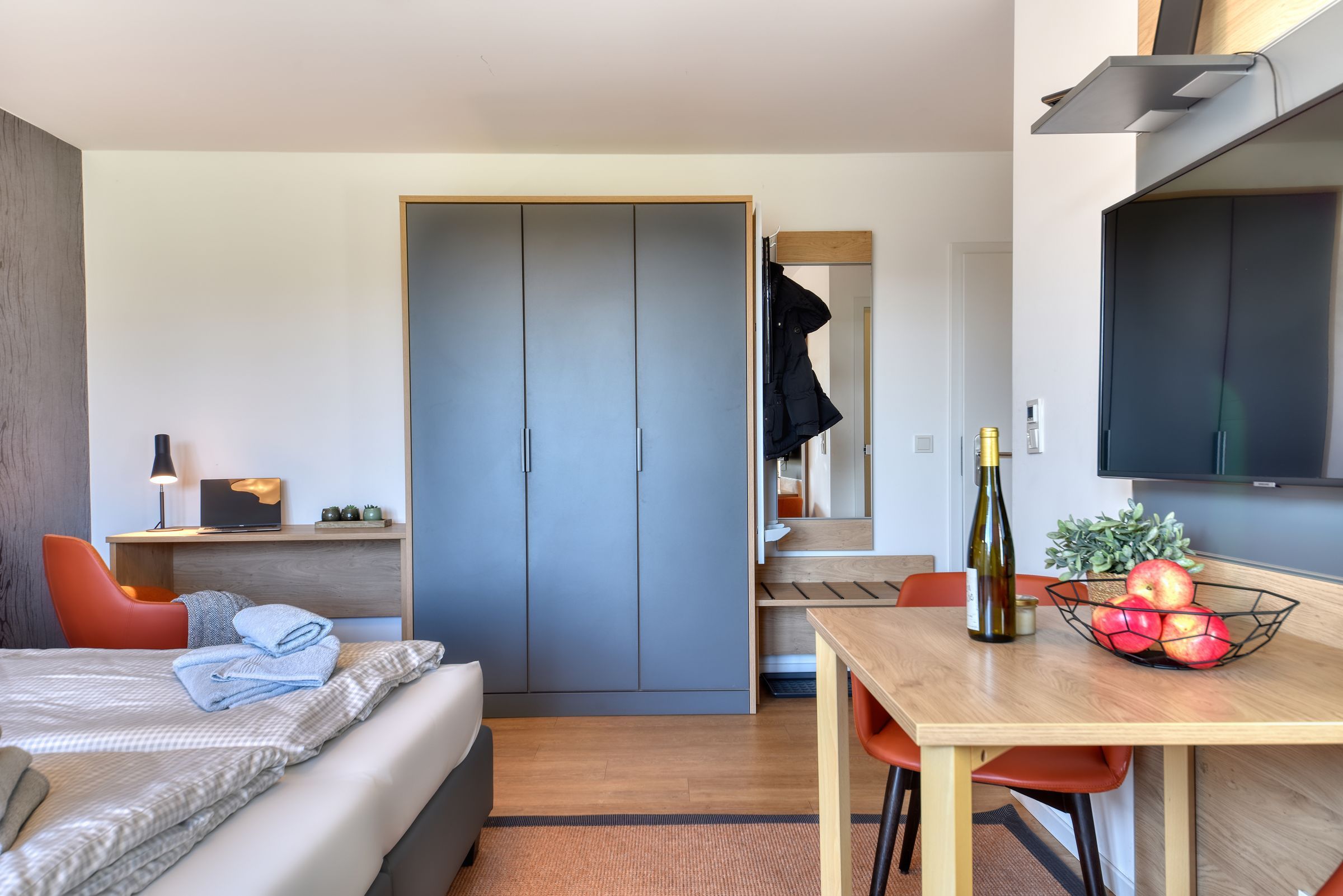Schlafzimmer: Hochwertige Bettwäsche und genügend Stauraum für Ihre Garderobe sorgen für zusätzlichen Komfort.