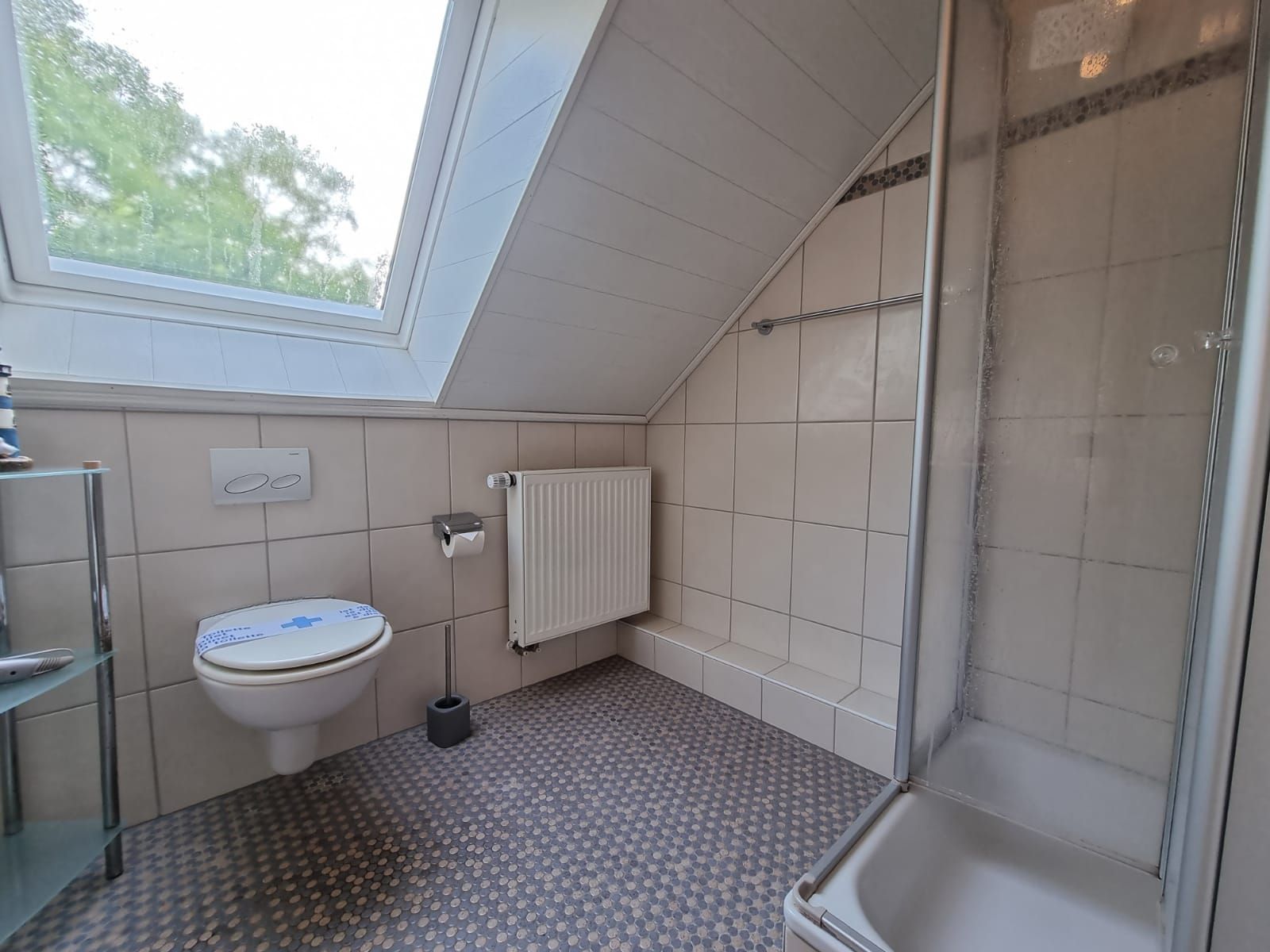 Badezimmer: Modernes Duschbad, hell und freundlich gestaltet.