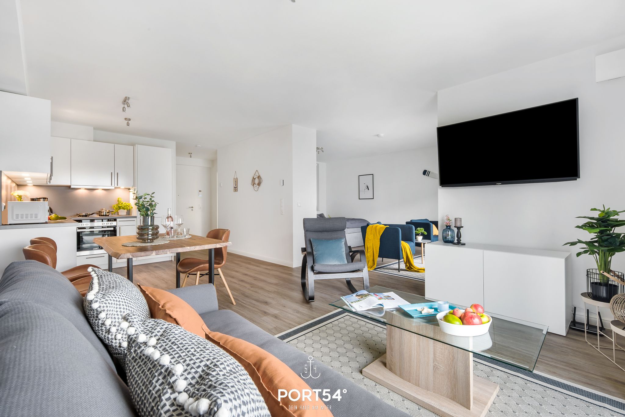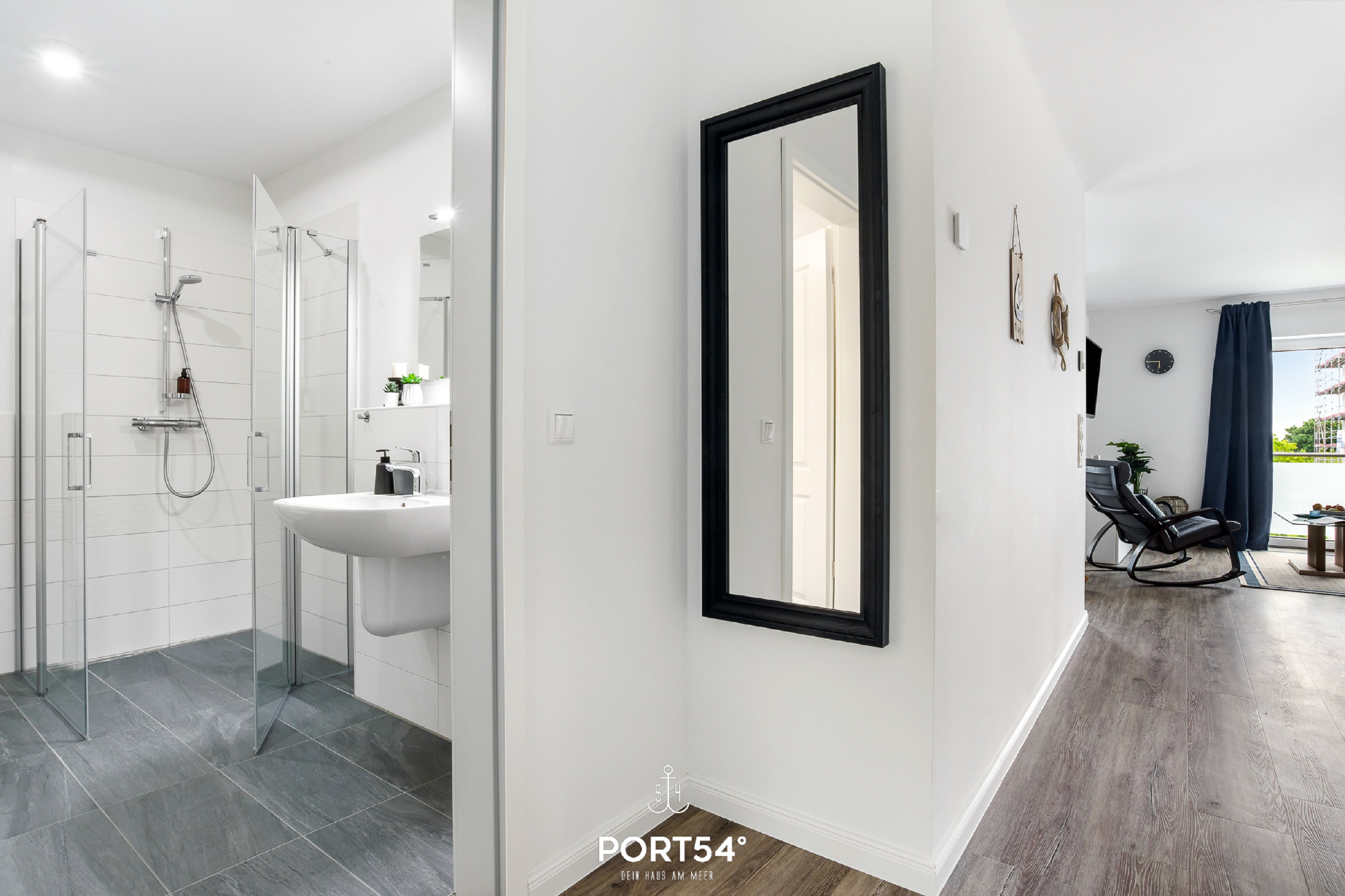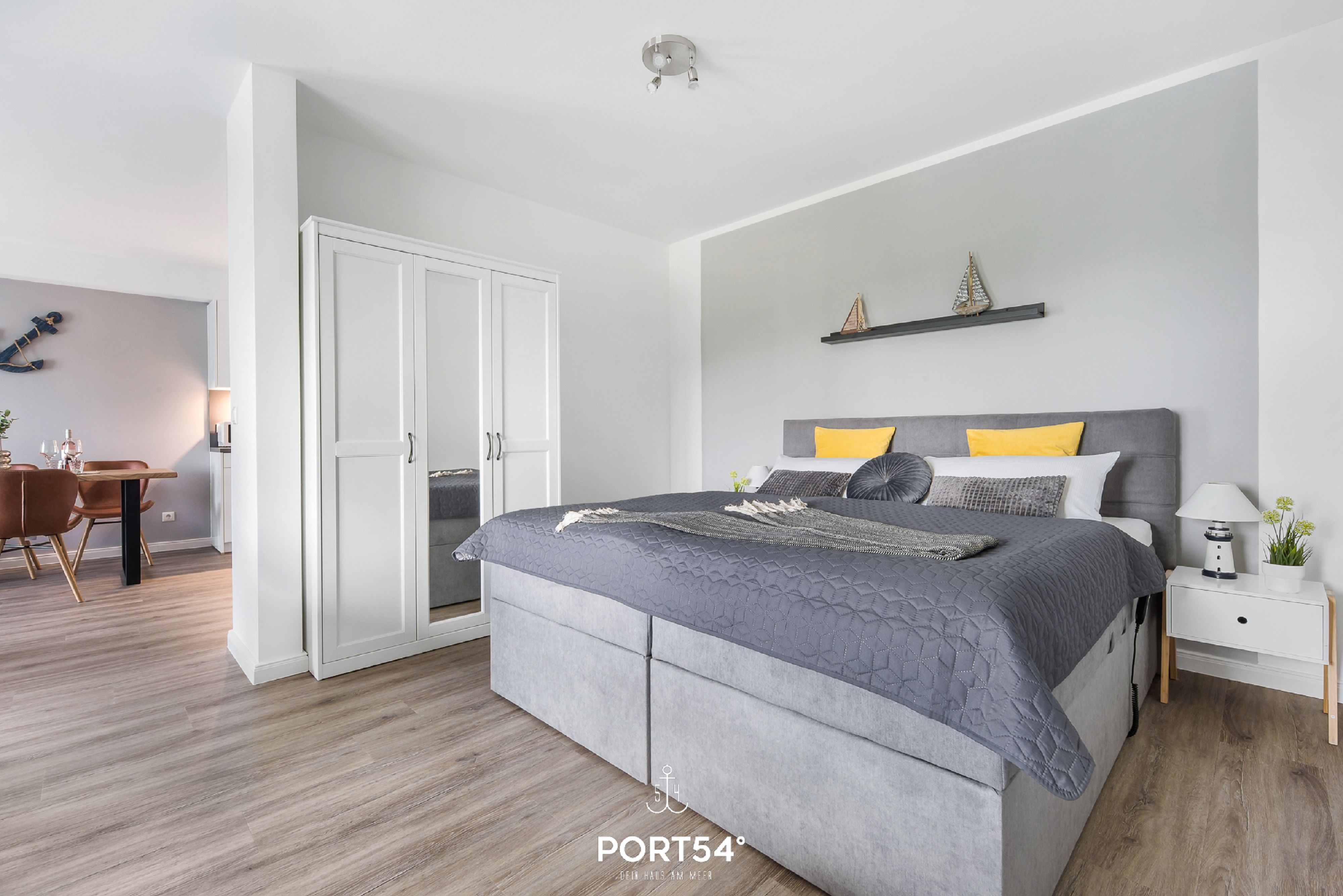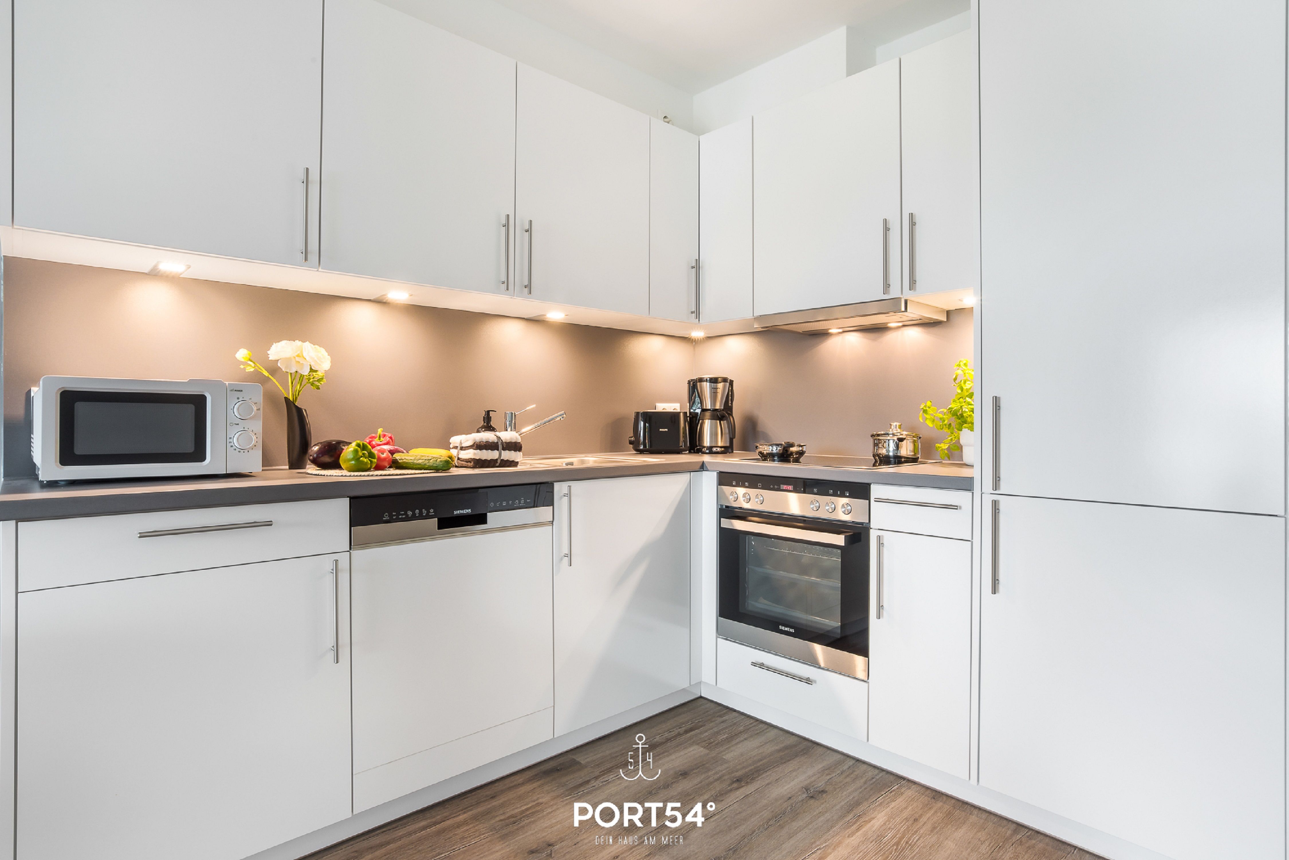 Herzlich willkommen in der modernen Ferienwohnung "Meerzeit"! Die im Neubau gelegene Wohnung bietet auf großzügigen 65m² Platz für 4 Personen und sogar einen vierbeinigen Freund (auf Anfrage). Der Schlafbereich erwartet Sie mit einem luxuriösen Boxspringbett (180x200cm), das Ihnen traumhafte Nächte verspricht. Zusätzlich stehen auf dem gemütlichen Schlafsofa (140x200cm) zwei weitere Schlafplätze bereit, damit Sie Ihren Urlaub mit Ihren Liebsten in vollen Zügen genießen können. Die vollausgestattete Küche lädt dazu ein, leckere Meisterwerke zu kreieren, die Sie entweder am großzügigen Esstisch oder auf dem Balkon mit Blick durch die Bäume auf das Wasser genießen können. Erleben Sie hier unvergessliche Mahlzeiten unter freiem Himmel, begleitet vom beruhigenden Rauschen der Wellen. Das Badezimmer überzeugt mit einer ebenerdigen Dusche, die für erfrischende Momente sorgt und den perfekten Start in den Tag bietet. Der Balkon, umgeben von Bäumen, gewährt Ihnen Privatsphäre und eine entspannte Atmosphäre, ideal für erholsame Stunden im Freien. Für zusätzlichen Komfort steht Ihnen ein Aufzug zur Verfügung, der Ihnen den Zugang zur Ferienwohnung erleichtert. Ein Stellplatz sichert Ihnen eine bequeme Anreise, und eine Fahrradabstellmöglichkeit ermöglicht es Ihnen, die Umgebung auf zwei Rädern zu erkunden.