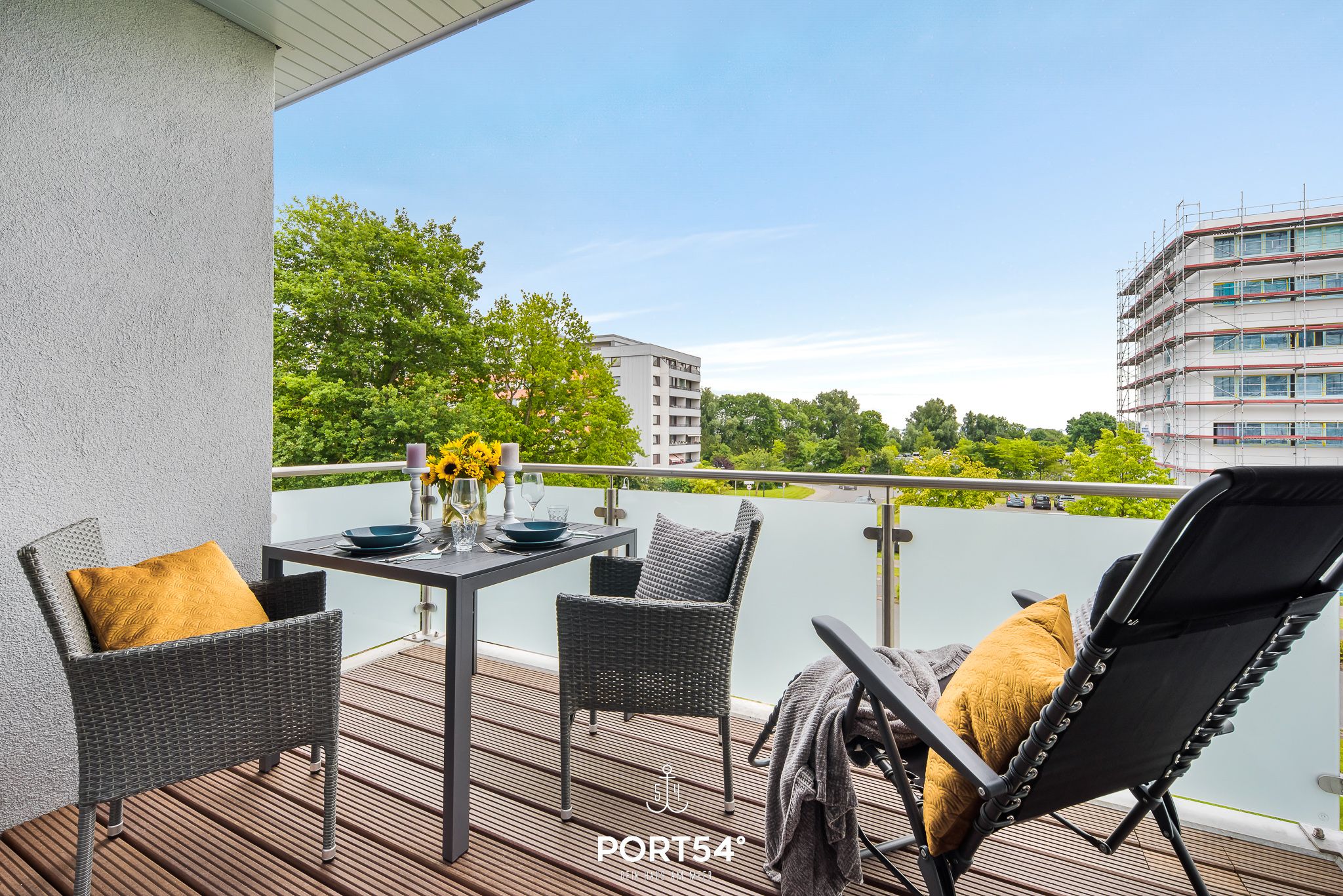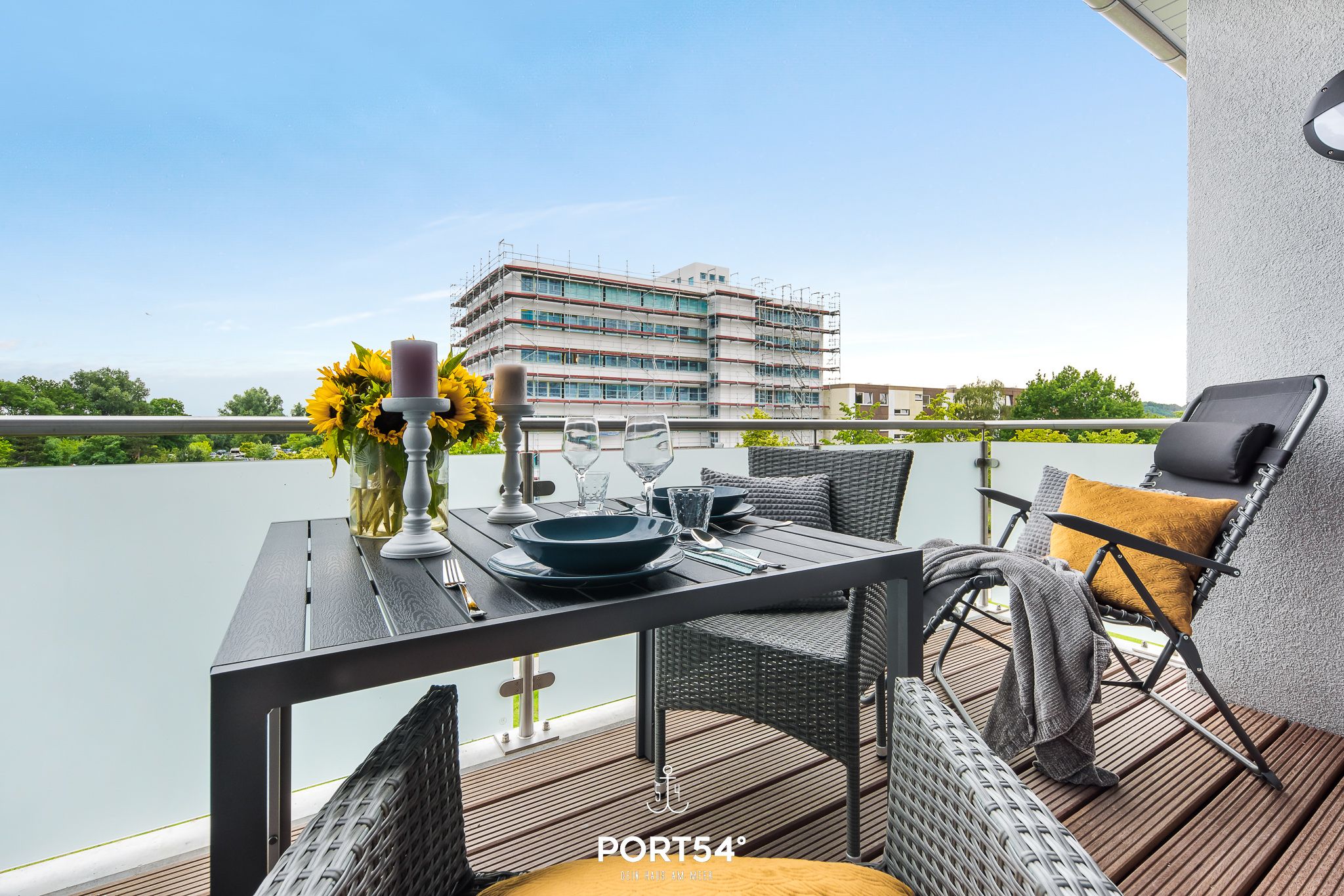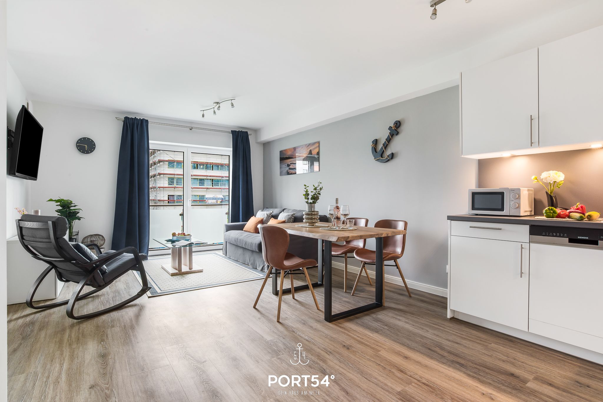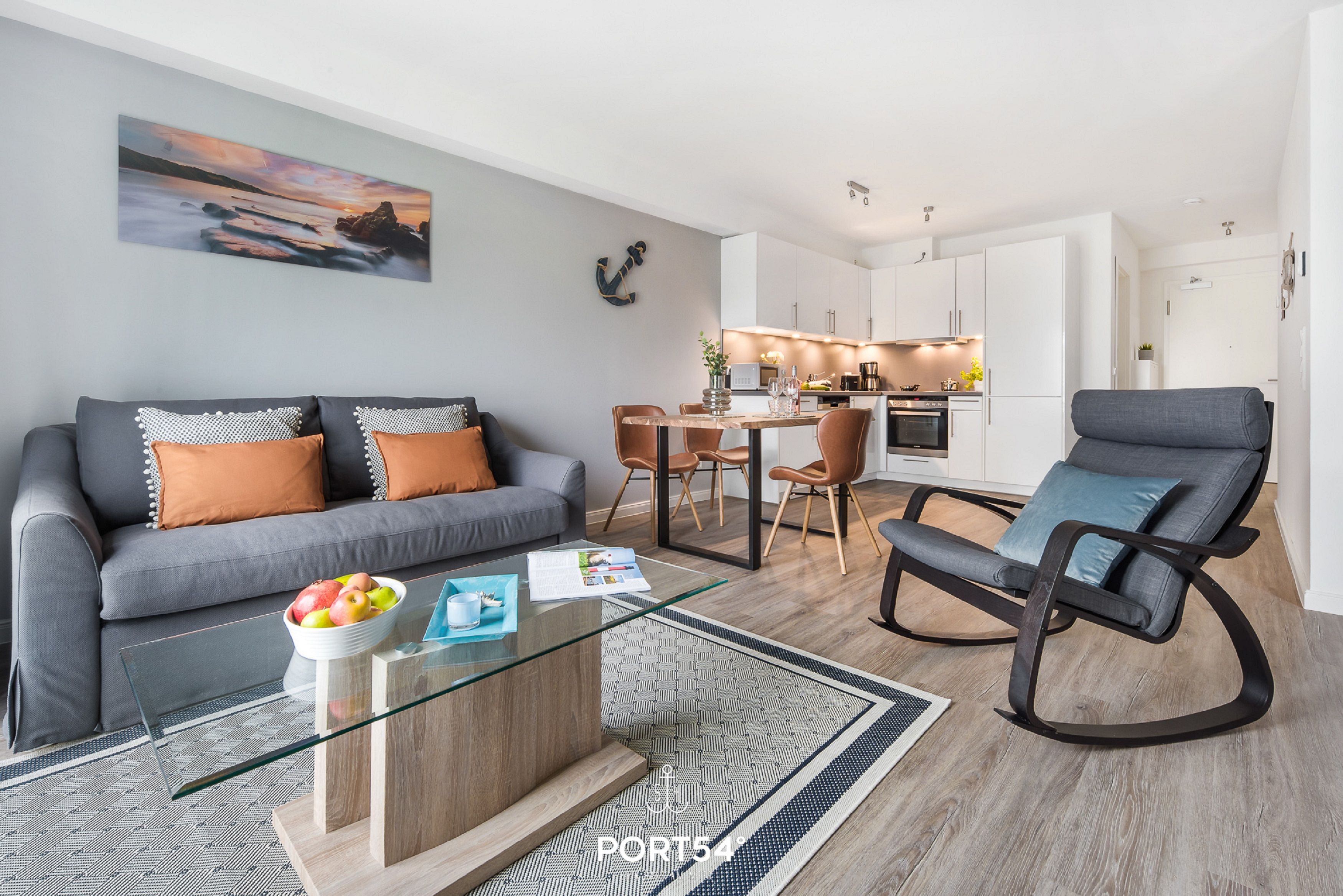 Herzlich willkommen in der modernen Ferienwohnung "Meerzeit"! Die im Neubau gelegene Wohnung bietet auf großzügigen 65m² Platz für 4 Personen und sogar einen vierbeinigen Freund (auf Anfrage). Der Schlafbereich erwartet Sie mit einem luxuriösen Boxspringbett (180x200cm), das Ihnen traumhafte Nächte verspricht. Zusätzlich stehen auf dem gemütlichen Schlafsofa (140x200cm) zwei weitere Schlafplätze bereit, damit Sie Ihren Urlaub mit Ihren Liebsten in vollen Zügen genießen können. Die vollausgestattete Küche lädt dazu ein, leckere Meisterwerke zu kreieren, die Sie entweder am großzügigen Esstisch oder auf dem Balkon mit Blick durch die Bäume auf das Wasser genießen können. Erleben Sie hier unvergessliche Mahlzeiten unter freiem Himmel, begleitet vom beruhigenden Rauschen der Wellen. Das Badezimmer überzeugt mit einer ebenerdigen Dusche, die für erfrischende Momente sorgt und den perfekten Start in den Tag bietet. Der Balkon, umgeben von Bäumen, gewährt Ihnen Privatsphäre und eine entspannte Atmosphäre, ideal für erholsame Stunden im Freien. Für zusätzlichen Komfort steht Ihnen ein Aufzug zur Verfügung, der Ihnen den Zugang zur Ferienwohnung erleichtert. Ein Stellplatz sichert Ihnen eine bequeme Anreise, und eine Fahrradabstellmöglichkeit ermöglicht es Ihnen, die Umgebung auf zwei Rädern zu erkunden.