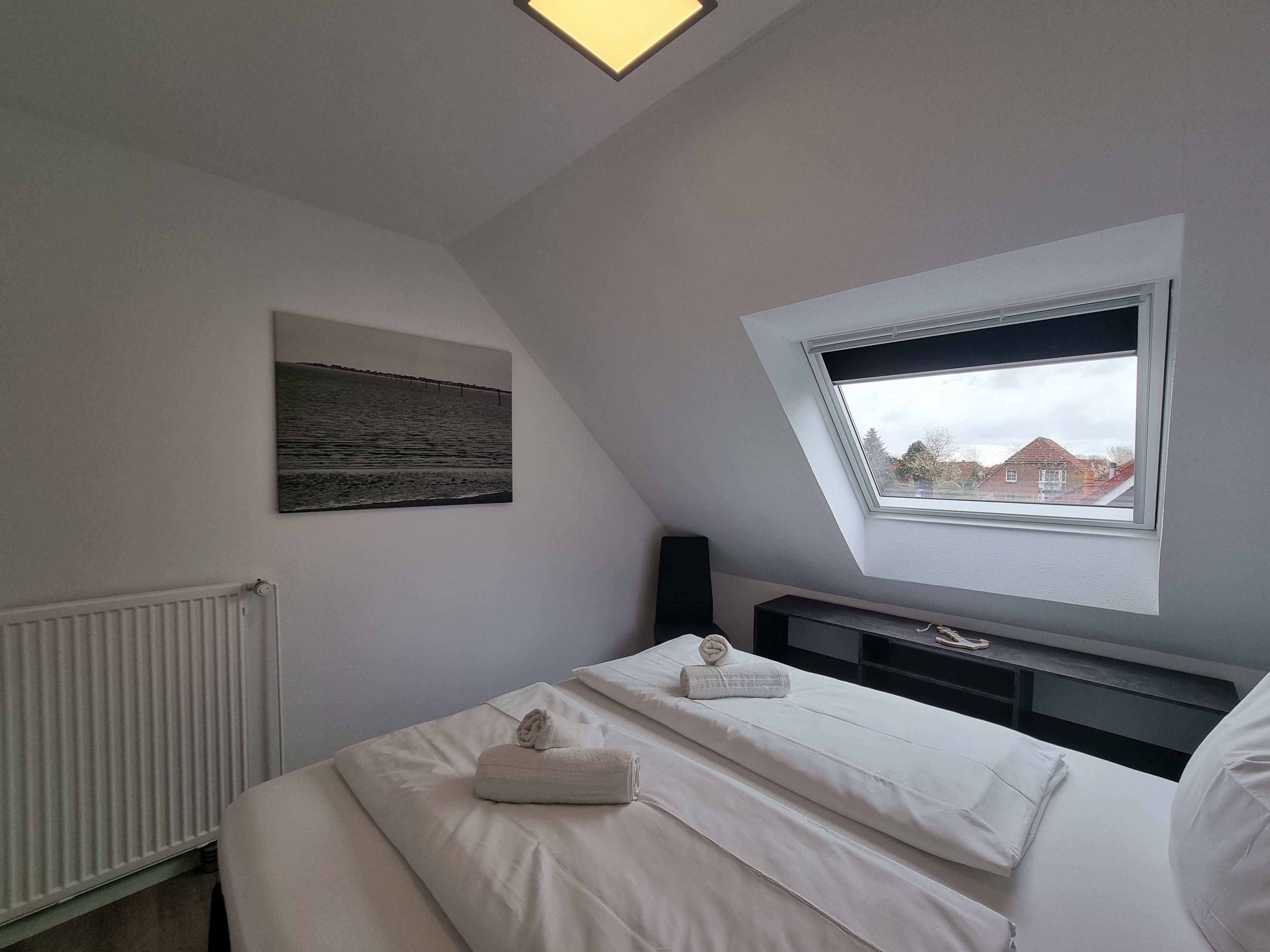 Die Ferienwohnung verfügt über zwei komfortable Schlafzimmer, die für erholsamen Schlaf sorgen, sowie ein Tageslichtbad, das moderne Ausstattung und Helligkeit kombiniert. Bettwäsche und Handtücher können gegen Aufpreis hinzugebucht werden.
