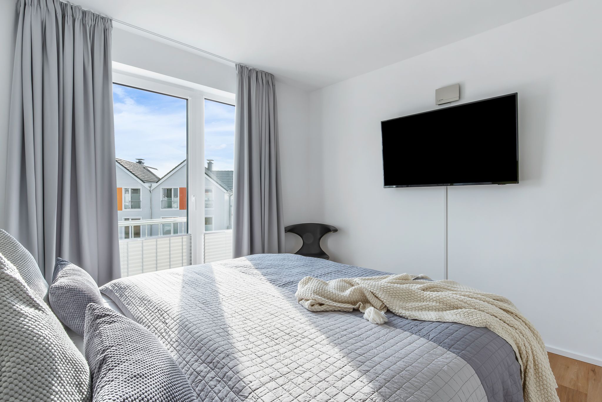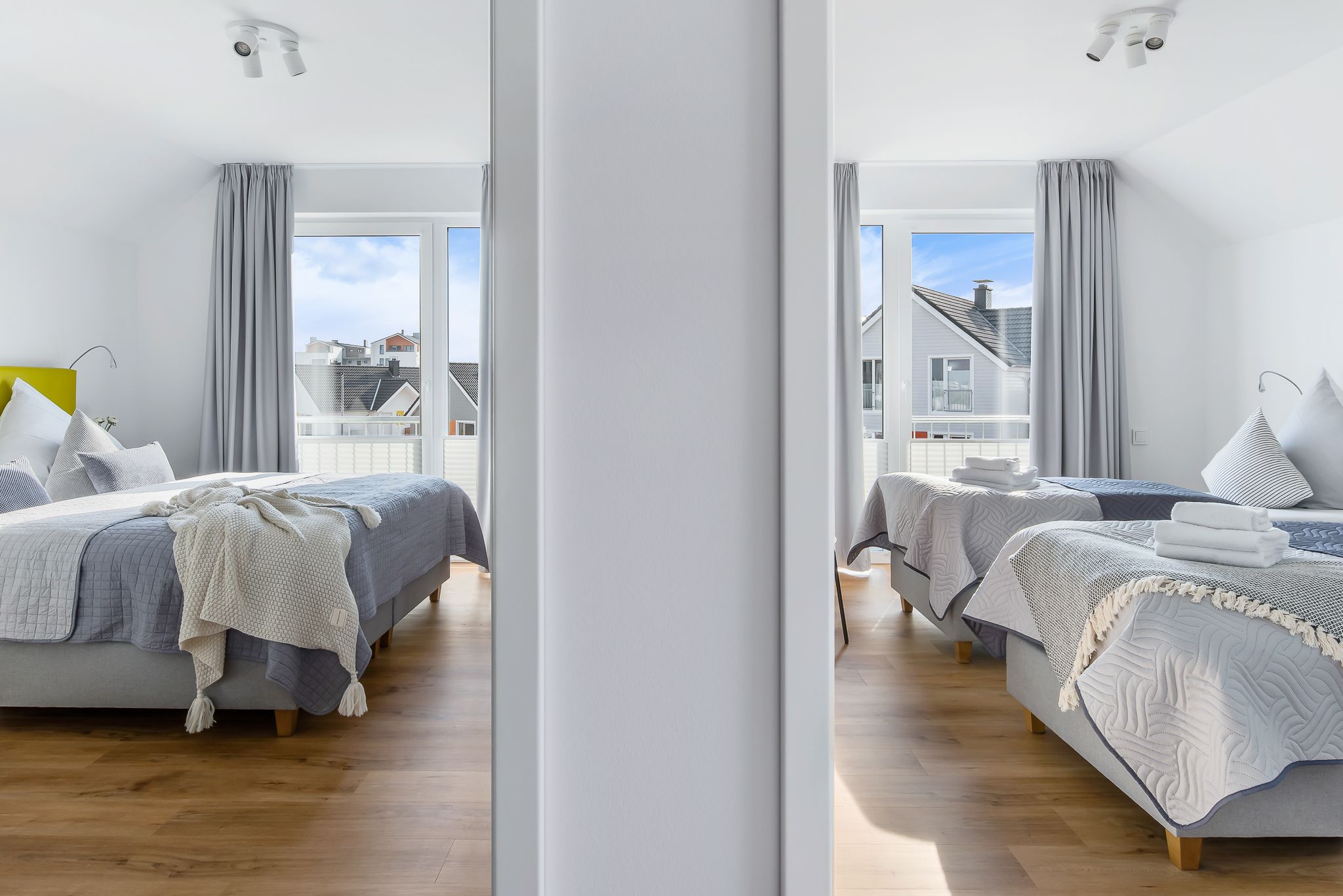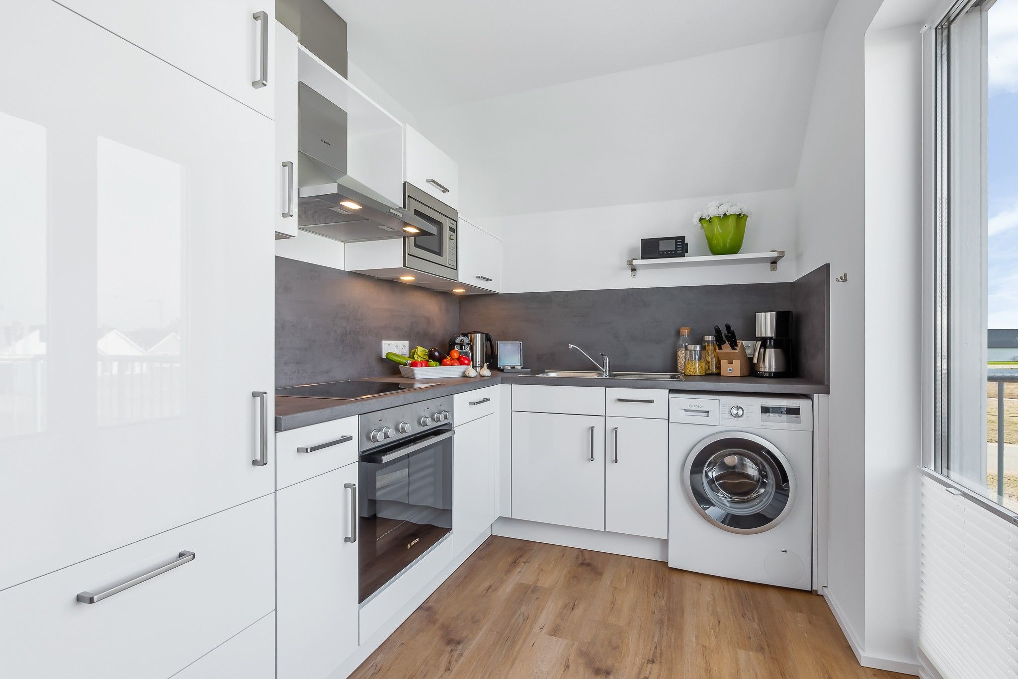 Diese moderne und stilvoll eingerichtete Ferienwohnung bietet alles, was Sie für einen unvergesslichen Aufenthalt an der Ostsee benötigen. Insgesamt bietet die Ferienwohnung "Ocean Breeze" Platz für bis zu 4 Personen. Es gibt zwei stilvoll eingerichtete Schlafzimmer. Eines der Schlafzimmer ist mit einem Boxspring-Doppelbett in einer King-Size Größe (200x200cm) und einem Fernseher ausgestattet, sodass Sie sich hier in die neuesten Filme oder Serien vertiefen können. Das zweite Schlafzimmer bietet Ihnen zwei Boxspring-Einzelbetten (100x200cm). Beide Schlafzimmer verfügen über je einen Kleiderschrank und Verdunkelungsmöglichkeiten. Der offene Wohn- und Essbereich ist das Herzstück der "Ocean Breeze". Der Raum ist großzügig gestaltet und bietet viel Platz für gemeinsame Stunden auf dem Sofa. Der Essbereich lädt zu gemütlichen Mahlzeiten ein, während der angrenzende Wohnbereich mit einem stilvollen Kamin ausgestattet ist. Dieser sorgt für eine behagliche Atmosphäre, besonders an kühleren Tagen, und lädt zum Verweilen ein. Machen Sie es sich hier gemütlich mit einem guten Buch oder bei Ihrem Lieblingsfilm. Angrenzend finden Sie eine moderne, voll ausgestattete Küche, in der Sie Ihre Lieblingsgerichte zubereiten können. Für besondere Entspannungsmomente bietet die "Ocean Breeze" eine Infrarot-Sauna, die Sie nach einem langen Tag an der frischen Luft nutzen können. Zudem steht Ihnen eine luxuriöse Whirlwanne zur Verfügung, in der Sie wunderbar abschalten und die Seele baumeln lassen können. Ebenfalls sind im Bad ein Handtuchheizkörper, ein Kosmetikspiegel und ein Föhn vorhanden. Ein weiteres Highlight der "Ocean Breeze" ist der Süd-Balkon, auf dem Sie die frische Meeresluft und die Aussicht auf das Hafenbecken genießen können. Ob bei einem Kaffee am Morgen oder einem Glas Wein am Abend - der Balkon bietet den idealen Platz, um die Natur zu genießen und die Gedanken schweifen zu lassen. Für die Kleinen sind ein Kinderreisebett, ein Hochstuhl, ein Kindertritthocker und ein Töpfchen in der Wohnung. Ihr PKW findet bequem Platz auf dem hauseigenem Stellplatz. Die Ferienwohnung in Olpenitz ist der perfekte Rückzugsort für alle, die Komfort, Entspannung und eine traumhafte Lage suchen. Hier können Sie den Alltag hinter sich lassen und in stilvollem Ambiente neue Kraft tanken.