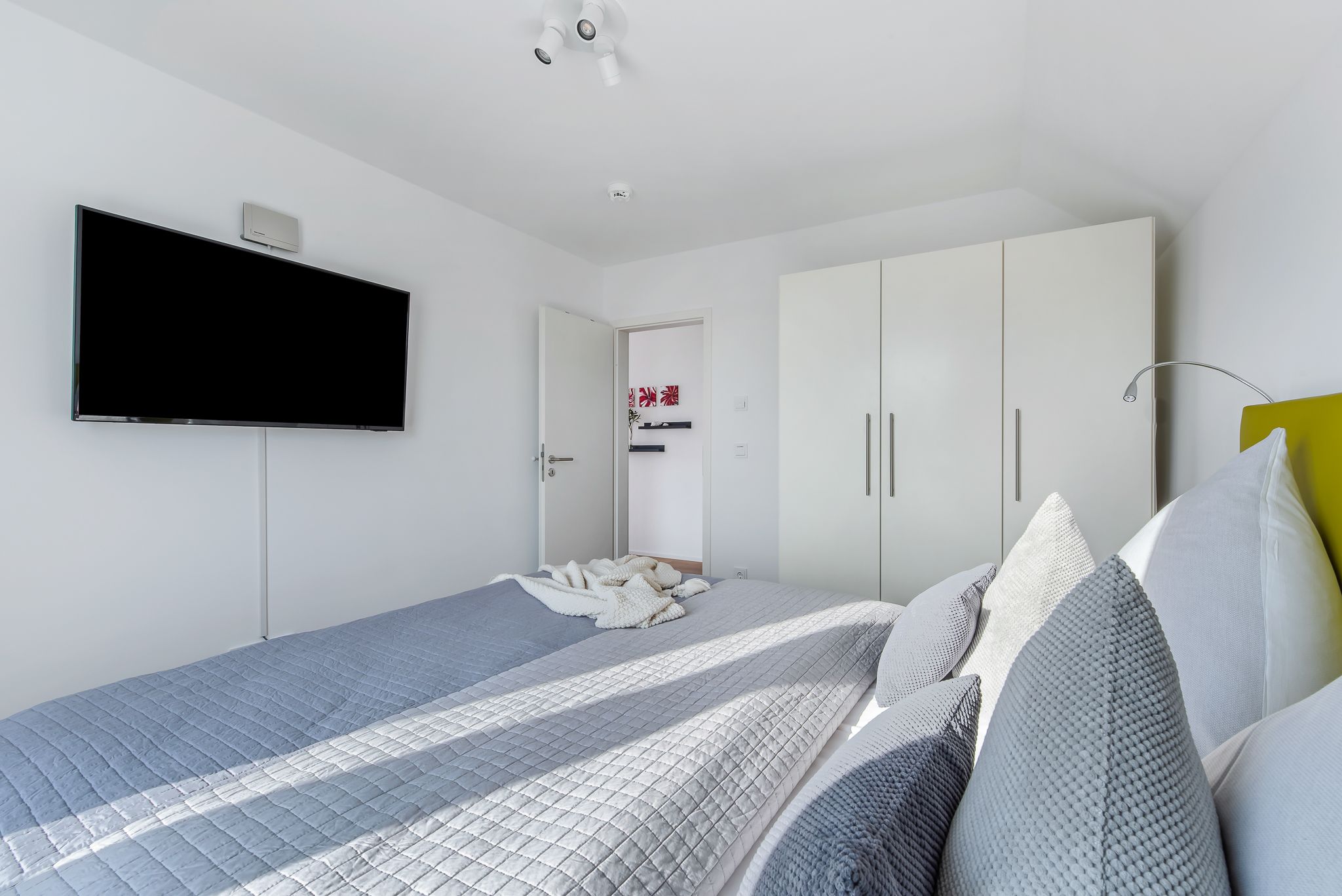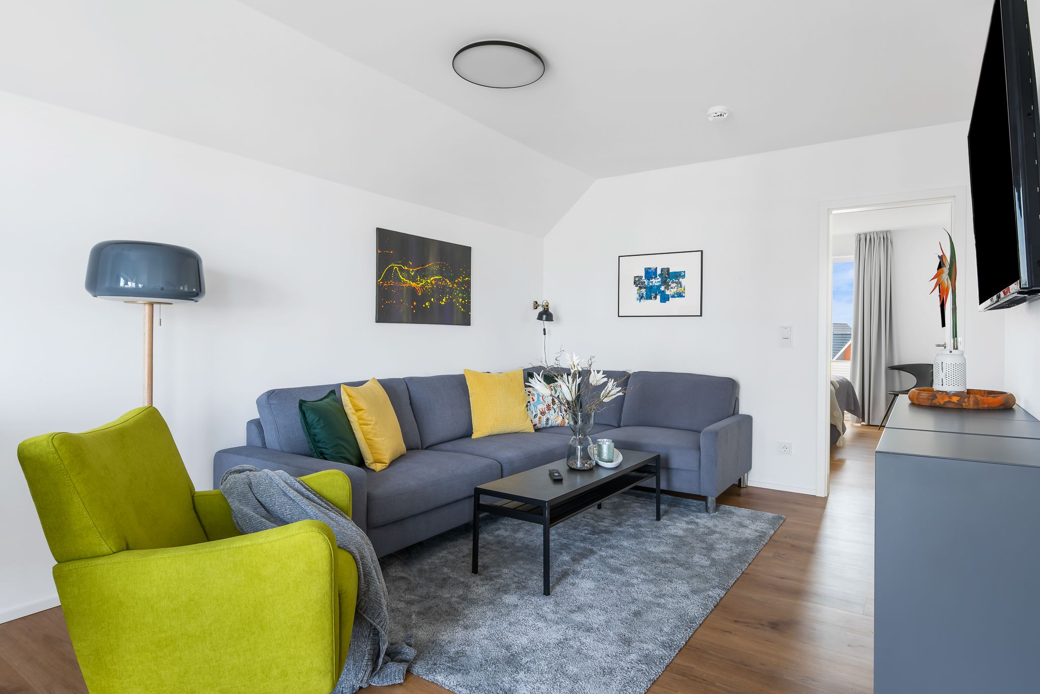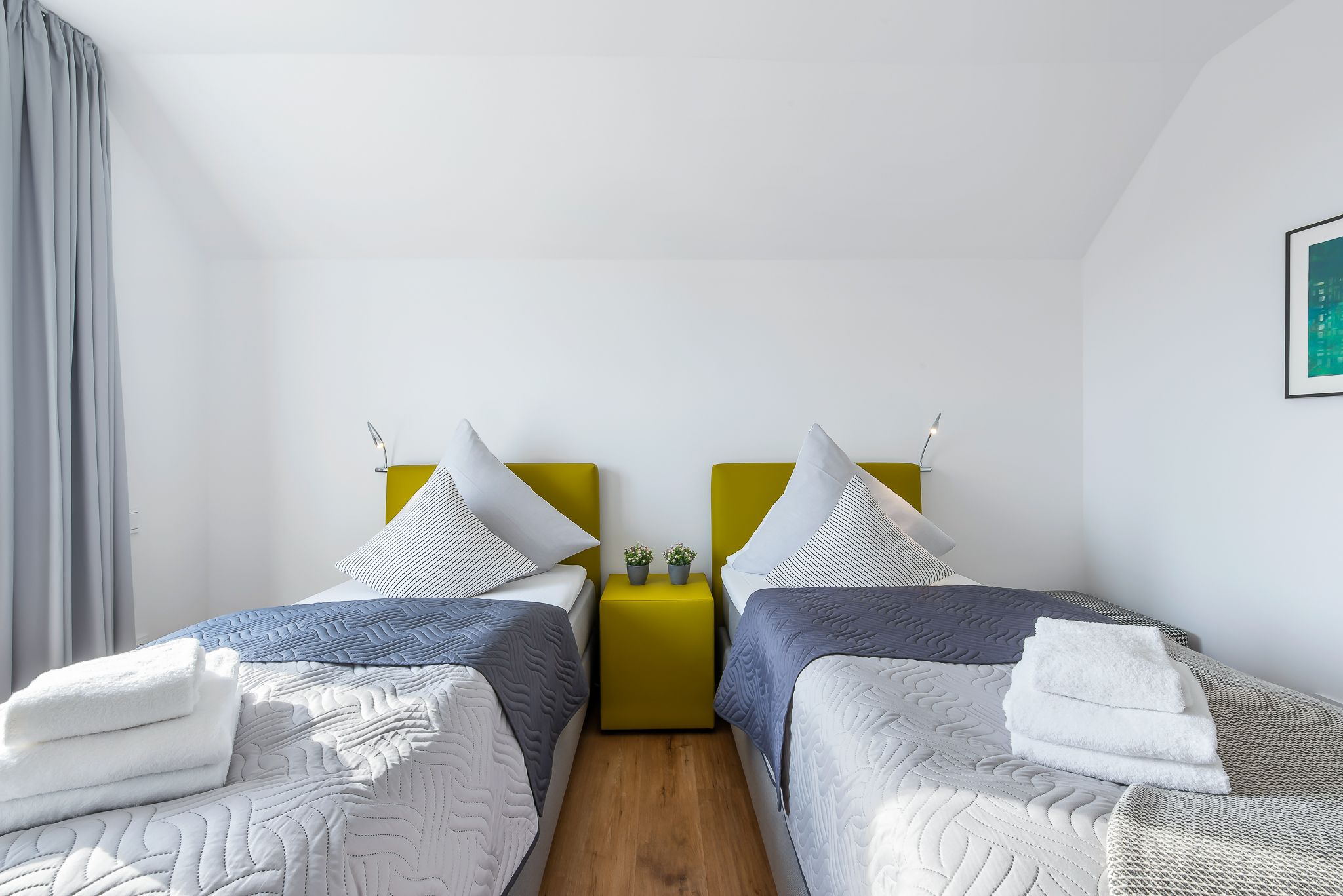 Diese moderne und stilvoll eingerichtete Ferienwohnung bietet alles, was Sie für einen unvergesslichen Aufenthalt an der Ostsee benötigen. Insgesamt bietet die Ferienwohnung "Ocean Breeze" Platz für bis zu 4 Personen. Es gibt zwei stilvoll eingerichtete Schlafzimmer. Eines der Schlafzimmer ist mit einem Boxspring-Doppelbett in einer King-Size Größe (200x200cm) und einem Fernseher ausgestattet, sodass Sie sich hier in die neuesten Filme oder Serien vertiefen können. Das zweite Schlafzimmer bietet Ihnen zwei Boxspring-Einzelbetten (100x200cm). Beide Schlafzimmer verfügen über je einen Kleiderschrank und Verdunkelungsmöglichkeiten. Der offene Wohn- und Essbereich ist das Herzstück der "Ocean Breeze". Der Raum ist großzügig gestaltet und bietet viel Platz für gemeinsame Stunden auf dem Sofa. Der Essbereich lädt zu gemütlichen Mahlzeiten ein, während der angrenzende Wohnbereich mit einem stilvollen Kamin ausgestattet ist. Dieser sorgt für eine behagliche Atmosphäre, besonders an kühleren Tagen, und lädt zum Verweilen ein. Machen Sie es sich hier gemütlich mit einem guten Buch oder bei Ihrem Lieblingsfilm. Angrenzend finden Sie eine moderne, voll ausgestattete Küche, in der Sie Ihre Lieblingsgerichte zubereiten können. Für besondere Entspannungsmomente bietet die "Ocean Breeze" eine Infrarot-Sauna, die Sie nach einem langen Tag an der frischen Luft nutzen können. Zudem steht Ihnen eine luxuriöse Whirlwanne zur Verfügung, in der Sie wunderbar abschalten und die Seele baumeln lassen können. Ebenfalls sind im Bad ein Handtuchheizkörper, ein Kosmetikspiegel und ein Föhn vorhanden. Ein weiteres Highlight der "Ocean Breeze" ist der Süd-Balkon, auf dem Sie die frische Meeresluft und die Aussicht auf das Hafenbecken genießen können. Ob bei einem Kaffee am Morgen oder einem Glas Wein am Abend - der Balkon bietet den idealen Platz, um die Natur zu genießen und die Gedanken schweifen zu lassen. Für die Kleinen sind ein Kinderreisebett, ein Hochstuhl, ein Kindertritthocker und ein Töpfchen in der Wohnung. Ihr PKW findet bequem Platz auf dem hauseigenem Stellplatz. Die Ferienwohnung in Olpenitz ist der perfekte Rückzugsort für alle, die Komfort, Entspannung und eine traumhafte Lage suchen. Hier können Sie den Alltag hinter sich lassen und in stilvollem Ambiente neue Kraft tanken.