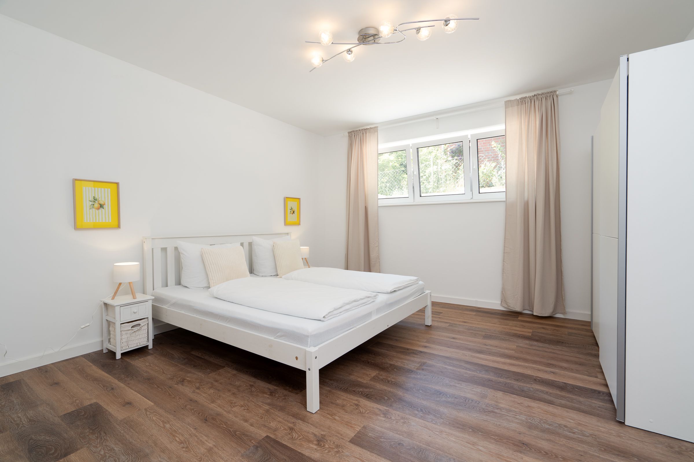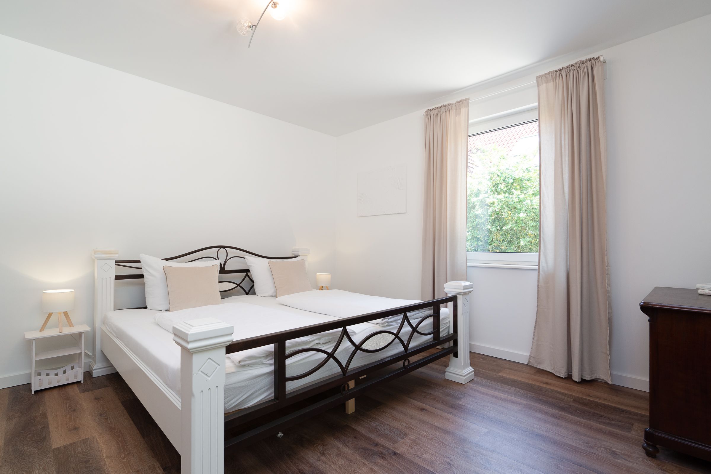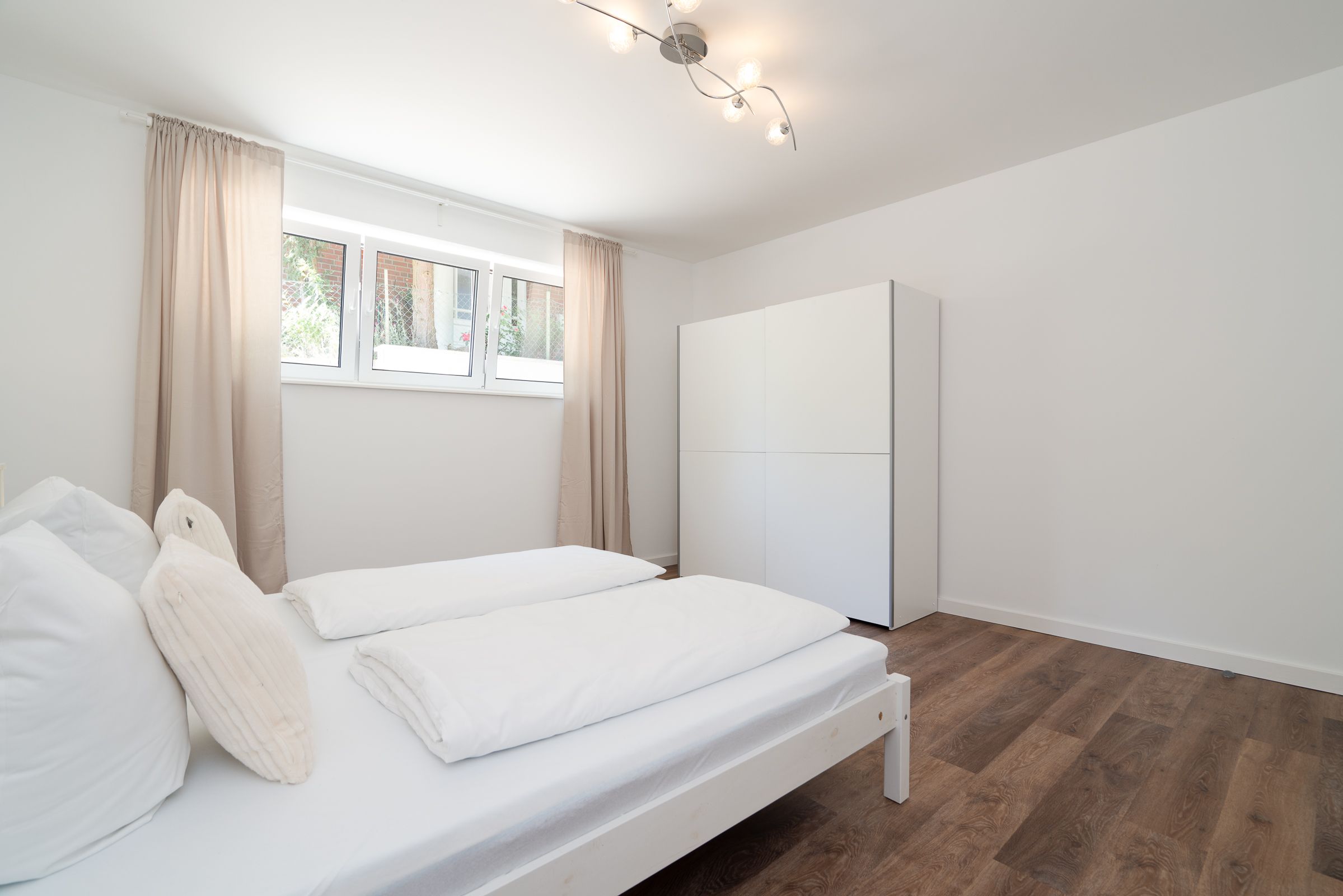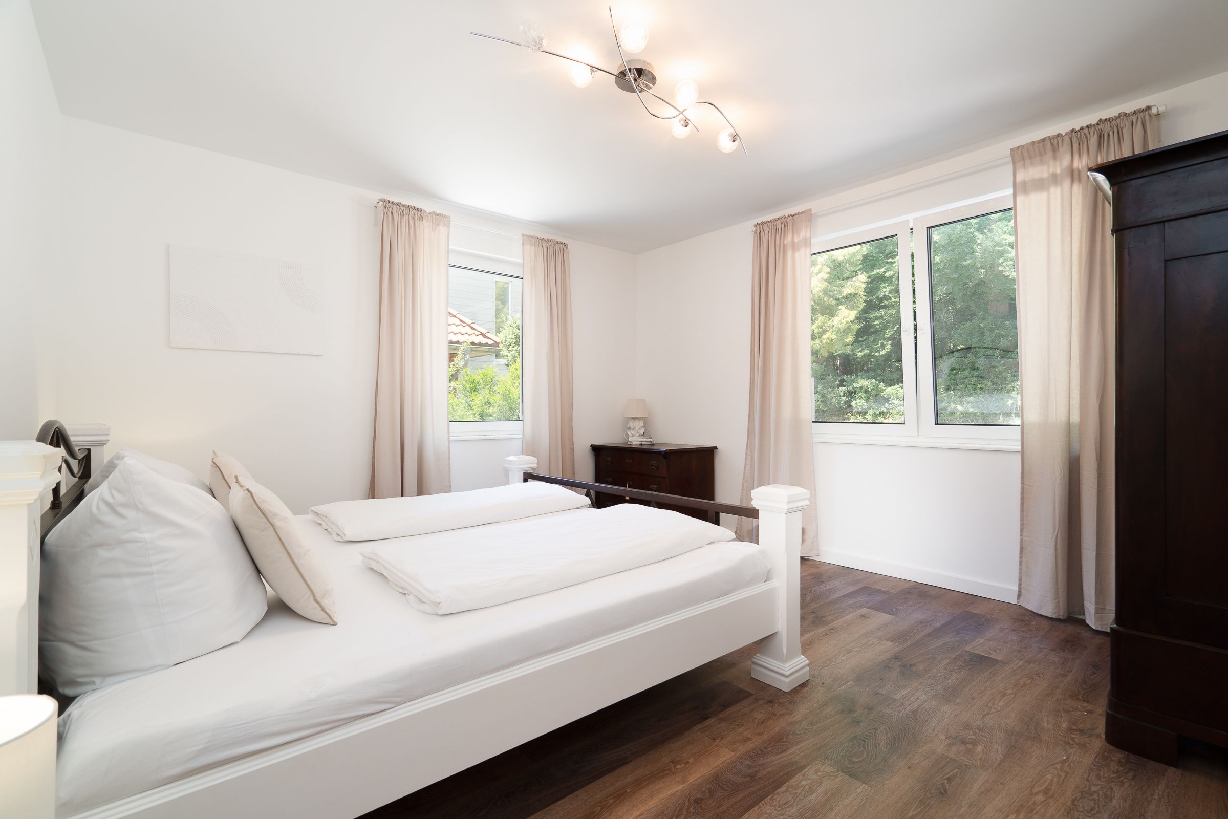 Die vier separaten Schlafzimmer sind mit Vinylboden versehen und bieten ausreichend Stauraum durch Kommoden und Garderoben. Jedes Schlafzimmer verfügt über ein bequemes Doppelbett (jeweils 2x 90 cm x 200 cm). In den beiden modernen Badezimmern finden Sie jeweils eine Dusche, Waschbecken, WC und Kosmetikspiegel. Die Betten sind bei Ihrer Ankunft frisch bezogen, Handtücher in ausreichender Menge vorhanden. Für eine angenehme Wohlfühlatmosphäre sorgt die Fußbodenheizung im gesamten Haus. Für die Pflege Ihrer Kleidung stehen Bügeleisen, Bügelbrett, Waschmaschine zur Eigennutzung sowie ein Wäscheständer bereit.