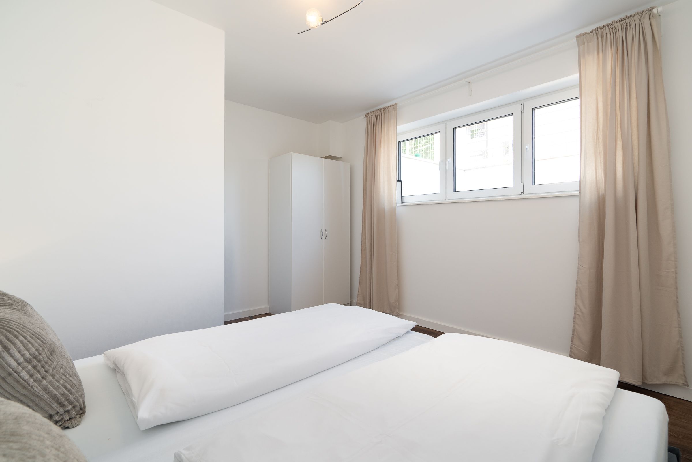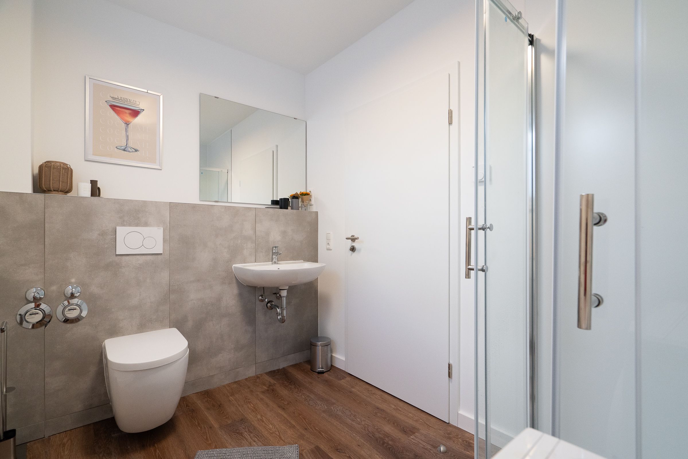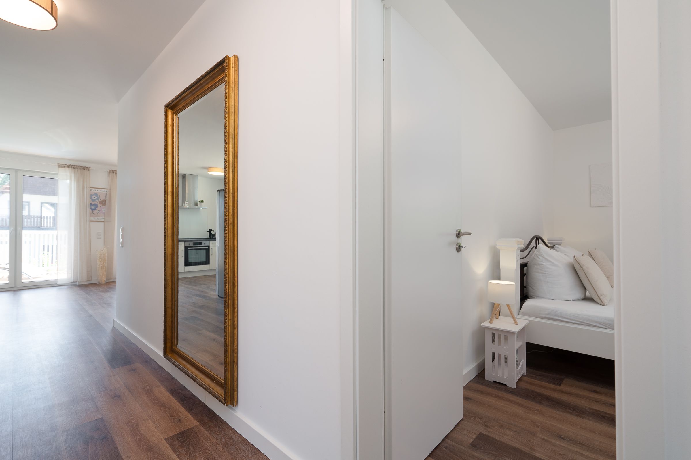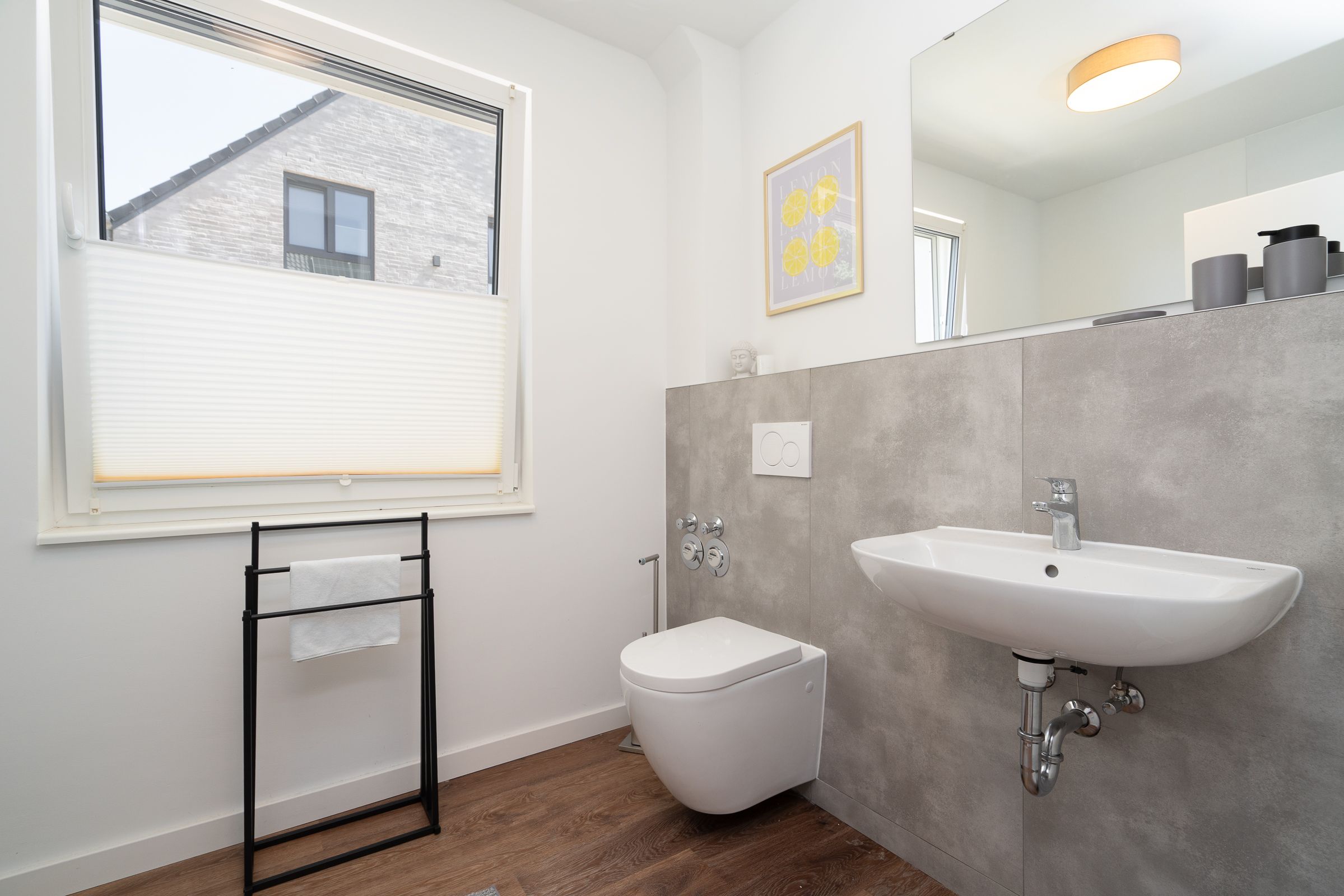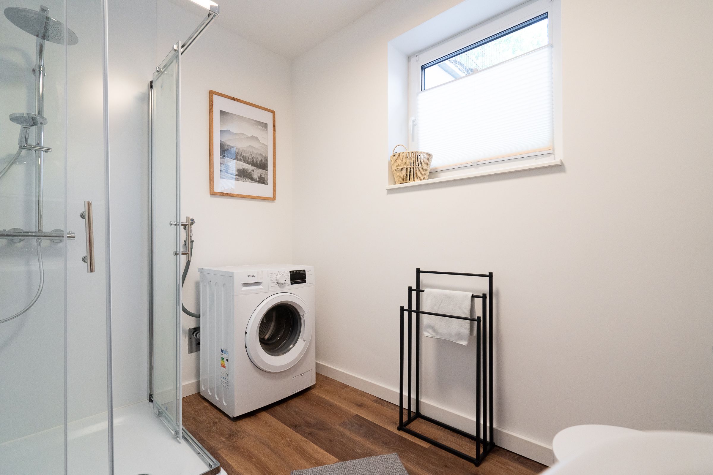 Die vier separaten Schlafzimmer sind mit Vinylboden versehen und bieten ausreichend Stauraum durch Kommoden und Garderoben. Jedes Schlafzimmer verfügt über ein bequemes Doppelbett (jeweils 2x 90 cm x 200 cm). In den beiden modernen Badezimmern finden Sie jeweils eine Dusche, Waschbecken, WC und Kosmetikspiegel. Die Betten sind bei Ihrer Ankunft frisch bezogen, Handtücher in ausreichender Menge vorhanden. Für eine angenehme Wohlfühlatmosphäre sorgt die Fußbodenheizung im gesamten Haus. Für die Pflege Ihrer Kleidung stehen Bügeleisen, Bügelbrett, Waschmaschine zur Eigennutzung sowie ein Wäscheständer bereit.