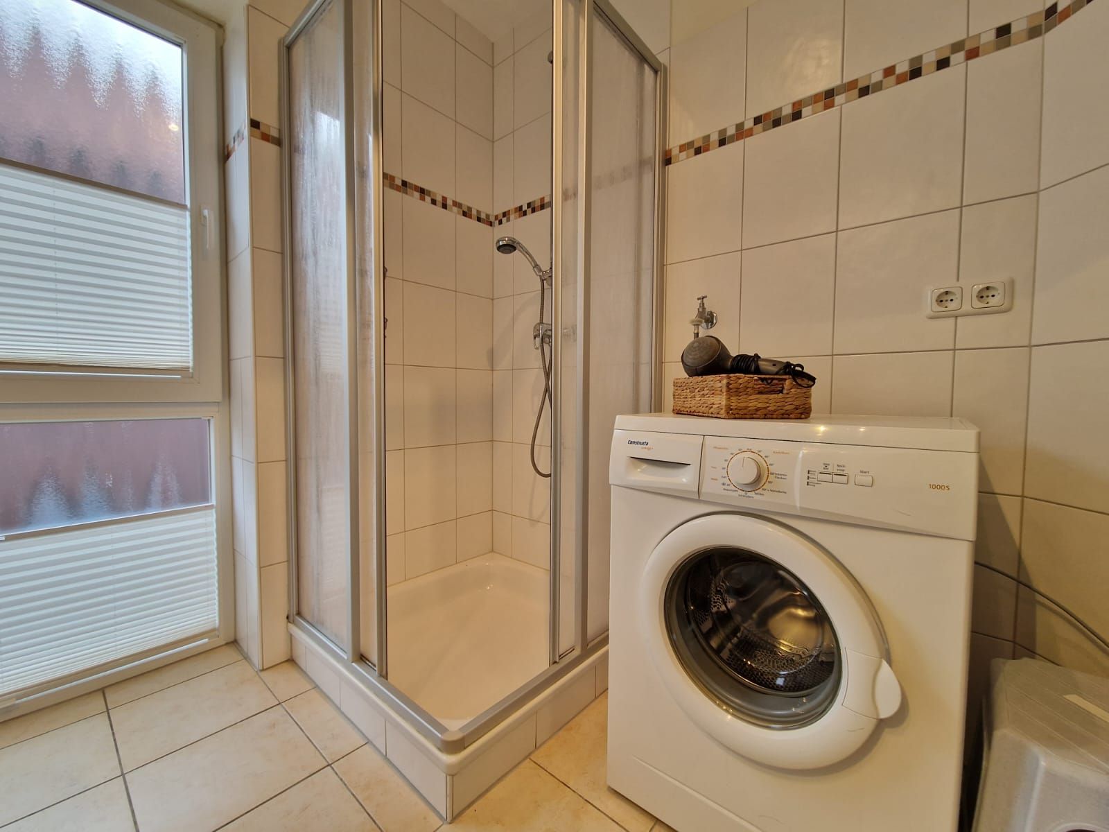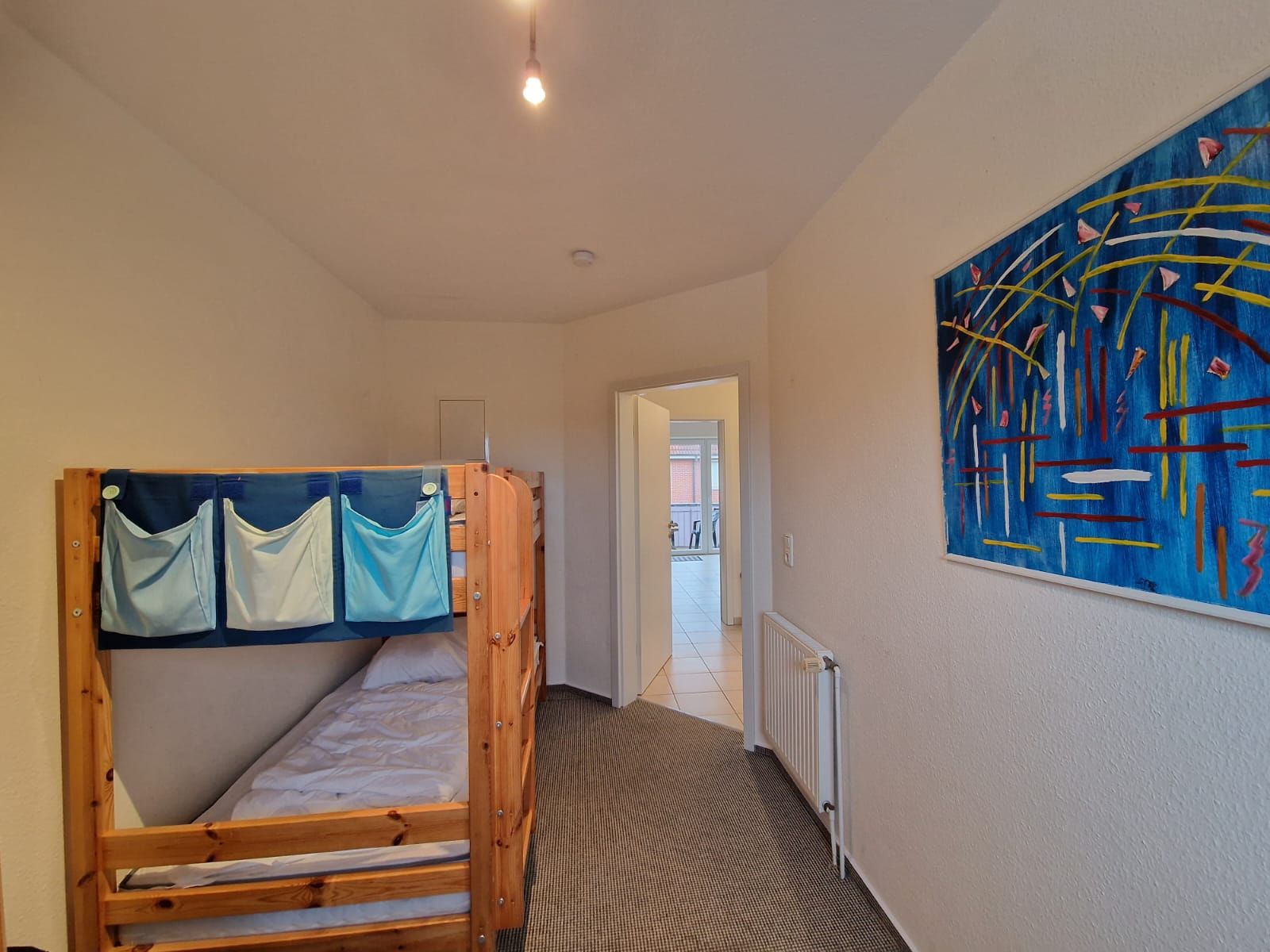 Fliesenboden in Wohn- und Küchenbereich, Teppichboden in den Schlafräumen