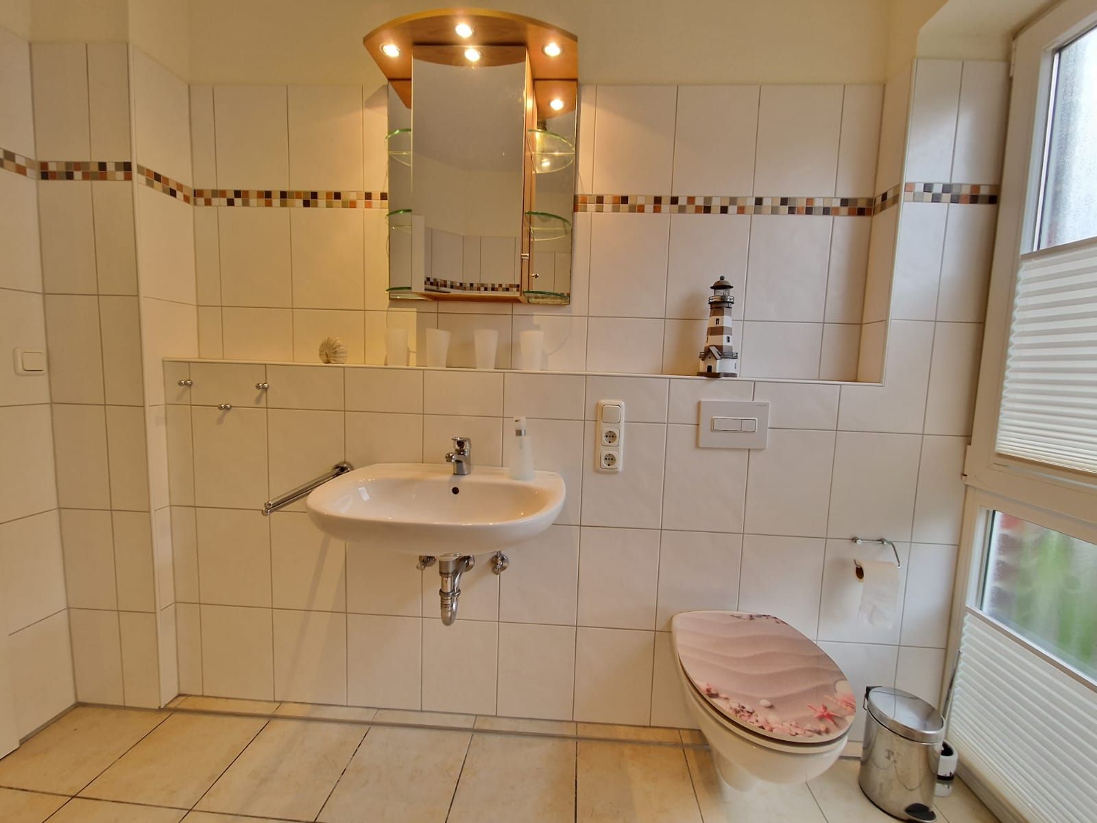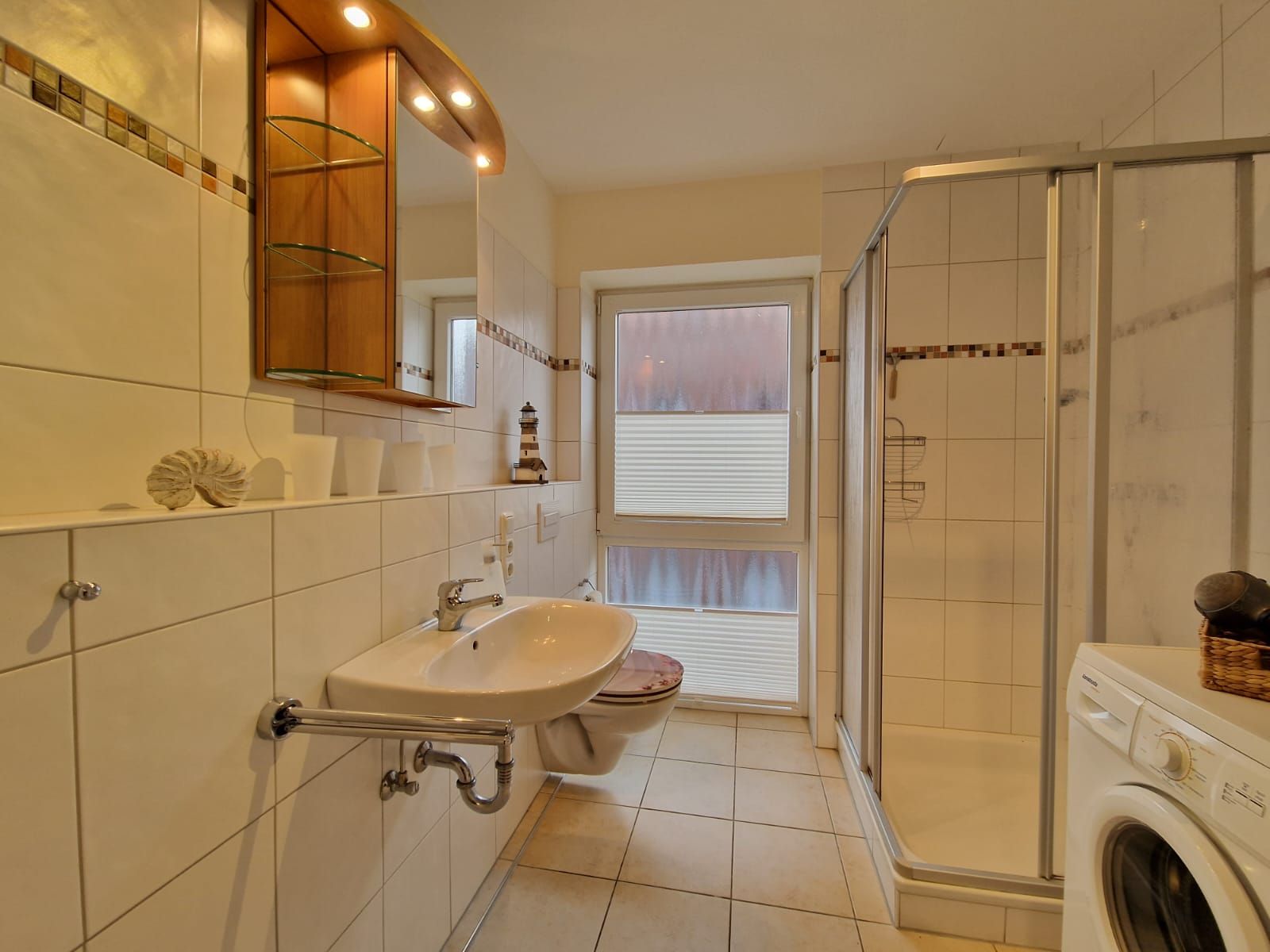 Zusätzlich bietet die Schlafcouch im Wohnzimmer Schlafmöglichkeiten für 2 weitere Personen. Das Badezimmer ist modern gestaltet und verfügt über Dusche und WC.