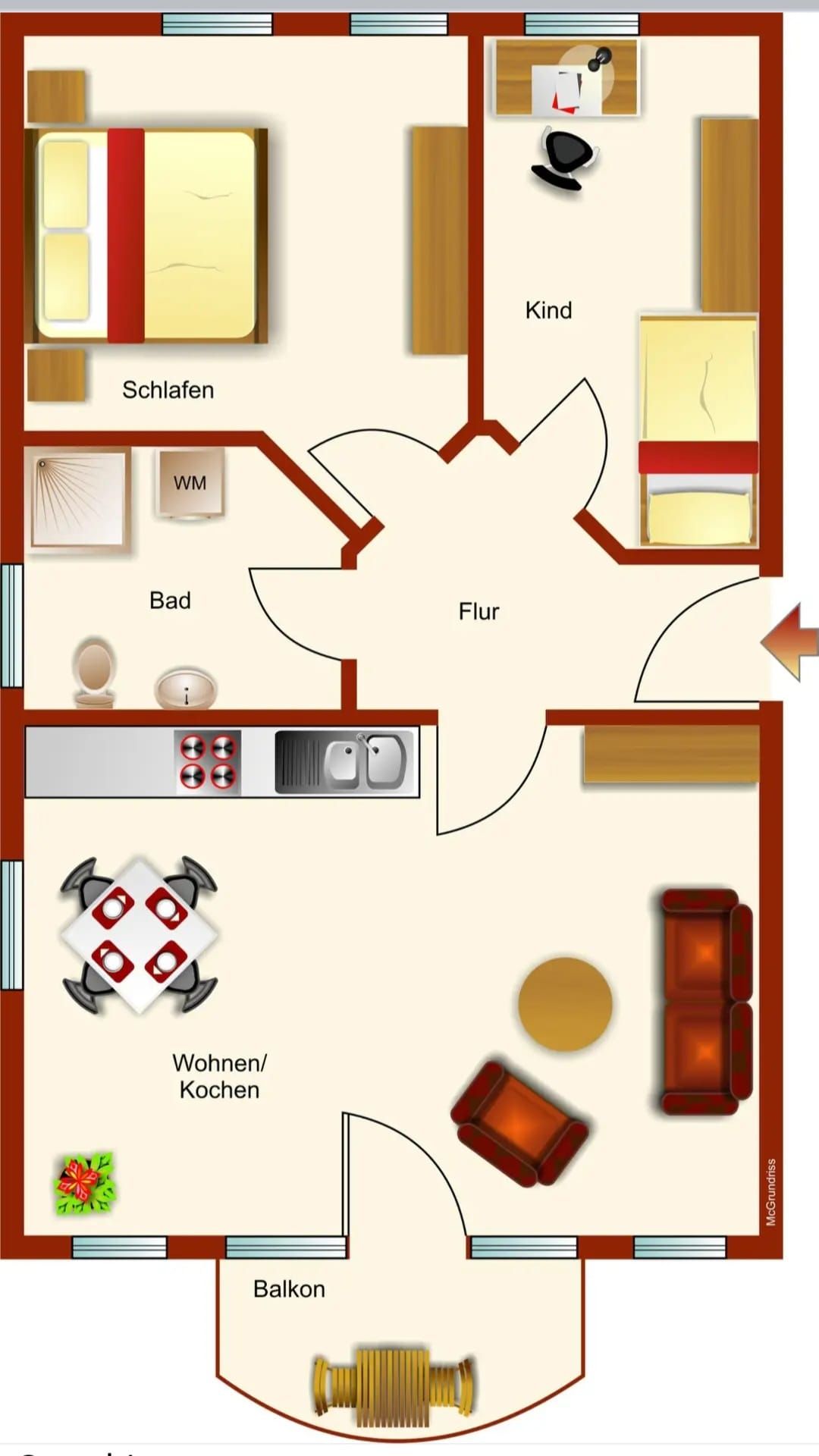 Ein Highlight der Wohnung ist der Balkon mit Gartenmöbeln, auf dem Sie die frische Nordseeluft genießen können.