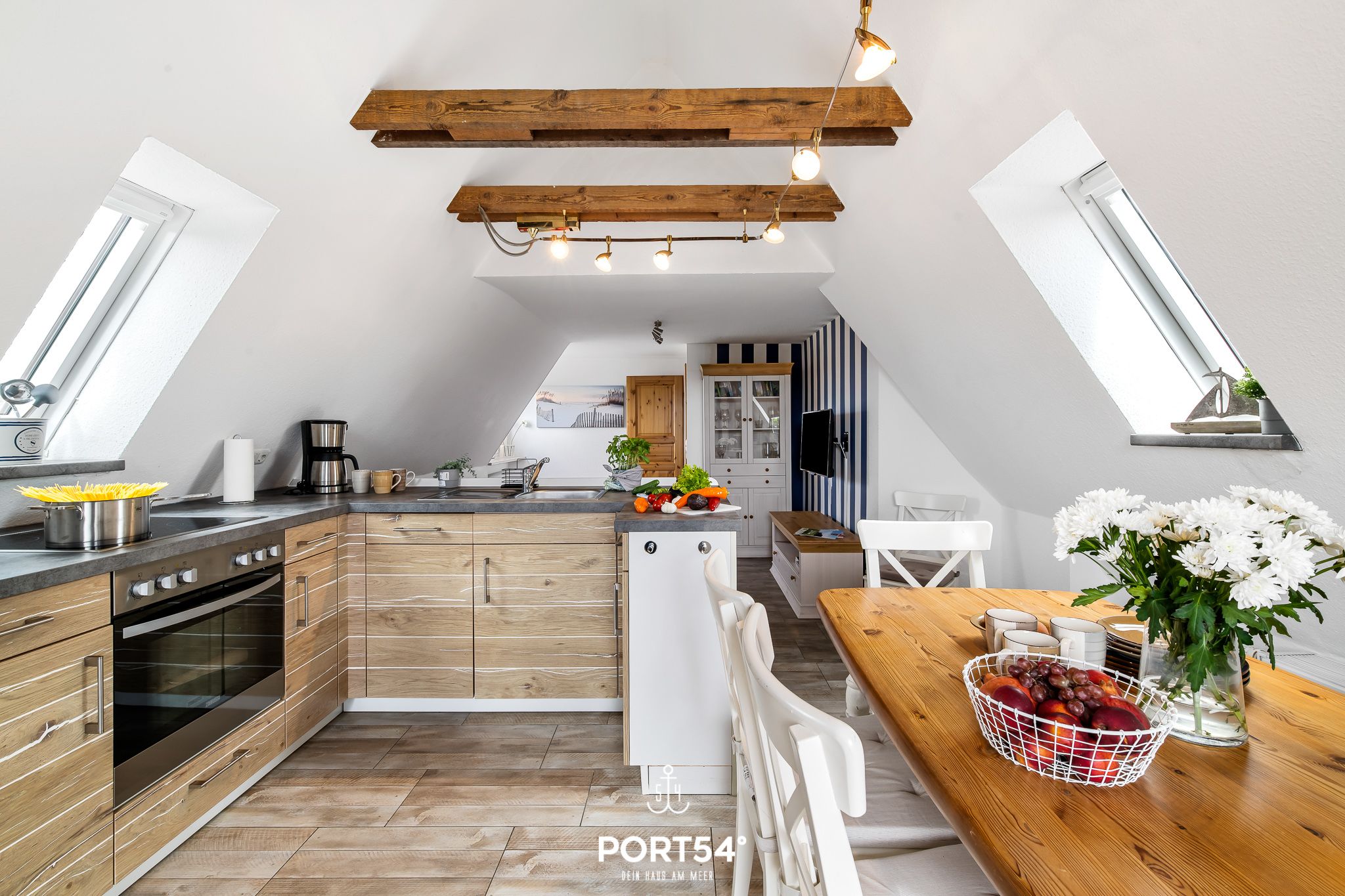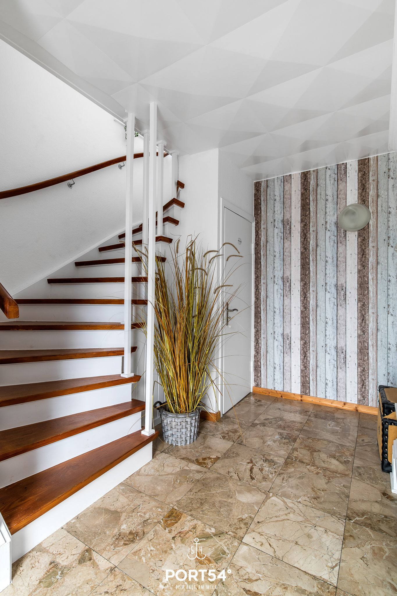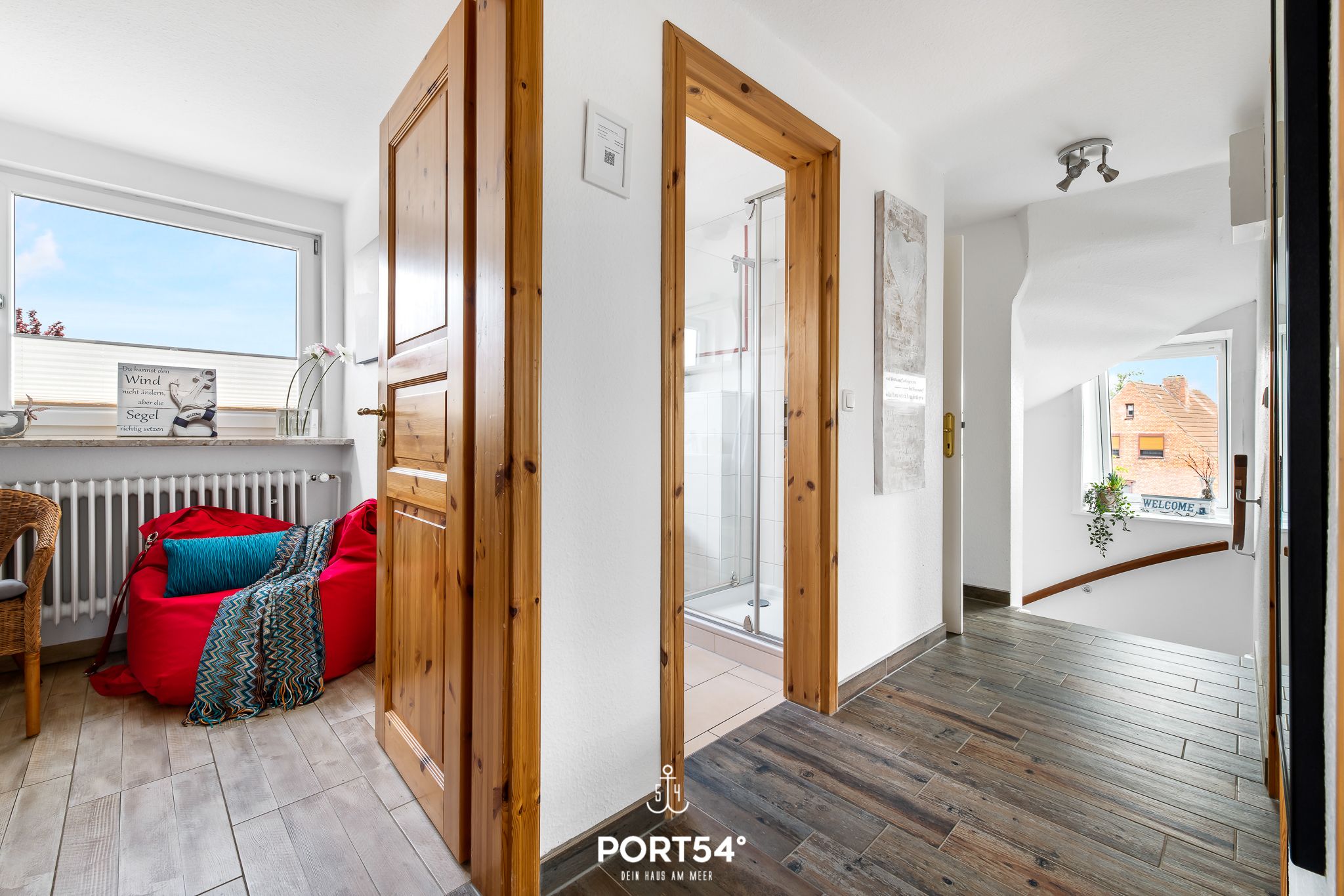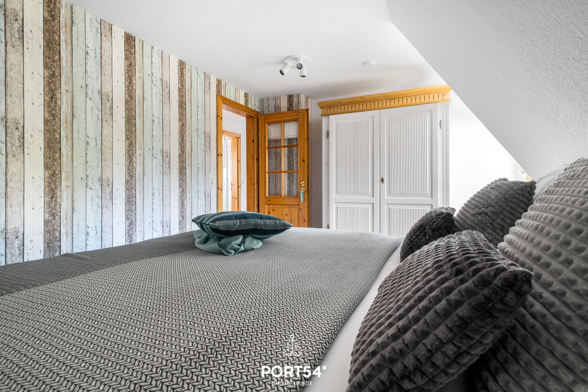 Die Wohnung "Snorre" bietet mit seinen 95m² über 2 Ebenen viel Platz für bis zu 6 Personen und 1 Kleinkind. Sie gelangen durch den eigenen Eingang mit einen geräumigen Flur, der Platz für Kinderwagen o.ä. bietet, über eine Treppe in den 1. Stock. Die 3 geschmackvoll eingerichteten Schlafzimmer (zwei davon mit Doppelbett und das andere mit 2 Einzelbetten) verfügen jeweils über einen Schrank und ein Nachttischchen. Die offene Balkenlage im Wohn-/Essbereich unterstreicht den Wohlfühlcharakter der Wohnung. Die Wohnküche ist hochwertig und voll ausgestattet. Es gibt sowohl ein Duschbad im Obergeschoss als auch ein Gäste-WC im Erdgeschoss. Selbstverständlich gibt es kostenloses Internet, Flachbild-TV, eine Stereoanlage, eine Spielekonsole (Wii) und eine Spielesammlung. Die Wohnung kann einzeln oder für einen Aufenthalt mit der ganzen Familie oder Freunden (max. 12 Personen + 2 Kleinkinder) auch gemeinsam mit den anderen Wohnungen "Smilla", "Treibhaus" und "Momme" gebucht werden. So kann Geselligkeit und gleichzeitig Unabhängigkeit miteinander optimal vereinbart werden und garantiert entspannte Ferien. Im Keller befindet sich eine Waschmaschine mit Wäscheständer, die von allen Feriengästen genutzt werden kann. Die Wohnung verfügt über 2 Balkone (Süd- und Westausrichtung) mit Bistrotischchen. Parkplätze sind für alle Wohnungen am oder in der Nähe des Hauses vorhanden.