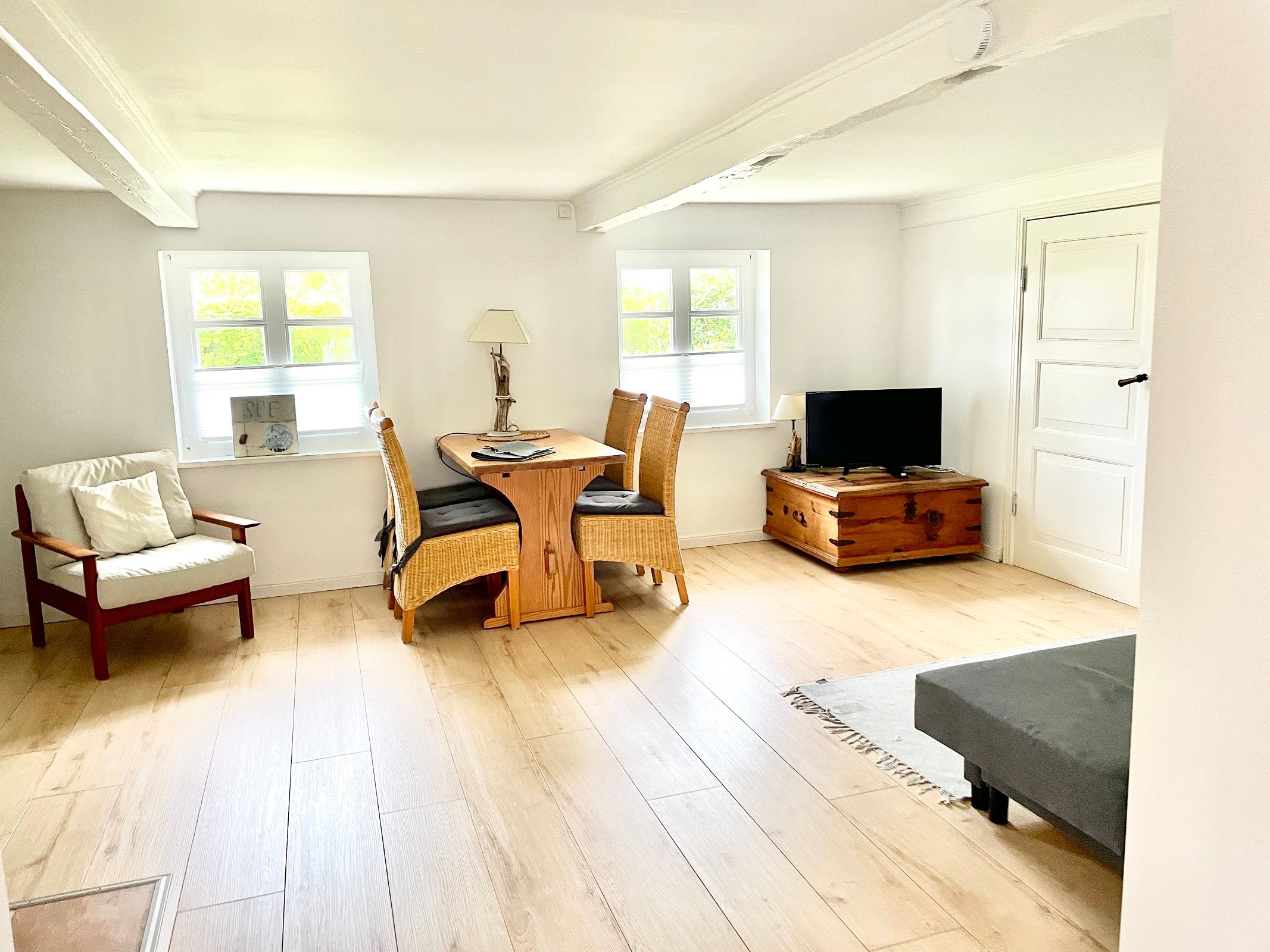 Die schöne Wohnung "Süd" befindet sich in einem von Charme erfüllten ehemaligen Bauernhaus und ist kernsaniert. Sie bietet auf 60m² und mit Platz für bis zu 4 Personen. Das Badezimmer verfügt über eine ebenerdige Dusche und ist mit einem Handtuchheizkörper, einem Kosmetikspiegel und einem Föhn ausgestattet. In der vollausgestatteten Küche kann nach Lust und Laune zusammen gekocht werden. In dem gemütlichen Wohn- und Essbereich bietet das Schlafsofa (160c200cm) eine weitere Schlafmöglichkeit. Sollte das Wetter einmal nicht mitspielen, kann man es sich vor dem Kaminofen gemütlich machen und dem Knistern des Feuers lauschen oder Filme und Serien via Netflix erleben. Das geräumige Schlafzimmer hat ein gemütliches Doppelbett (180x200cm) und einen Kleiderschrank. Für die Kleinen sind ein Kinderreisebett und ein Hochstuhl vorhanden. Ihr Vierbeiner ist ebenfalls herzlich willkommen! Lassen Sie die Kinder mit dem Hund im Garten spielen und lehnen Sie sich zurück und genießen Sie Ihren Urlaub in vollen Zügen. Die Kids werden dank Klettergerüst mit Rutsche, Schaukel und einem Sandkasten bestens beschäftigt sein. Erholen Sie sich in der gemeinschaftlichen finnischen Fasssauna und lassen Sie den Alltag hinter sich bei dem traumhaften Blick auf die Landschaft. Genießen Sie die Ruhe in dem großen Garten! Dieser steht ebenfalls den 3 weiteren Ferienwohnungen des Reetdachhauses zur Verfügung, jedoch sind durch die 2000m² genügend Platz für alle da. Der Garten ist zu 3 Seiten eingezäunt, an der 4. Seite schließt das Grundstück durch einen Knick ab. Ein Stellplatz ist vorhanden.