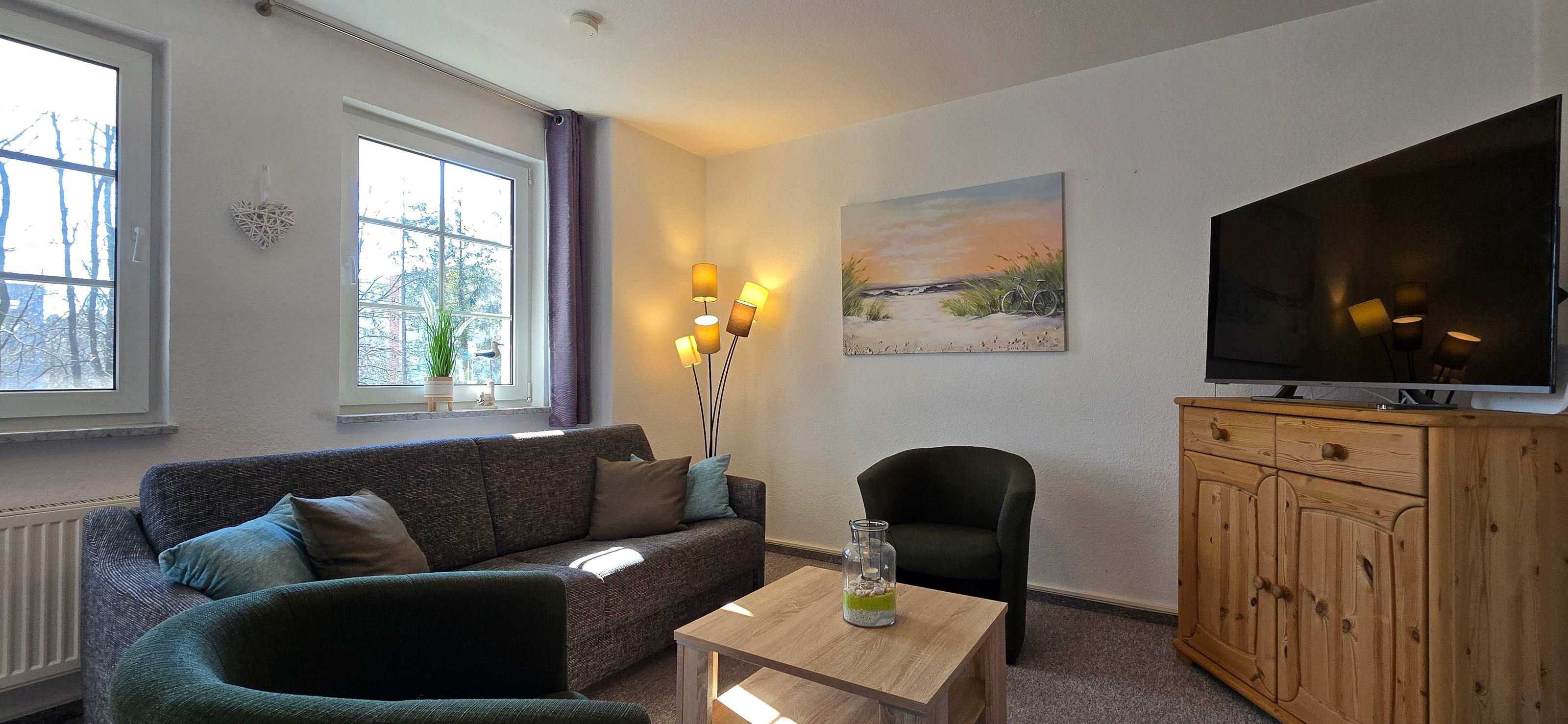 - Wohnzimmer mit Sat-TV, sowie integrierten DVD-Player, Hifi-Anlage mit Radio