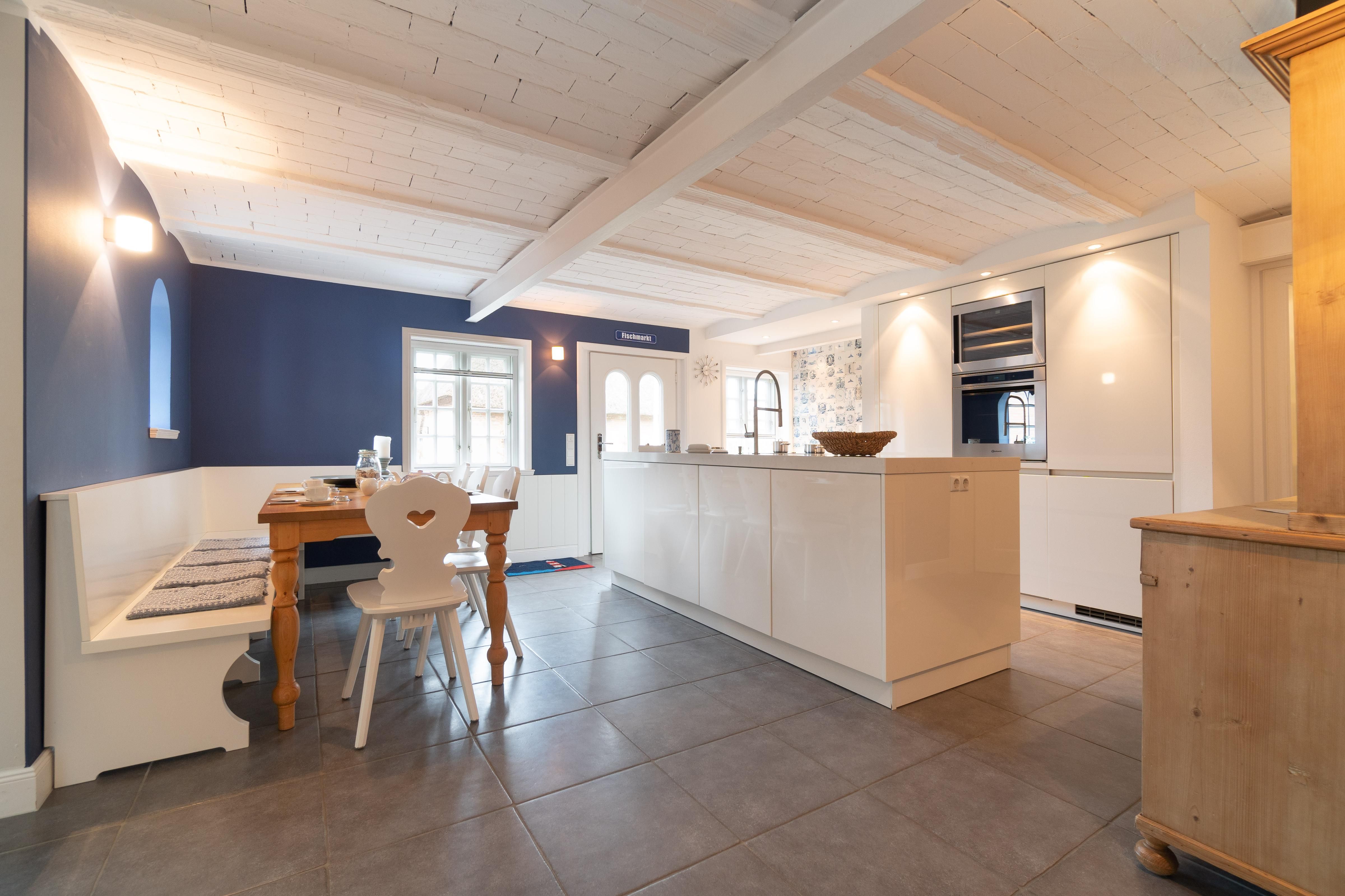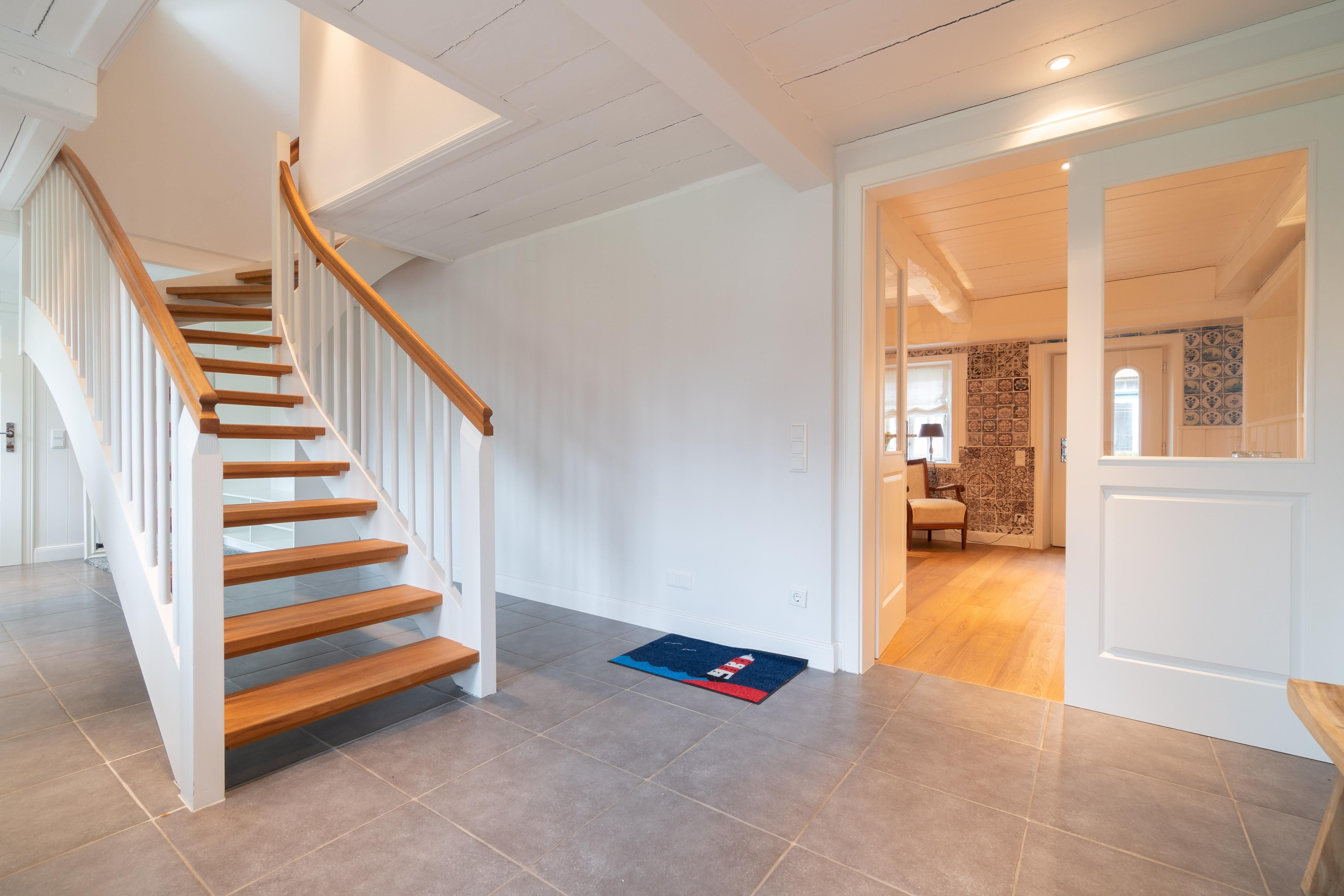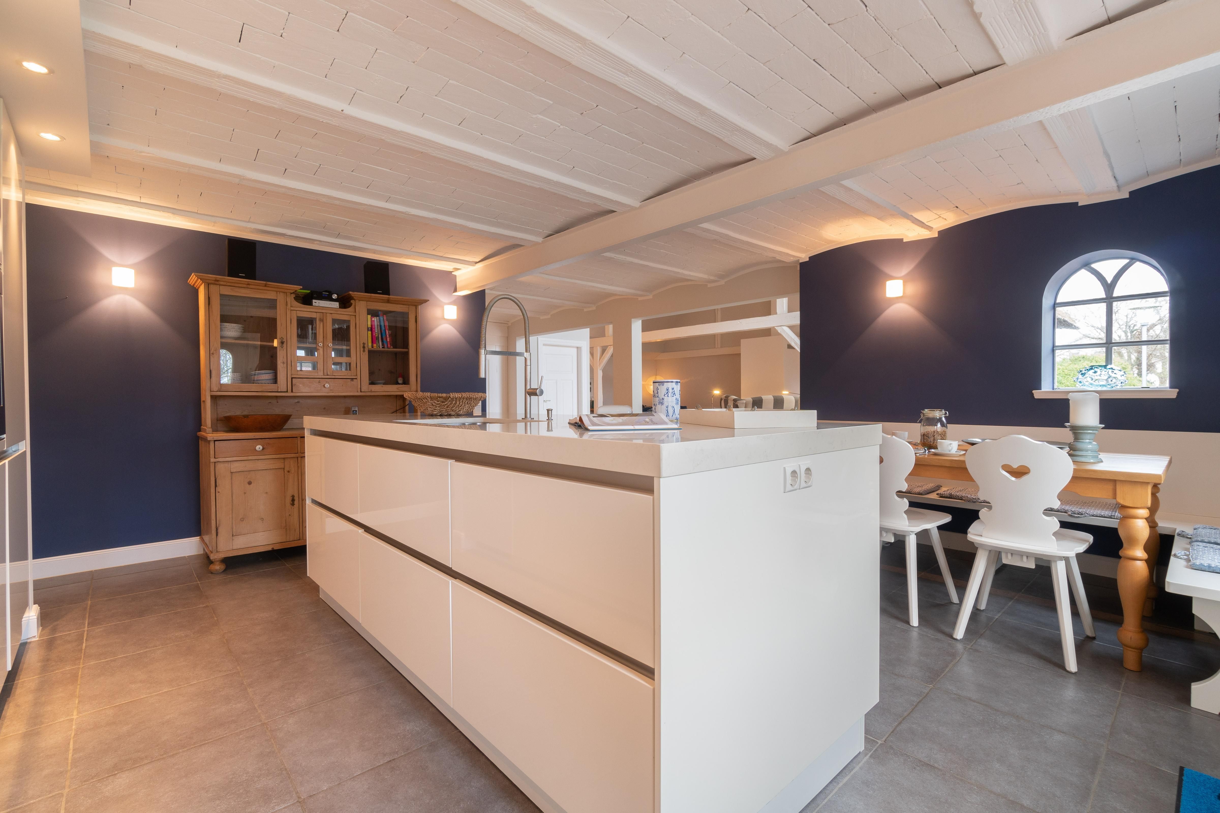 Der reetgedeckte Friesenhof Feer verfügt über 4 Schlafzimmer, 3 Bäder und 1 Gäste-WC und bietet somit komfortabel Platz für bis zu 8 Personen zuzüglich einer Kleinkinderaufbettung. Auch bis zu 2 Hunde sind hier herzlich willkommen.