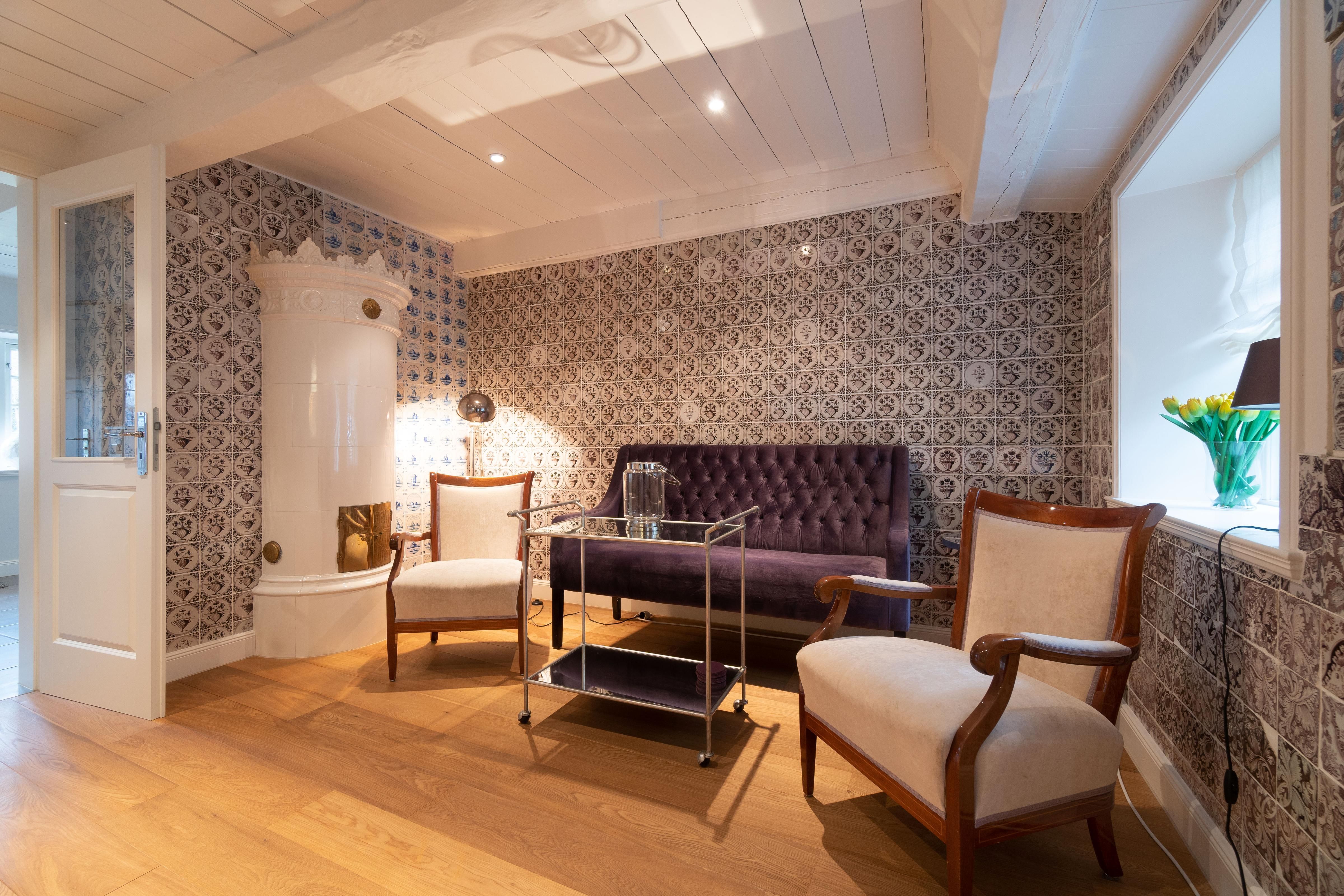 Zu den Highlights der Ferienunterkunft zählen wir u. a. die hauseigene Sauna, den Kamin und den Original Mylin-Kachelofen sowie die zwei Terrassen im traumhaften Garten.
