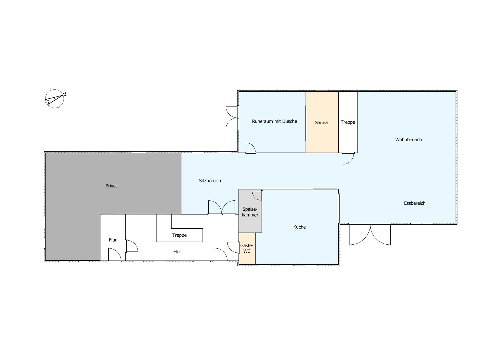 Im Erdgeschoss befinden sich der sehr großzügige Wohn- und Essbereich mit separater Küche und Speisekammer, ein weiterer Wohnbereich mit einem Original Mylin-Kachelofen, ein Gäste-WC sowie die hauseigene Sauna samt Ruheraum mit Dusche. Über den Essbereich gelangen Sie direkt auf eine der beiden Terrassen und in den Garten. Der Glaspanoramakamin im Wohn- und Essbereich sorgt auch an kühleren Tagen für eine angenehme Atmosphäre.
