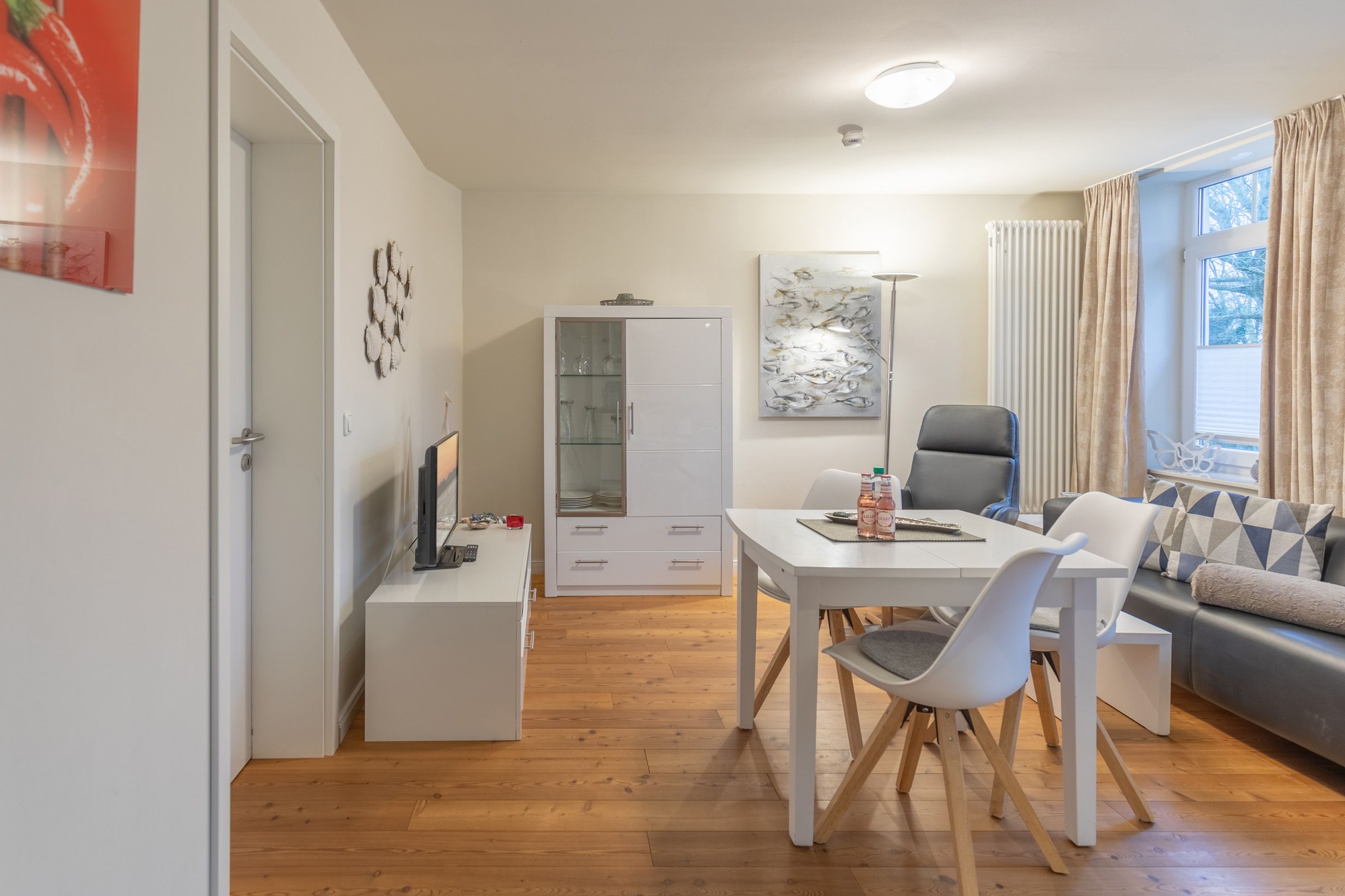 Die modern renovierte 37 m² große Wohnung ist ideal für Paare, Einzelreisende oder kleine Familien mit einem Haustier. Der offene Wohnbereich lädt mit einer gemütlichen Sofaecke und einem Esstisch zum Verweilen ein. Die voll ausgestattete Küche mit Kühlschrank, Herd, Backofen, Spülmaschine und Kaffeemaschine macht die Selbstversorgung einfach und angenehm.
