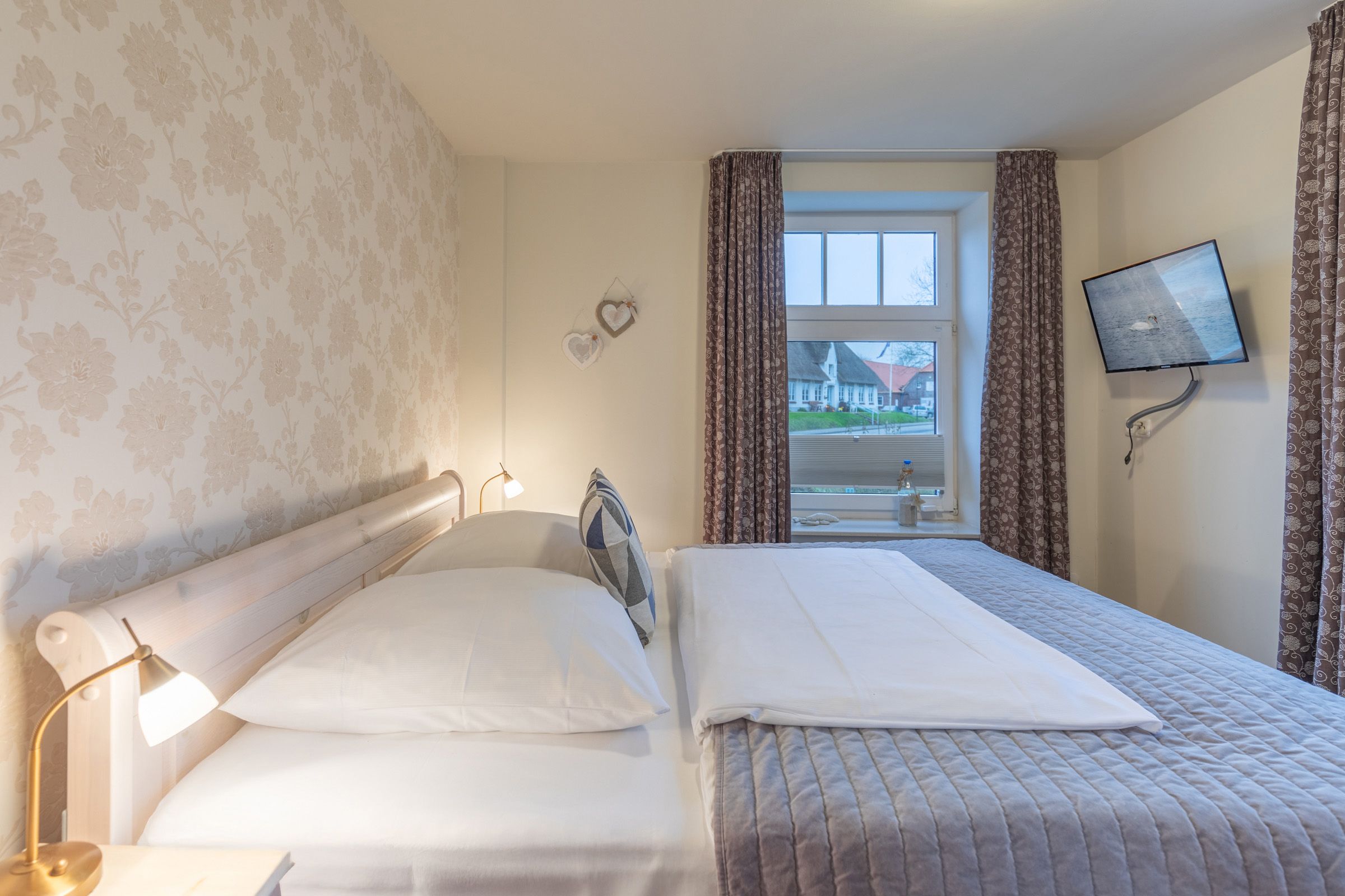 In der Ferienwohnung verbinden sich ländlicher Charme und moderner Komfort. Sie genießen kostenfreies WLAN und einen TV für entspannte Abende. Ein Sichtschutz an den Fenstern sorgt für Privatsphäre, während die idyllische Umgebung zum Entspannen einlädt.