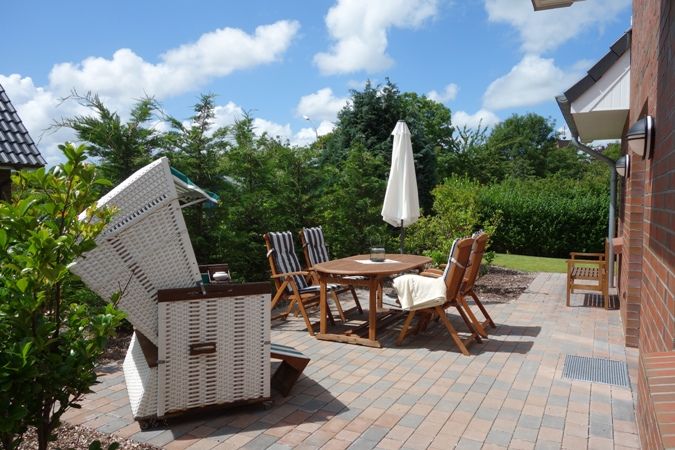 Der Außenbereich lädt mit einem eigenen Garten zum Entspannen ein. Die möblierte Terrasse mit Gartenmöbeln und Sonnenschirm eignet sich hervorragend für lauschige Stunden im Freien oder ein Abendessen im Garten. Von der Terrasse aus genießen Sie zudem einen angenehmen Gartenblick.