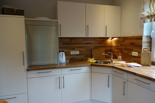 Der Essbereich ist offen gestaltet und bietet mit einem großen Esstisch viel Platz für gemeinsame Mahlzeiten. Die geschlossene Küche überzeugt durch ihre umfassende Ausstattung: Sie nutzen einen Herd, einen Backofen mit Elektroanschluss, einen Kühlschrank mit integriertem Gefrierfach, eine Spülmaschine, Kaffeemaschine, Wasserkocher sowie Geschirr und umfangreiche Küchenutensilien. Direkten Komfort bieten Ihnen außerdem Spülmittel und Geschirrhandtücher sowie eine Erstausstattung an Bettwäsche und Handtüchern.
