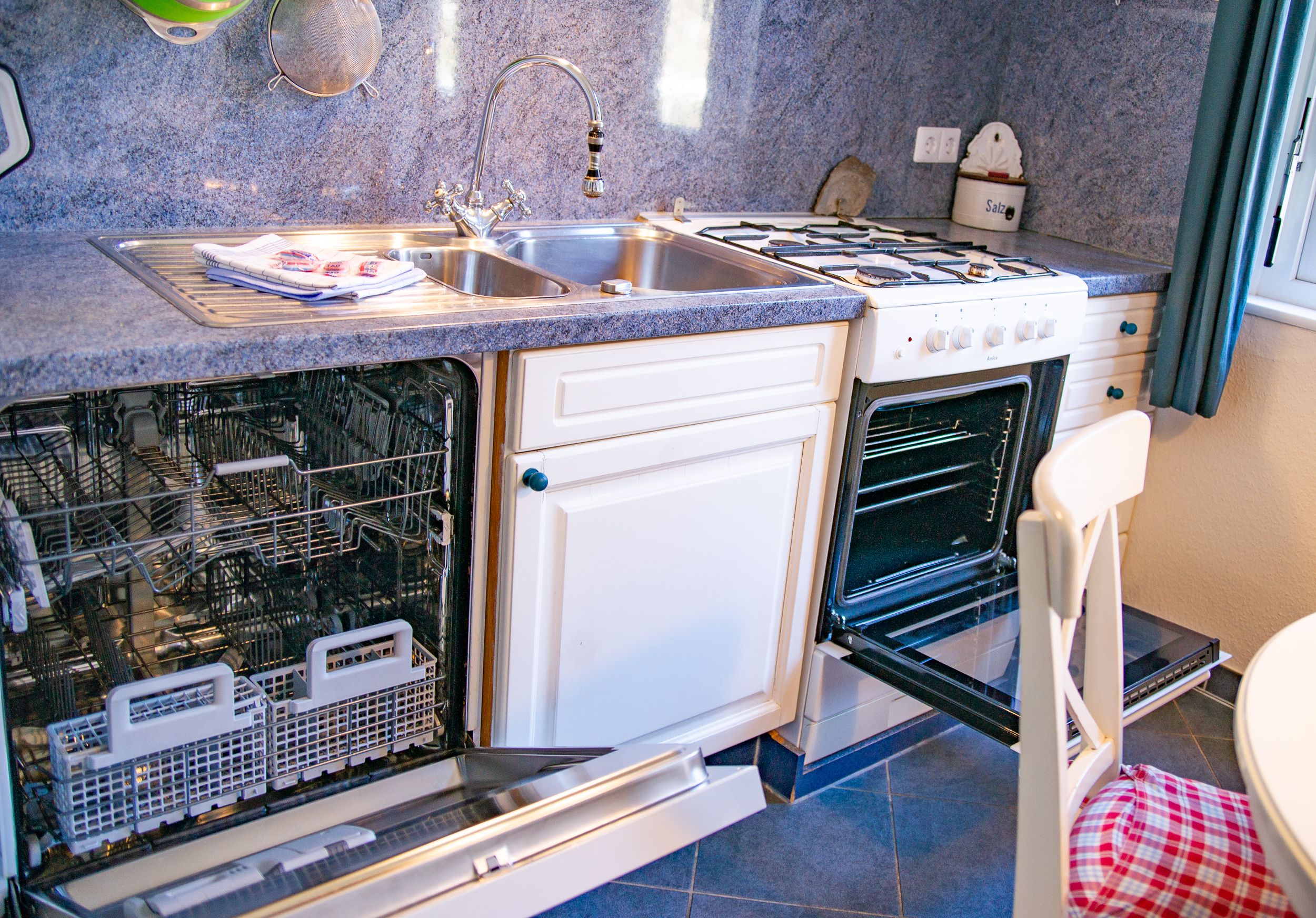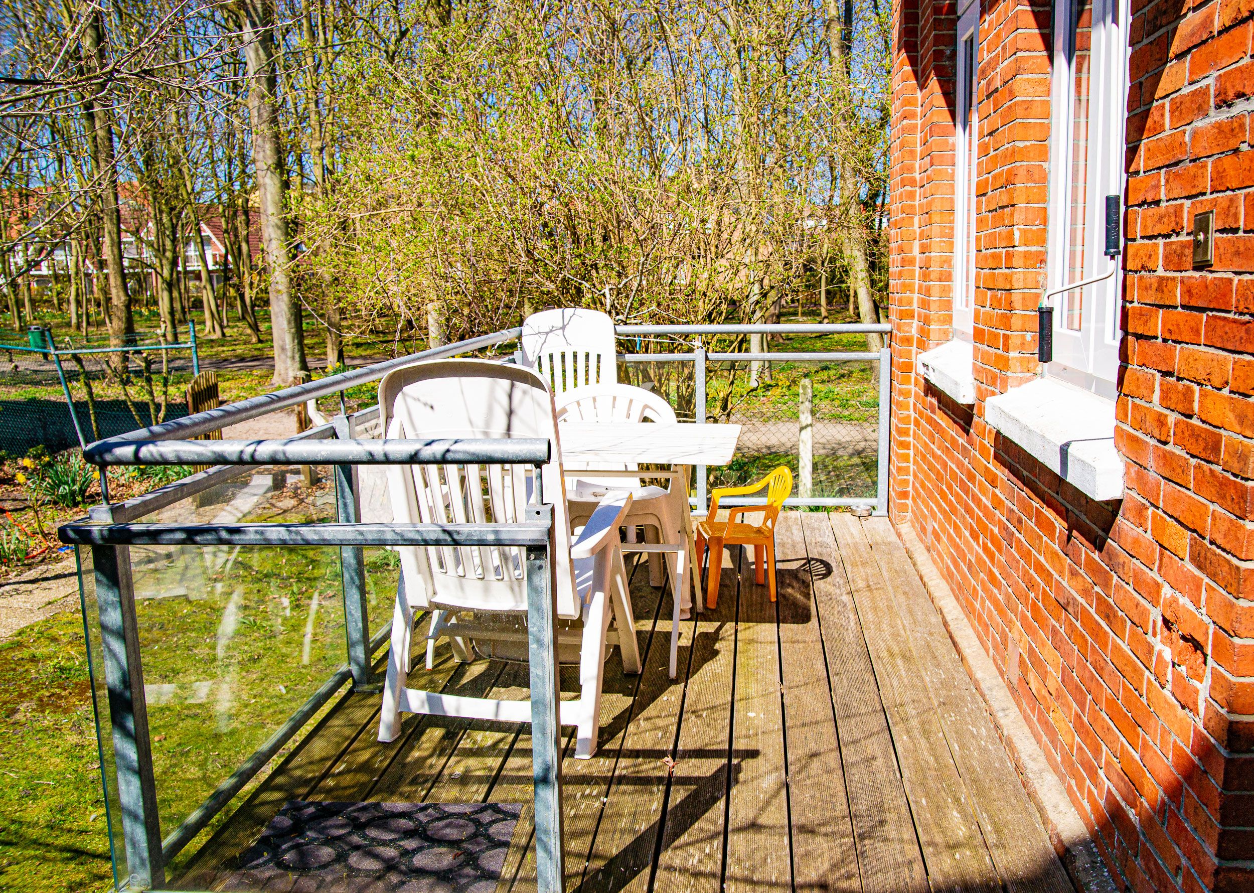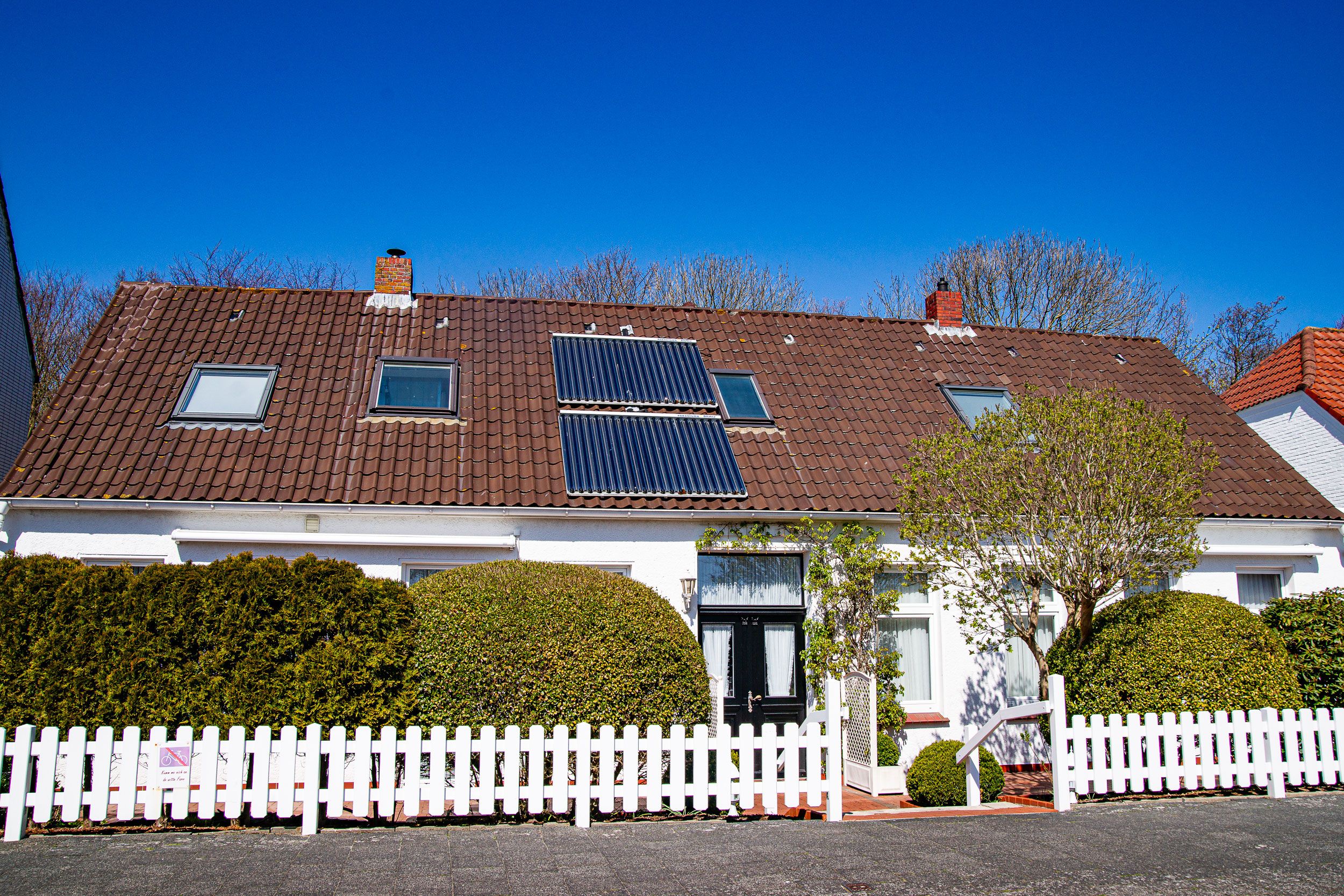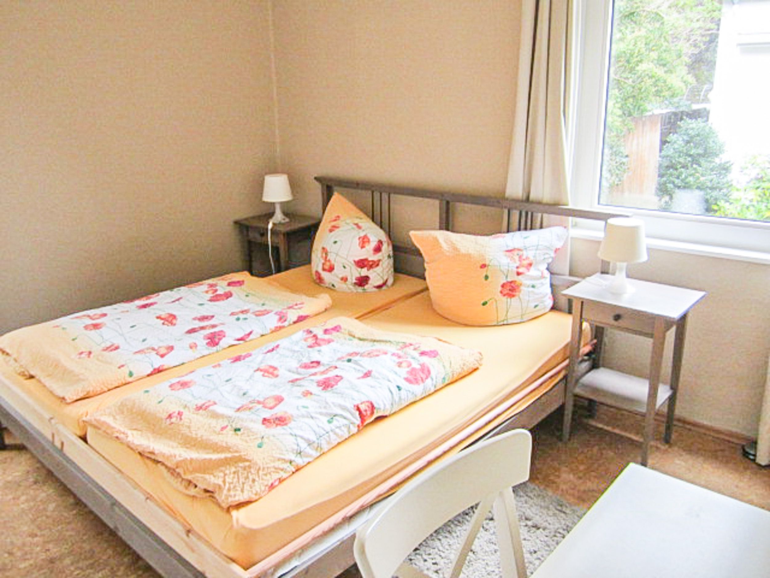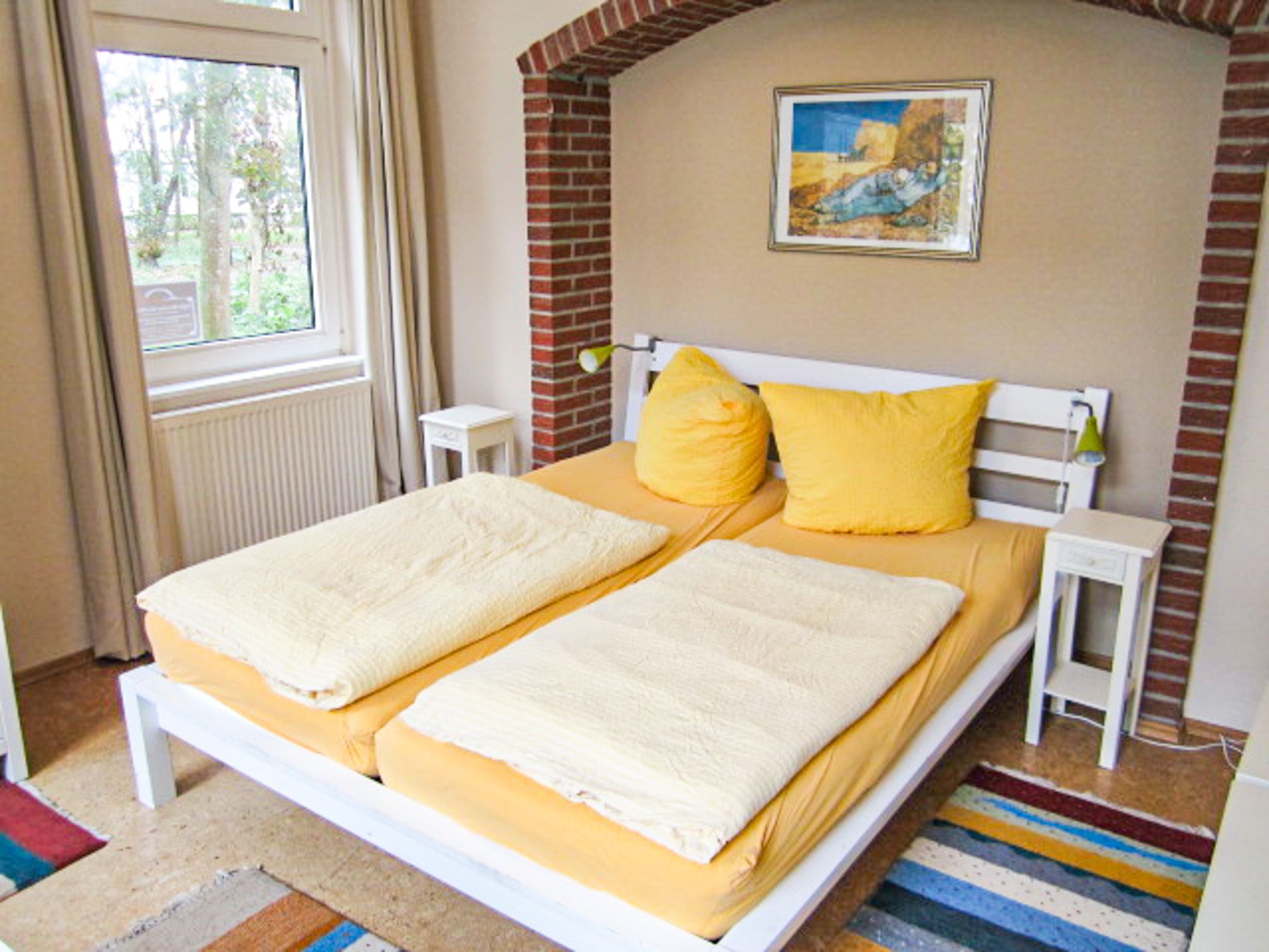 Ostfriesischer Stil gemixt mit komfortablen Sitzgelegenheiten im Wohnzimmer, Ofenkamin, eine separate Küche mit rundem Tisch für 4 Personen und zwei geräumige separate Schlafzimmer mit jeweils einem Doppelbett sorgen für ausreichend Platz. Beide Bäder (eines mit DU/WC + ein Gäste-WC) haben Tageslicht. Der Balkon befindet sich Richtung Park vor der Wohnung. Auch ein kleiner Flur mit Garderobe ist vorhanden.