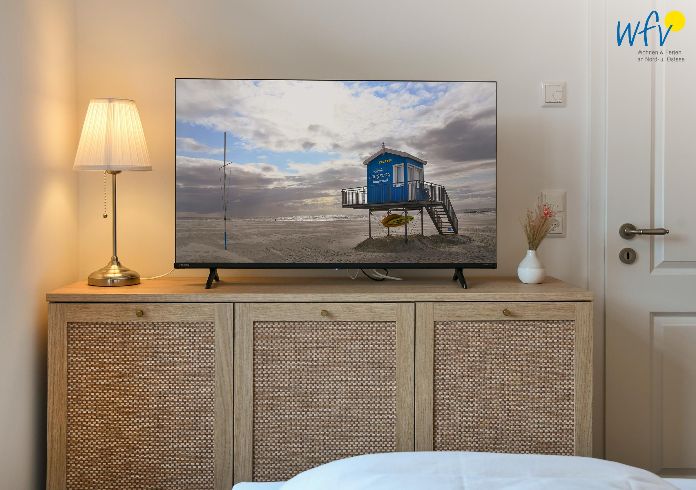 Die zwei separaten Schlafzimmer im Dachgeschoss bieten Ihnen sowohl Komfort, als auch Privatsphäre. Ein Schlafzimmer ist mit einem komfortablen Kingsize-Boxspringbett ausgestattet, das zweite Schlafzimmer beinhaltet zwei Einzelbetten, die bei Bedarf auch zusammengeschoben werden können.